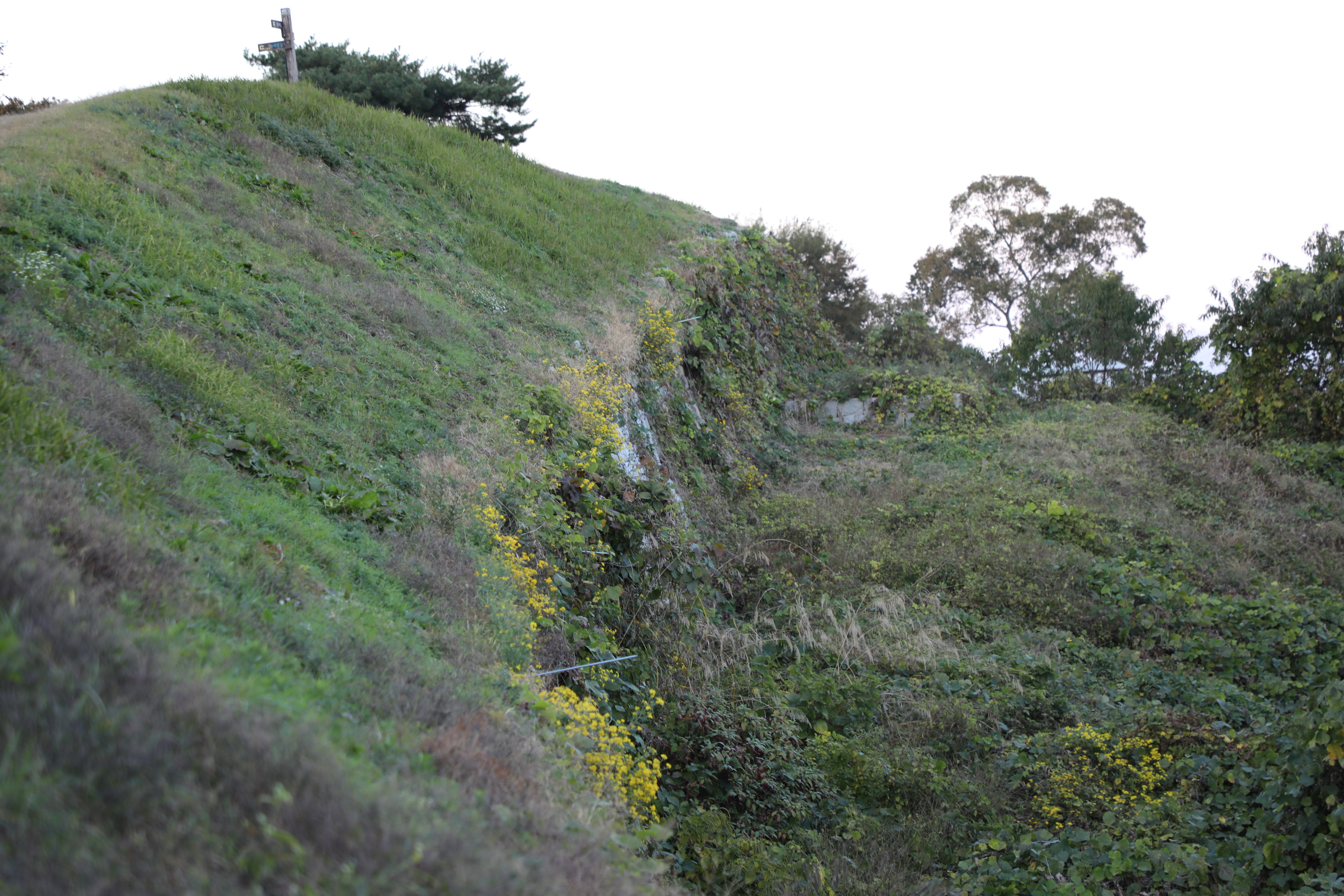 사랑나무에서 동쪽으로 올라가는 성벽에는 들꽃이 노랗게 피었다.