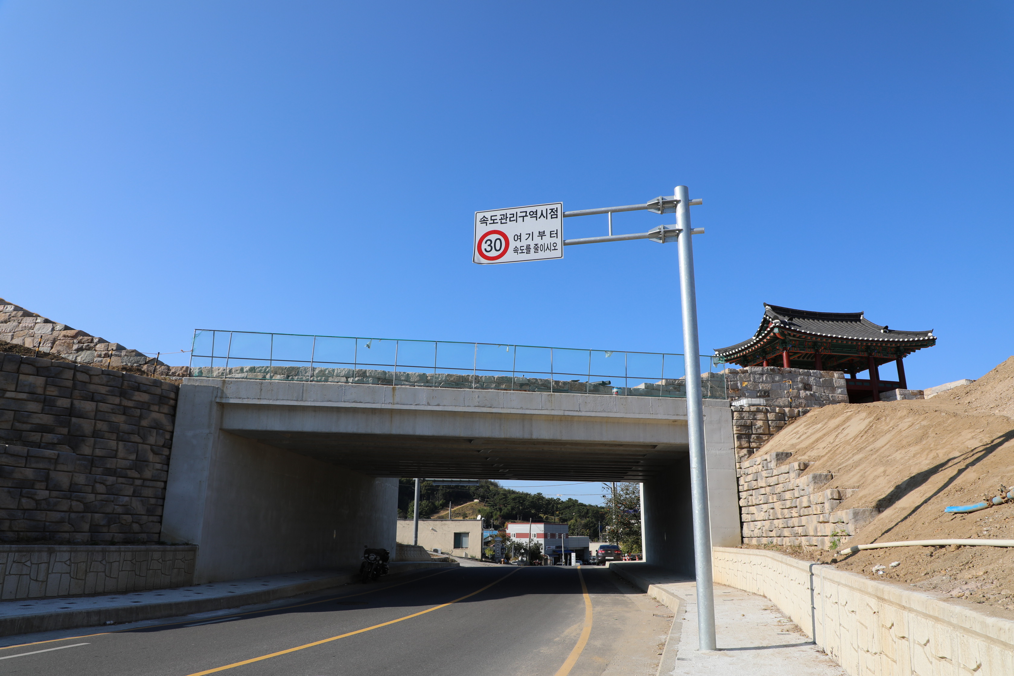 한산 읍내로 들어가는 길의 읍성 연결을 위해 작은 터널을 만든 노력이 돋보인다.