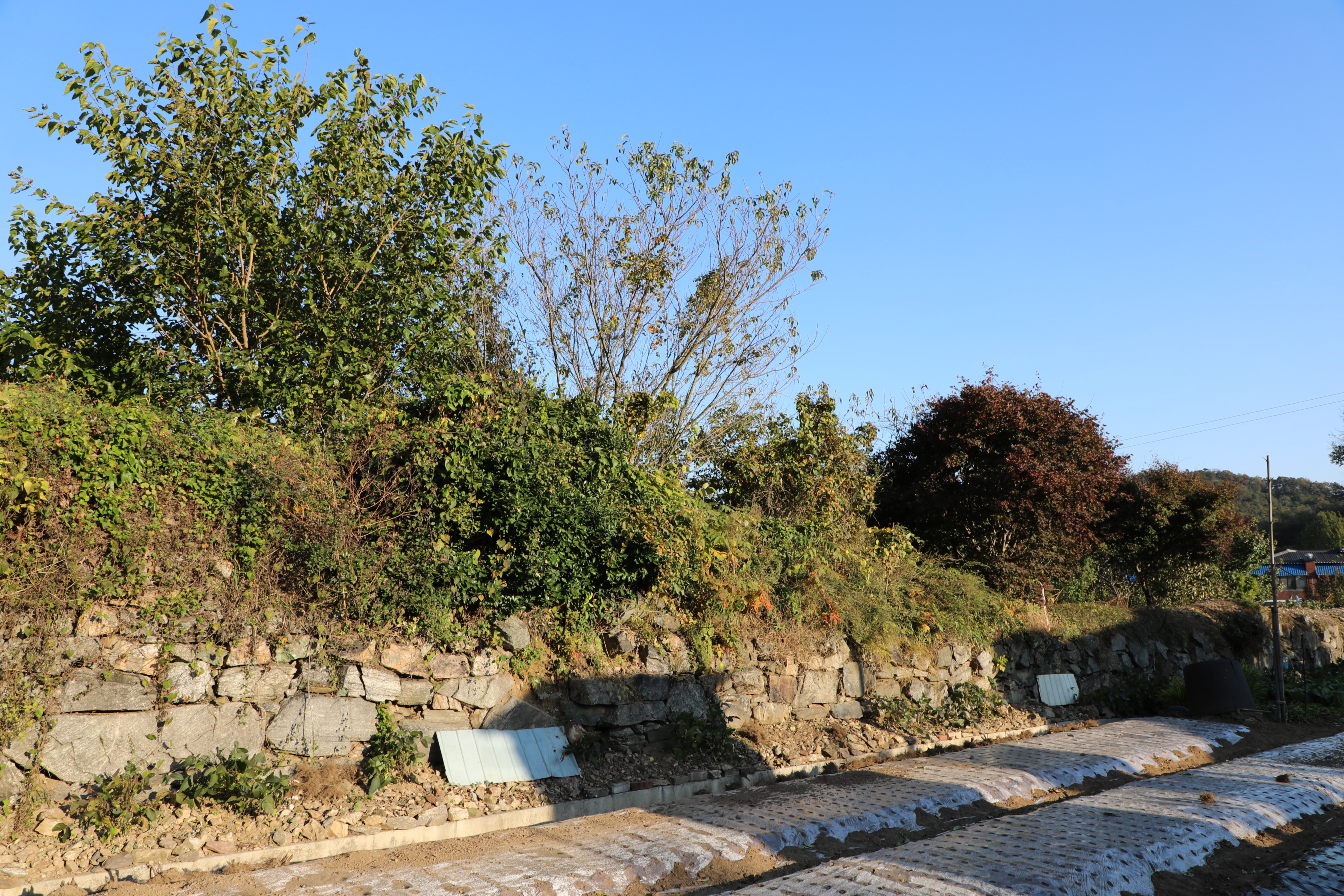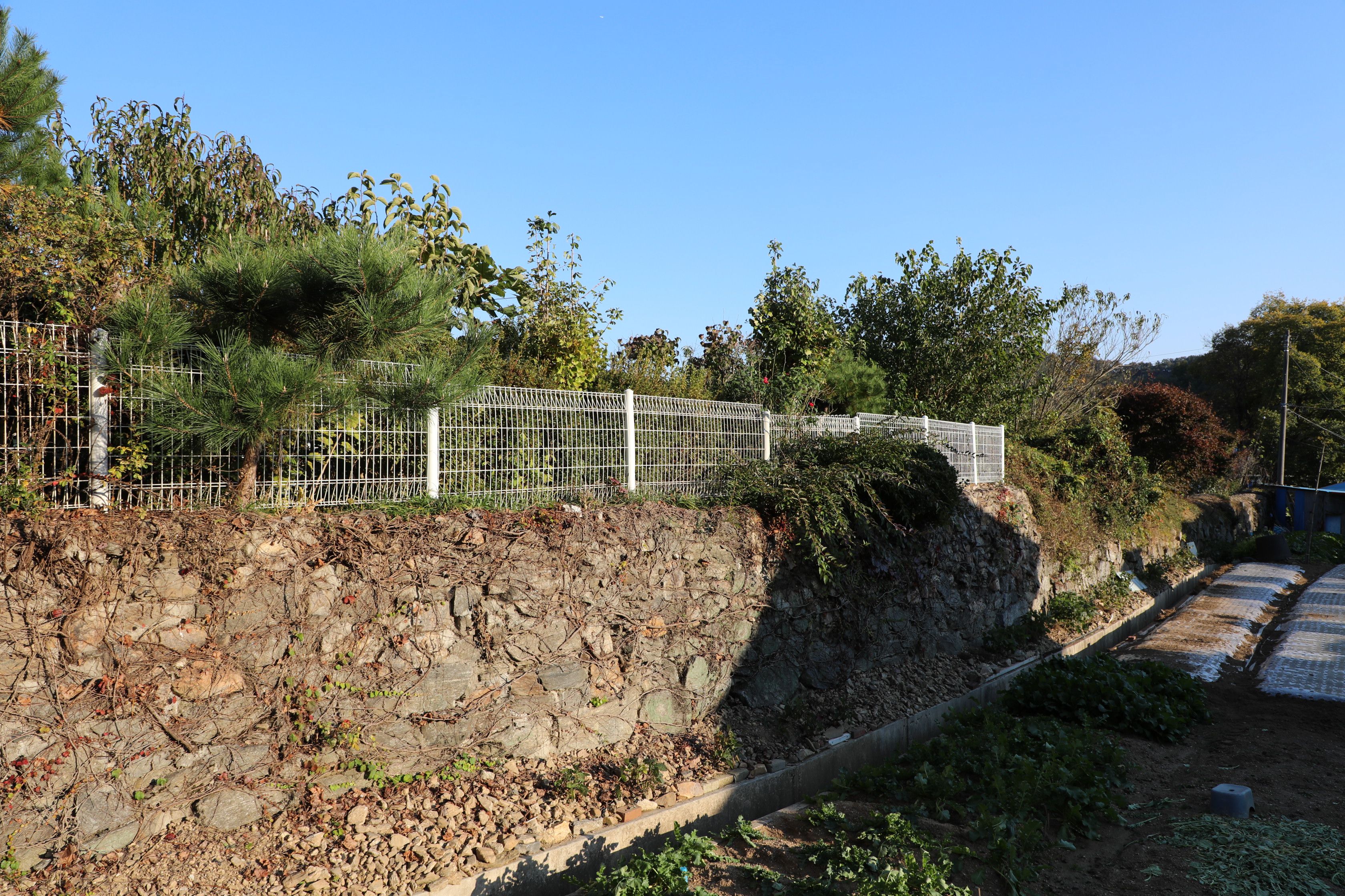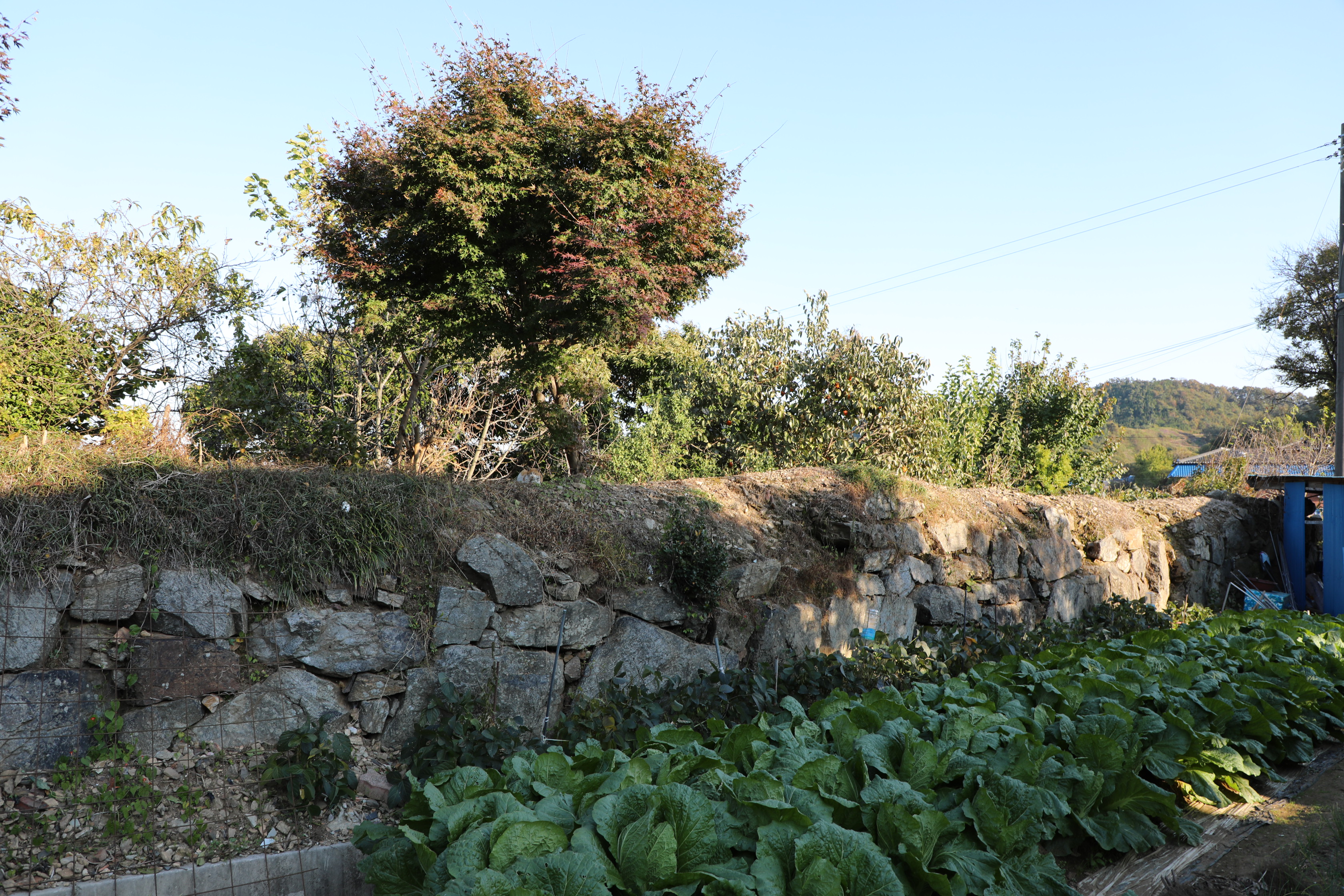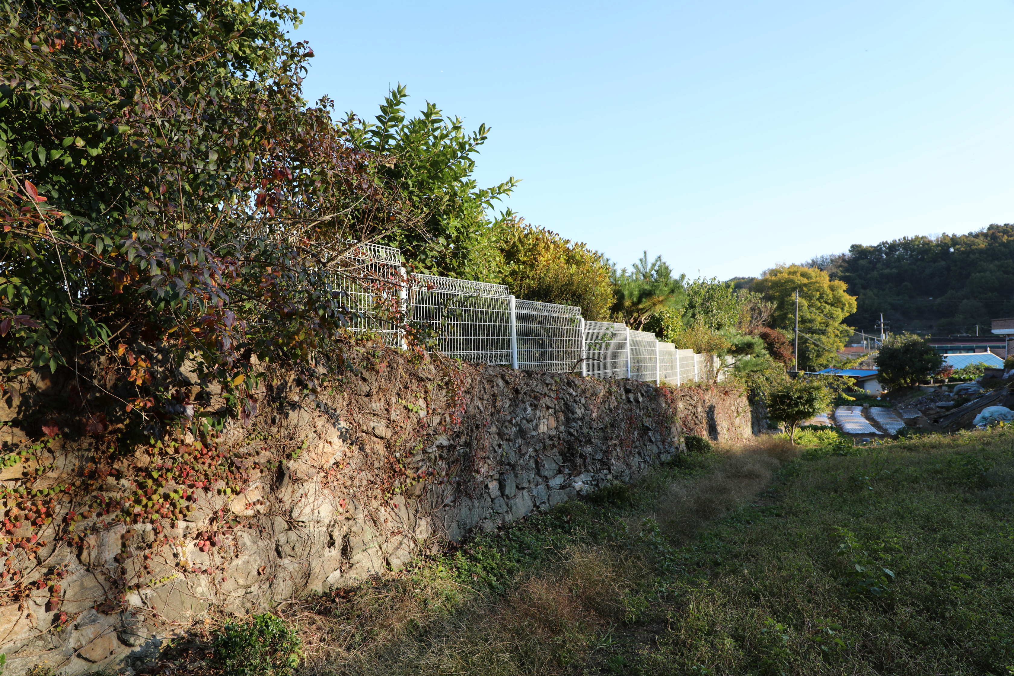 이 성벽은 과수원인지 일반주택인지 몰라도 담장으로 쓰는 것도 모자라 철책까지 설치했다.