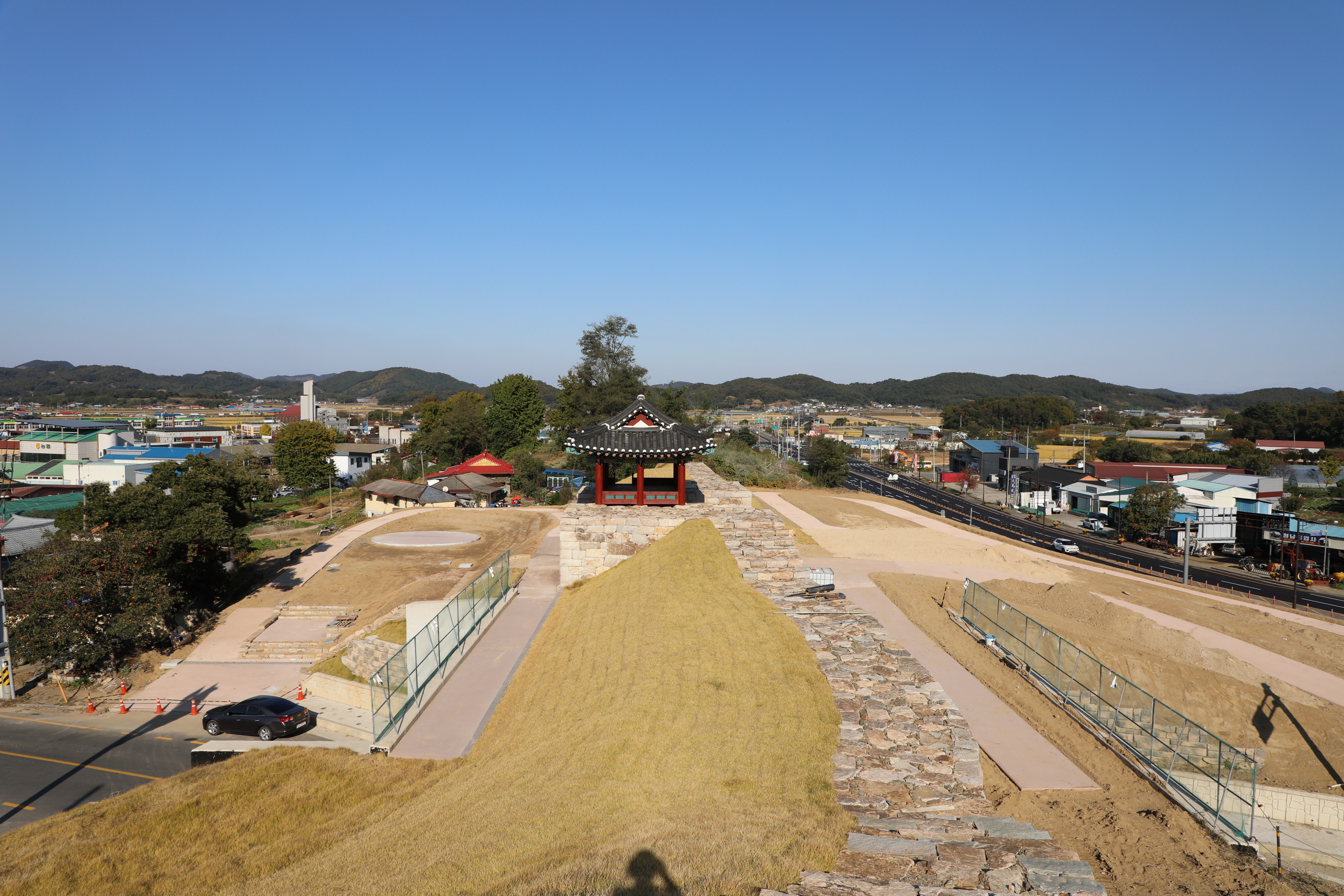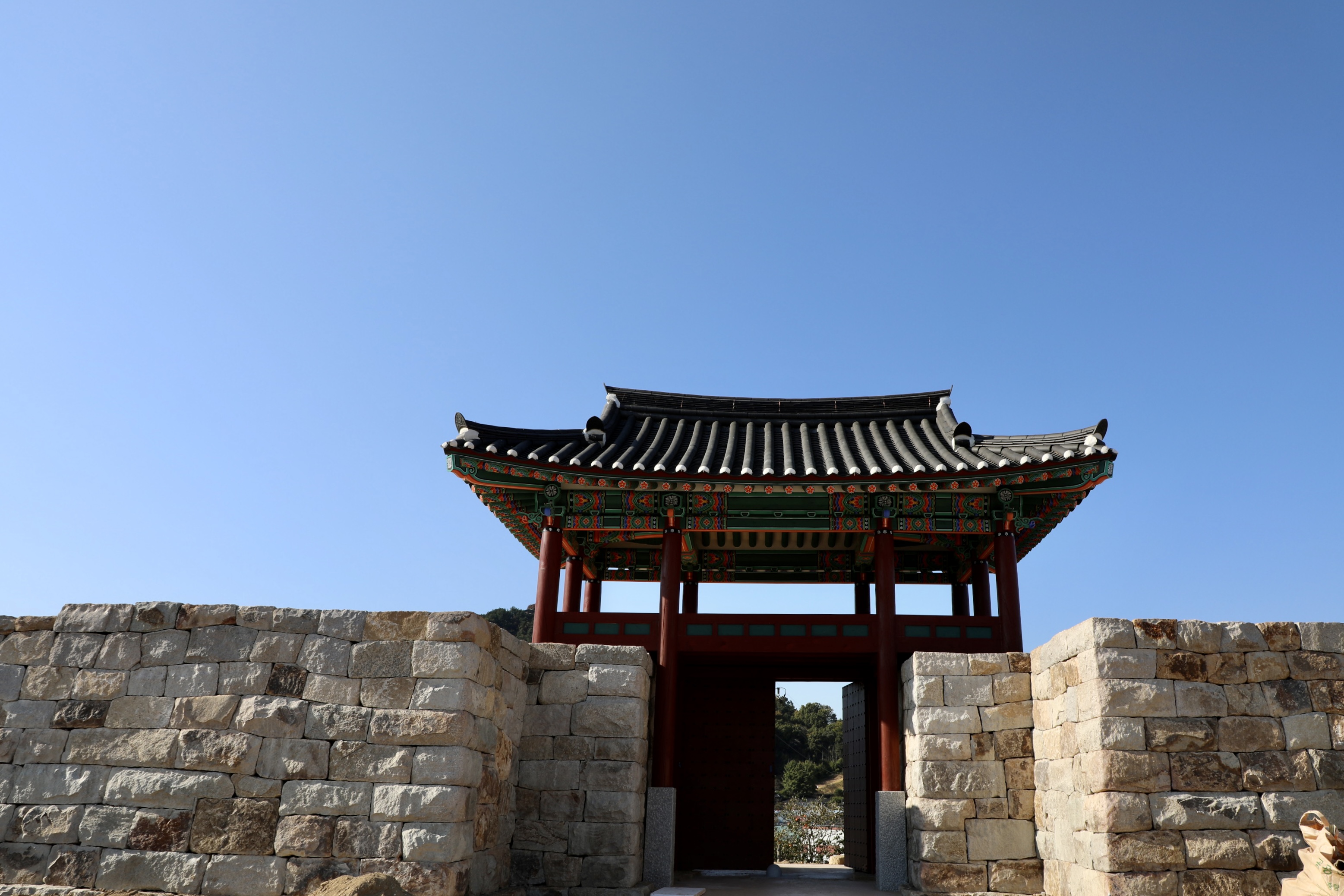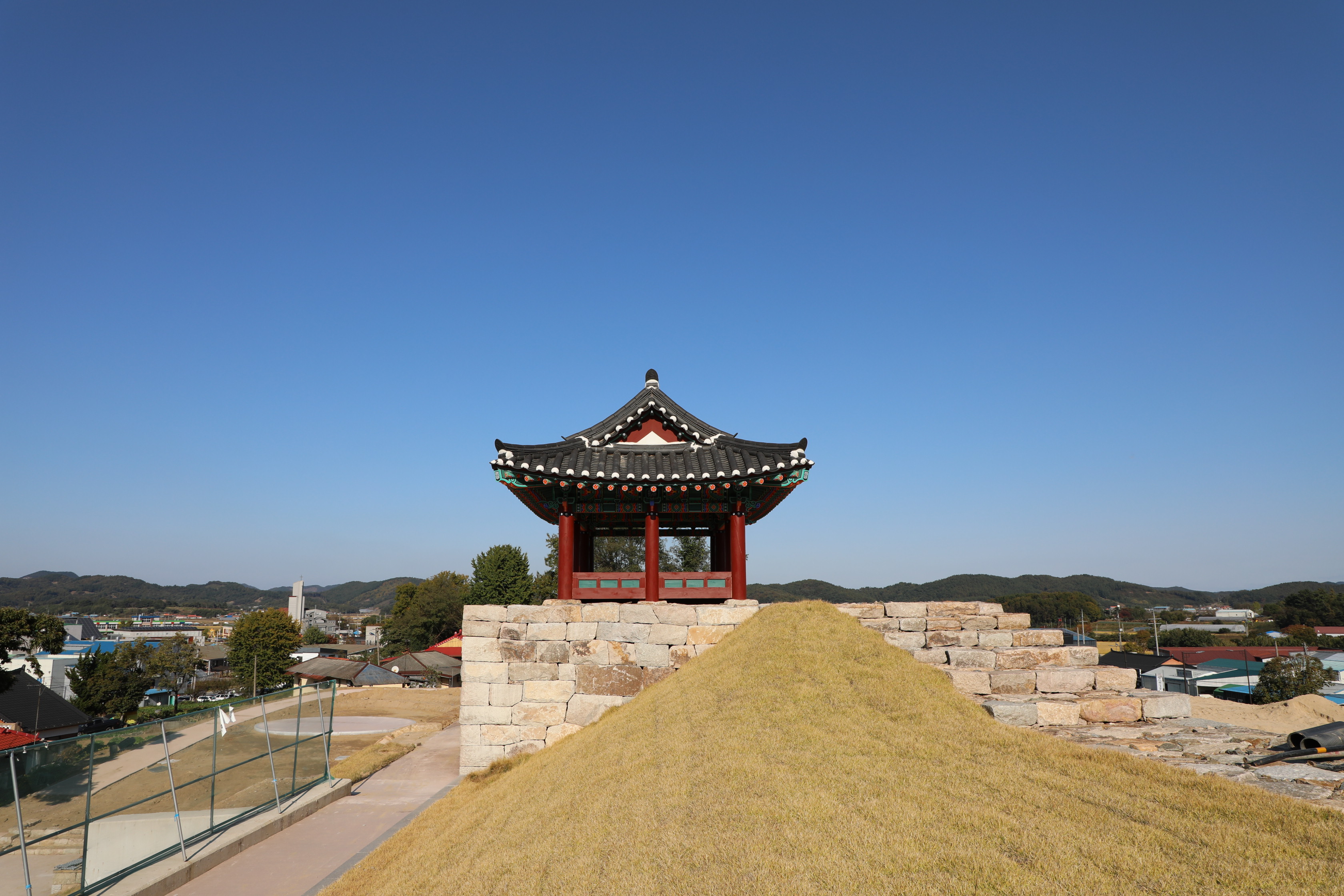이제 막 복원된 듯 각이 지게 잘 쌓은 석성과 붉은 단청이 유난히 돋보이는 누각이 눈에 띈다.