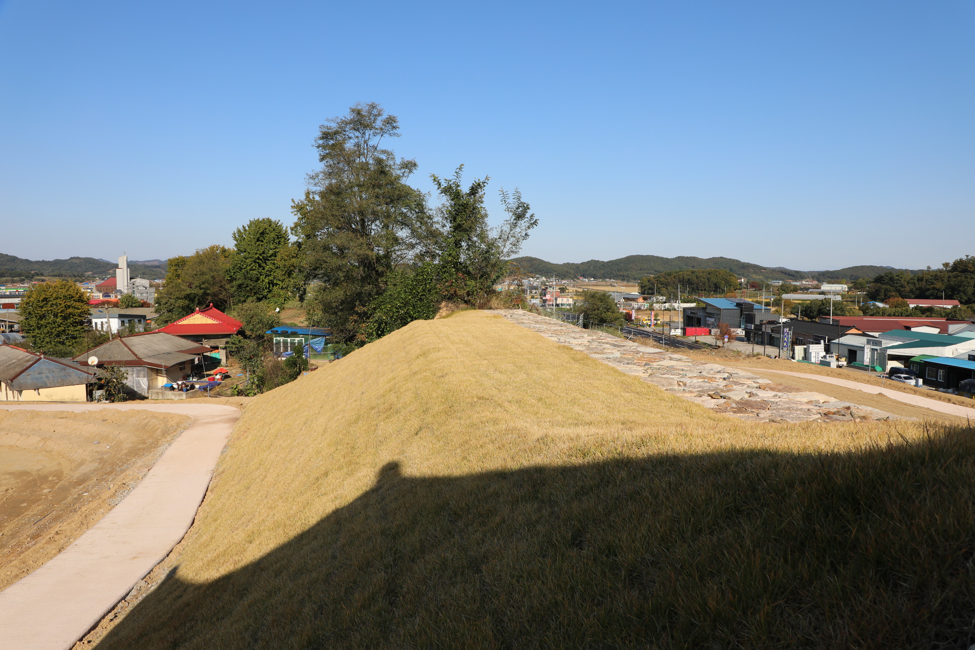 산으로 올라가는 읍성 밖인 왼쪽은 성성으로 쌓고 오른쪽은 토성으로 쌓으며 성을 보강했다.