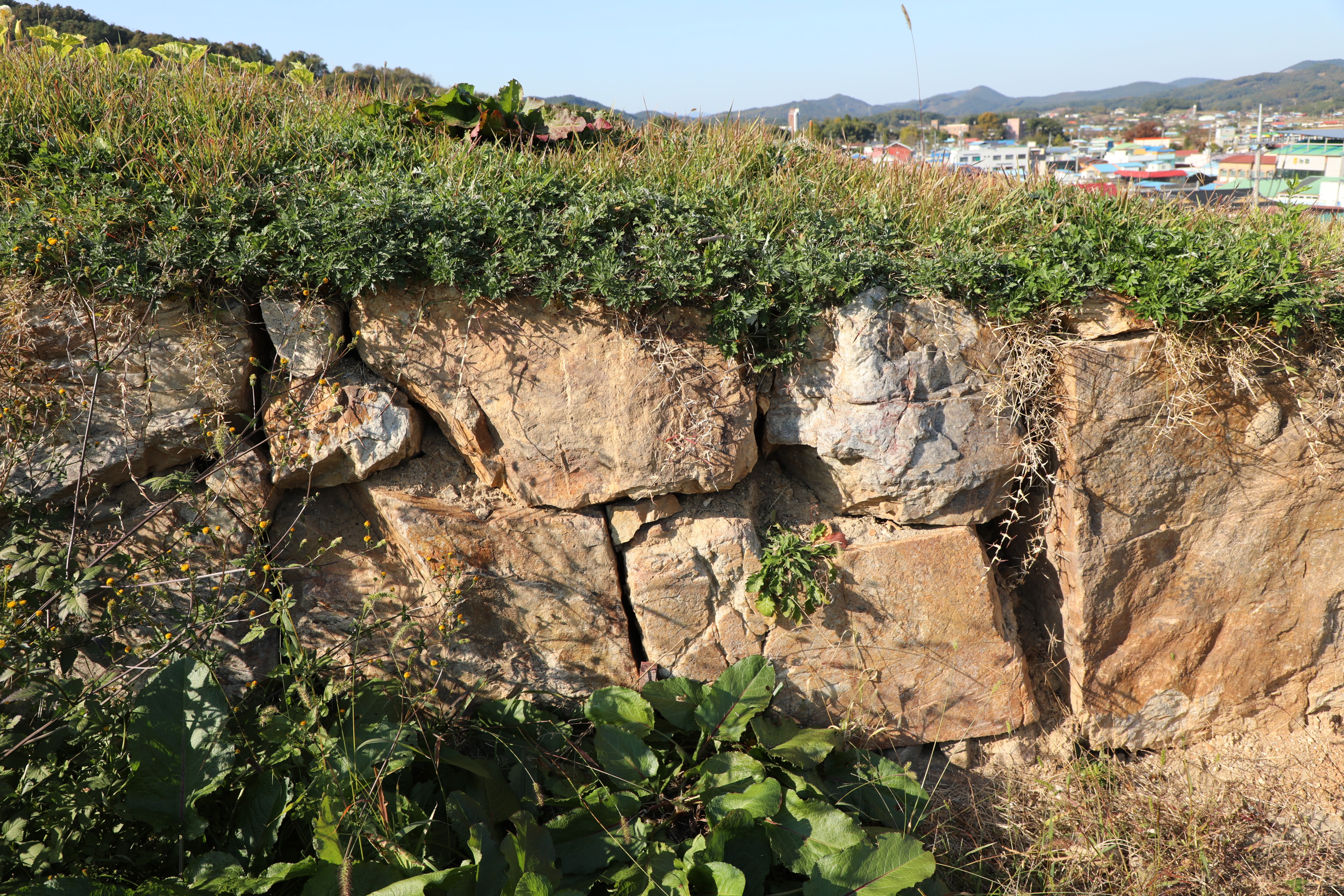 이곳은 낮은 석축 위를 토성으로 마무리했다.