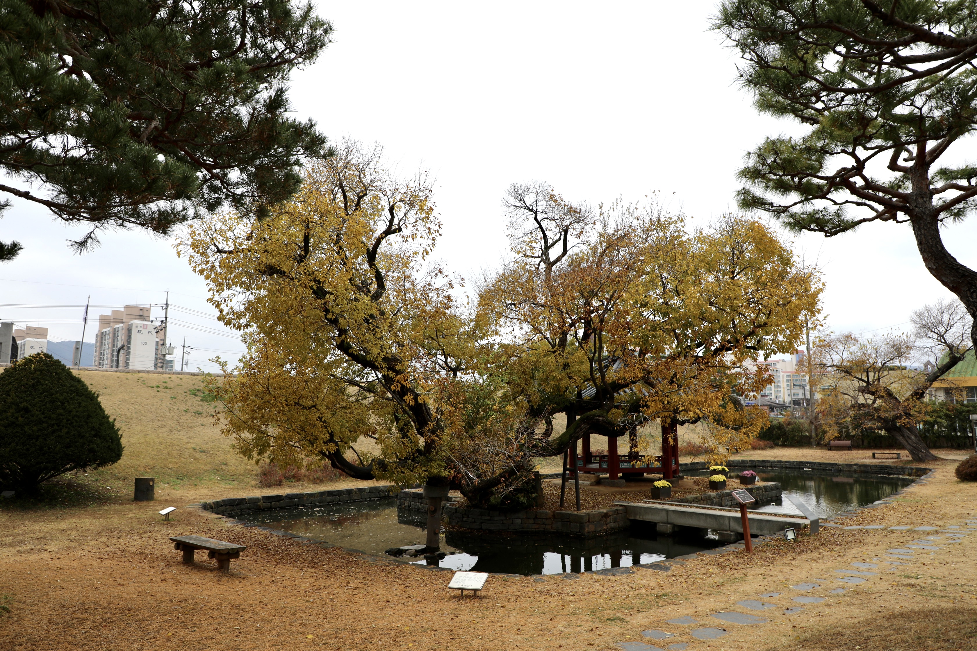 작은 연못 안 여하정과 느티나무의 조화가 아름답다.