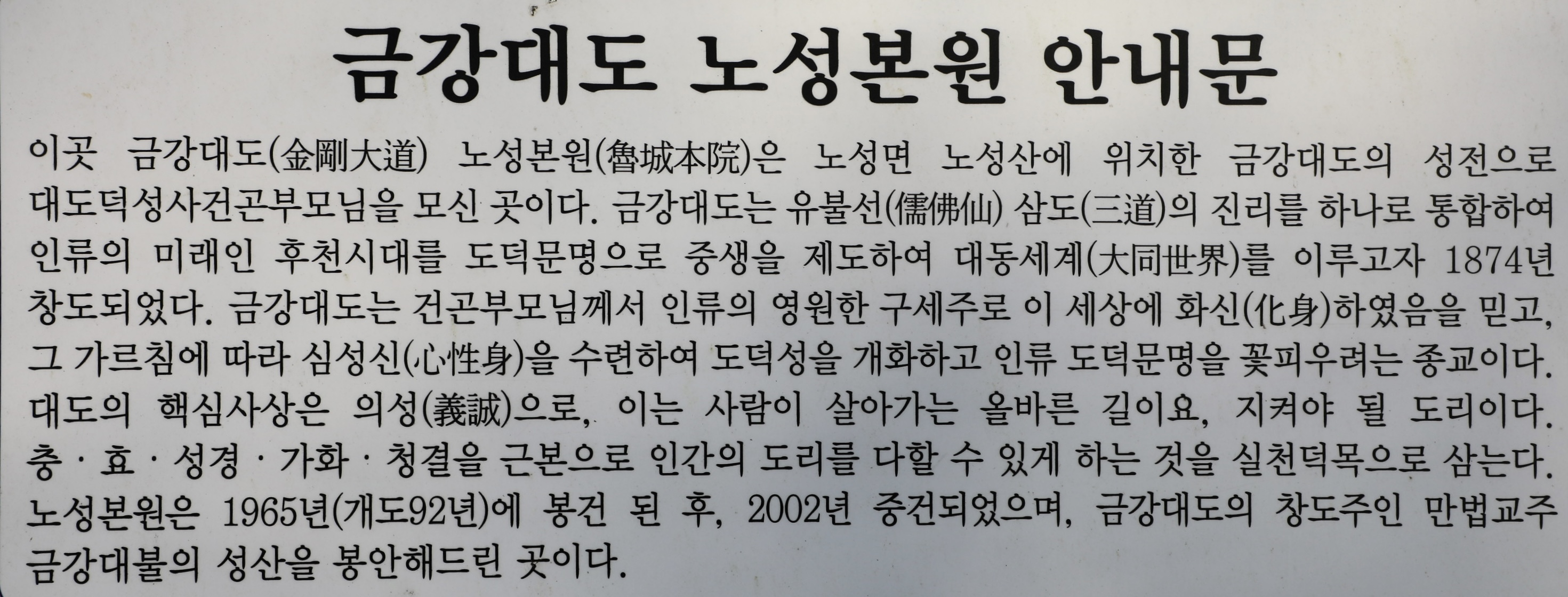 현재 일부 복원된 노성산성 남문지 주변 평탄지에는 2005년 경부터 유불선을 합친 신흥종교인