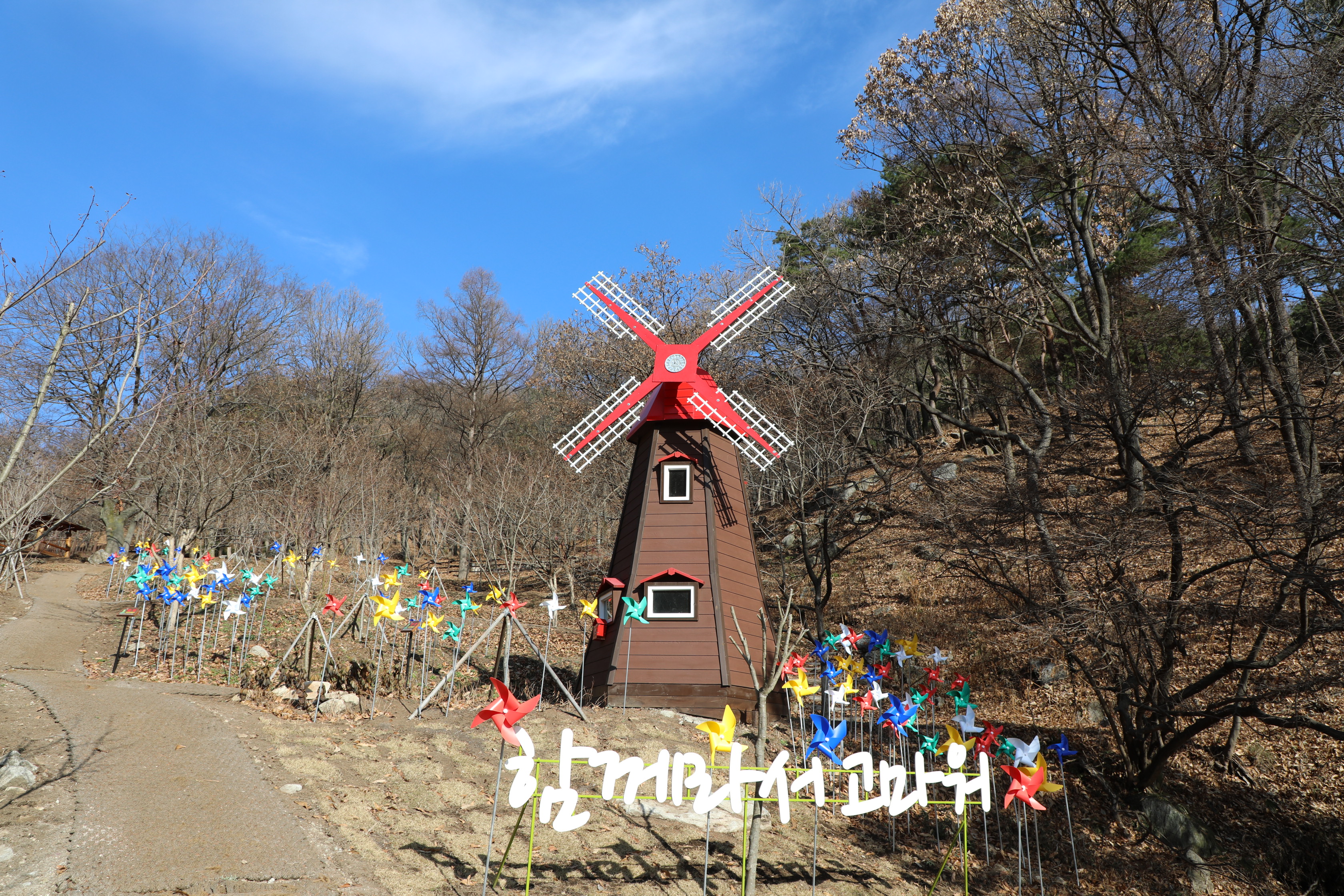 임도가 끝나는 지점에 이국적인 풍차가 반겨준다.