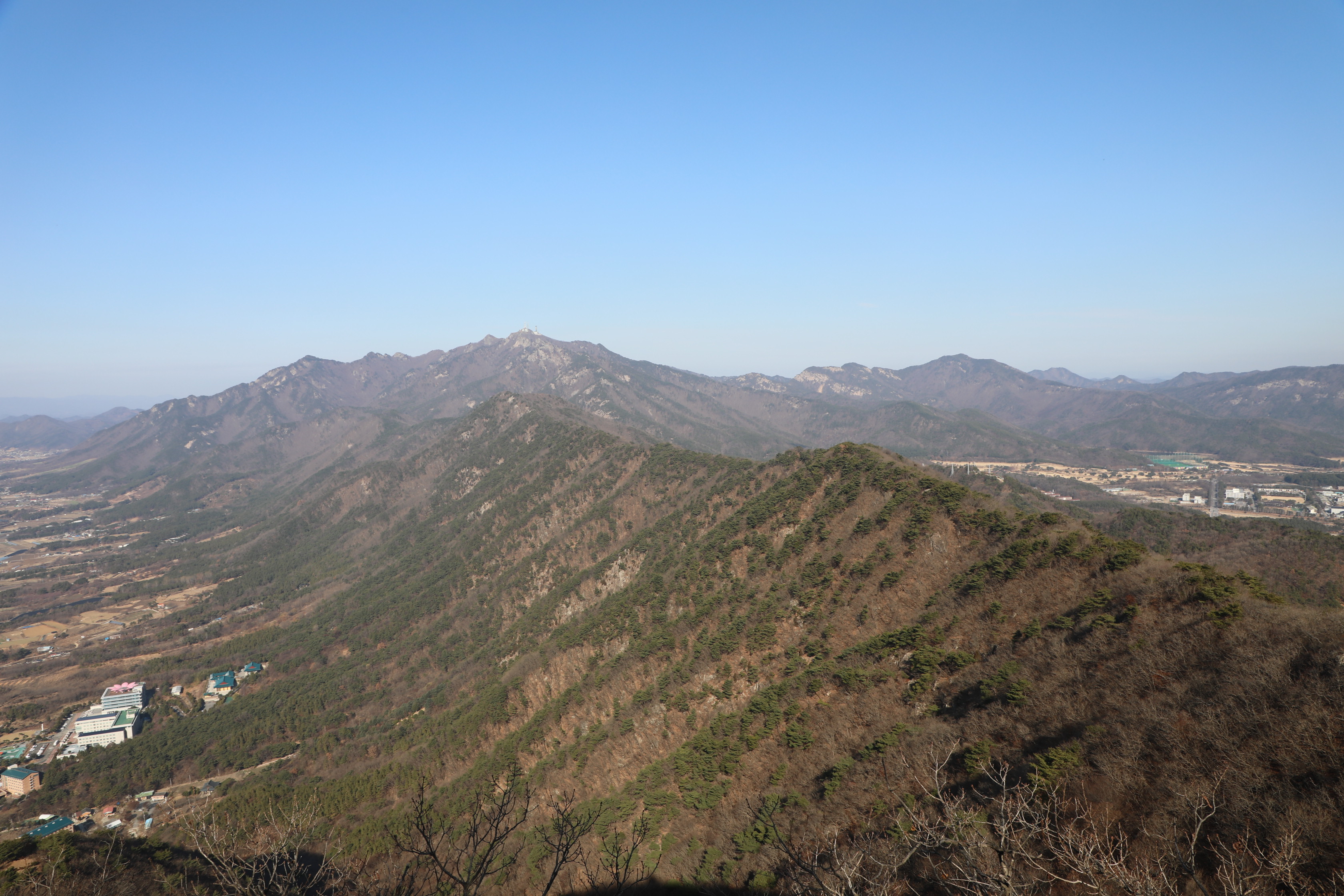 어느 정도 능선에 오르자 북쪽으로 계룡산이 시원스럽게 조망된다.