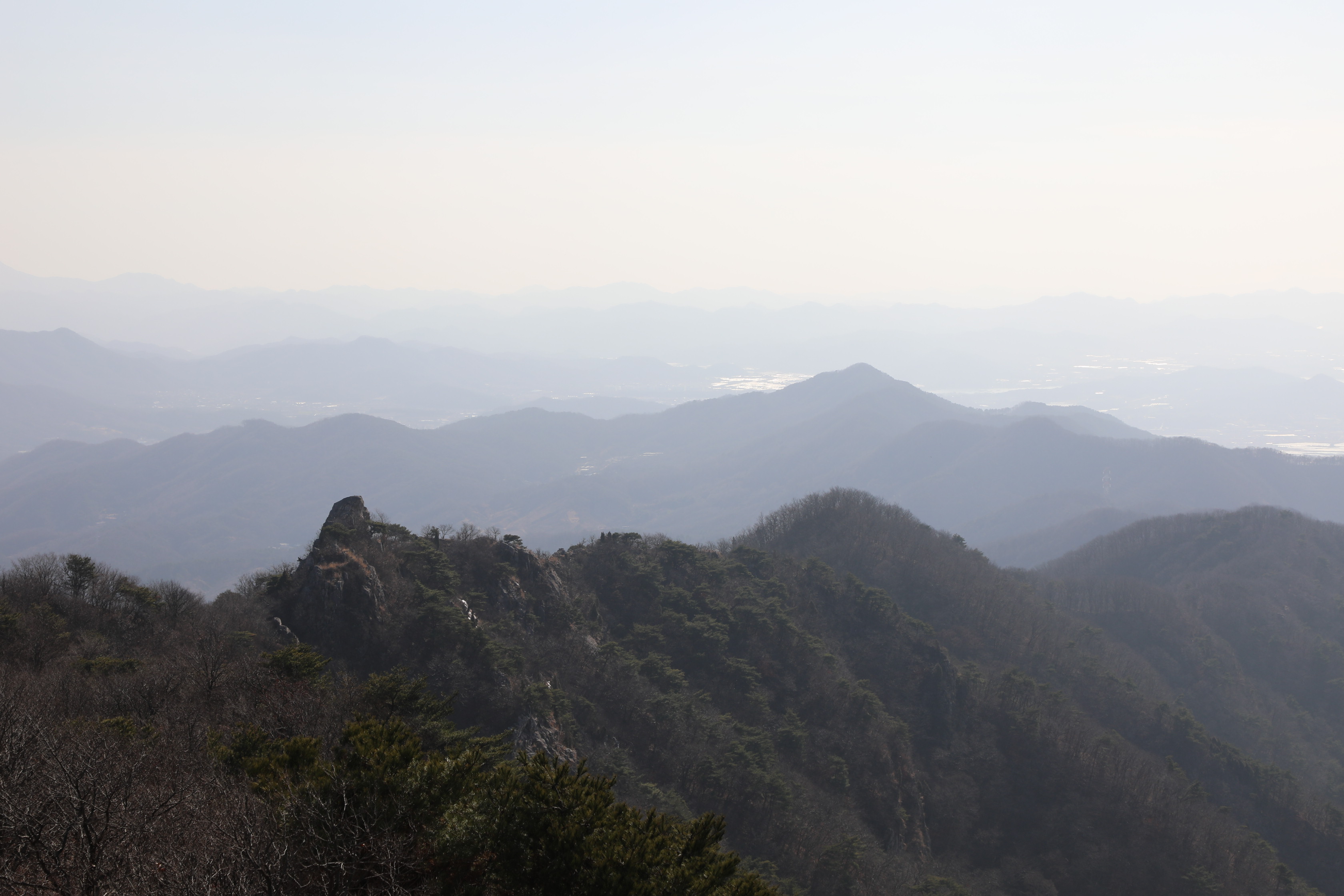 오전에 노성산에서 계룡산을 볼 때 절반은 가스층에 잠겼는데, 지금은 가스층이 사라며 더 가깝게 조망된다.