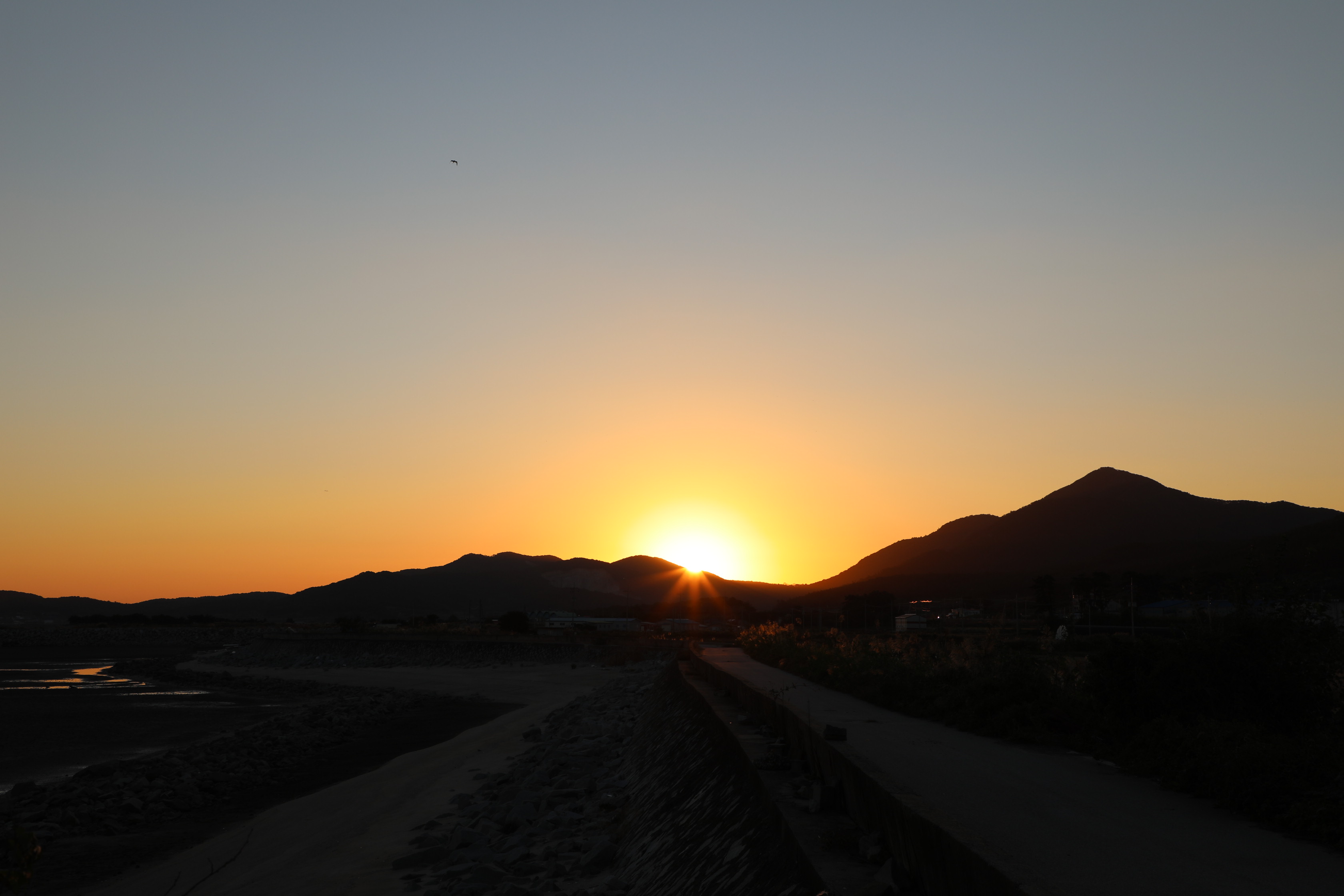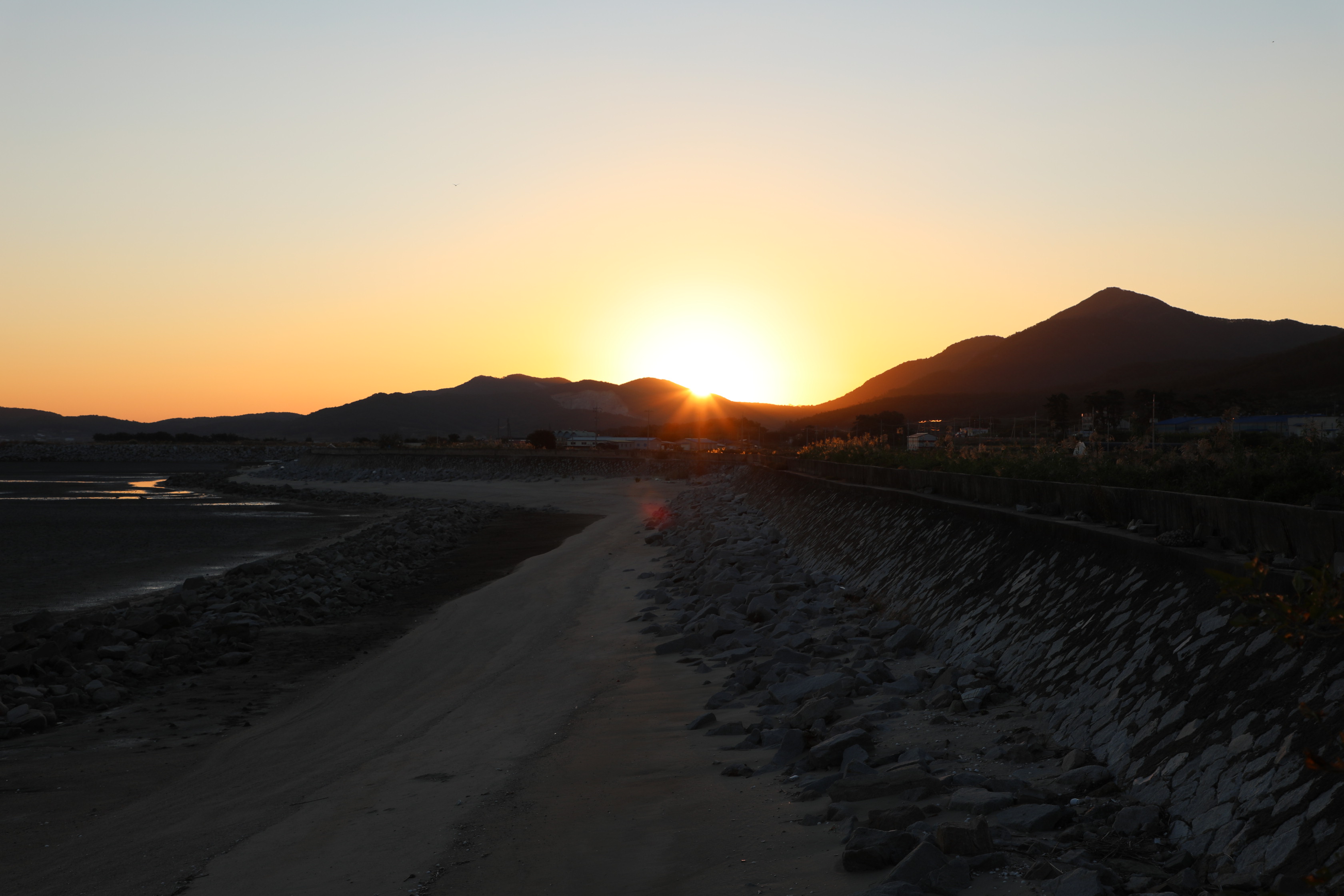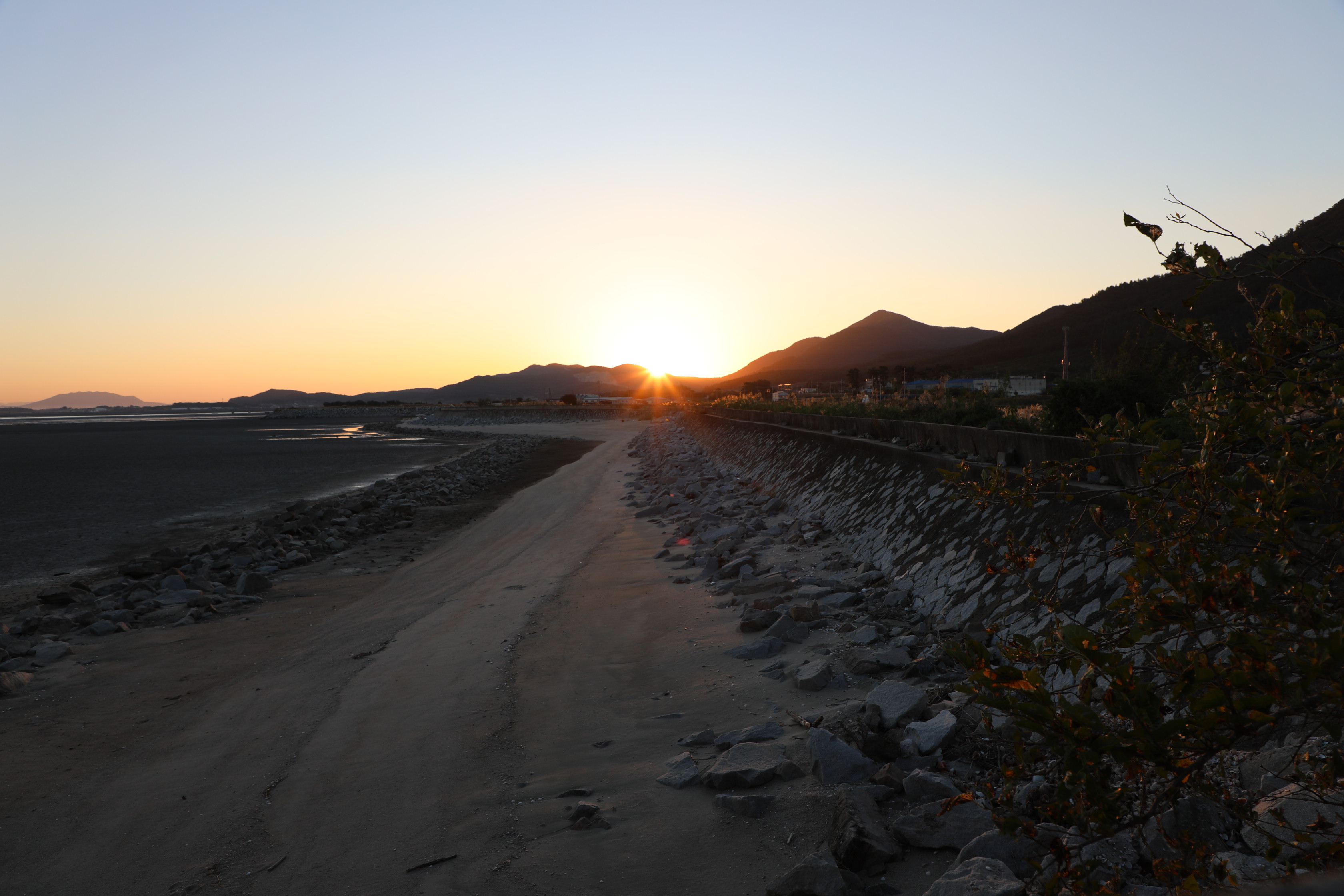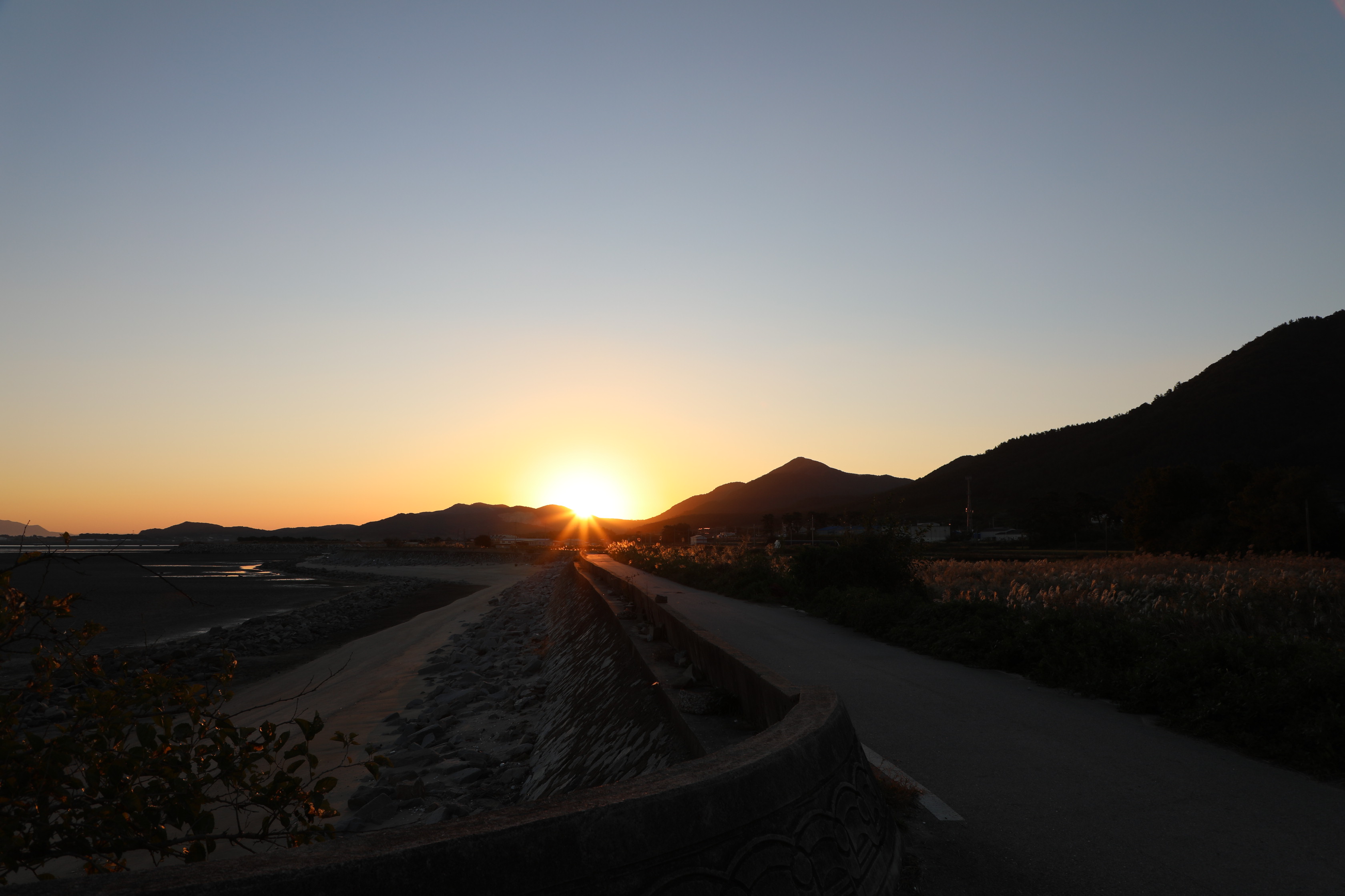 지난 9월 27일에 고창 하전마을의 바닷가에서 일출을 봤다.