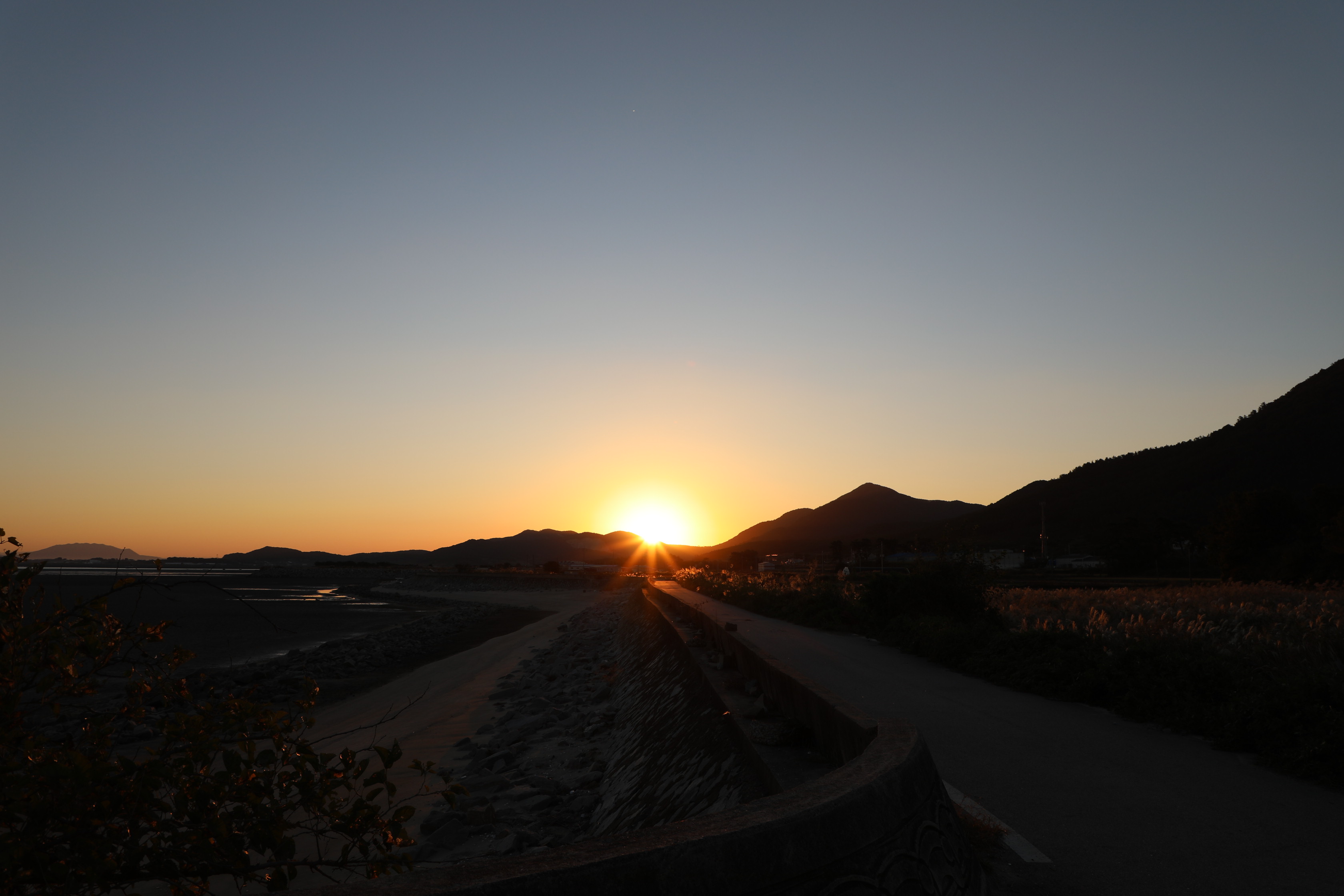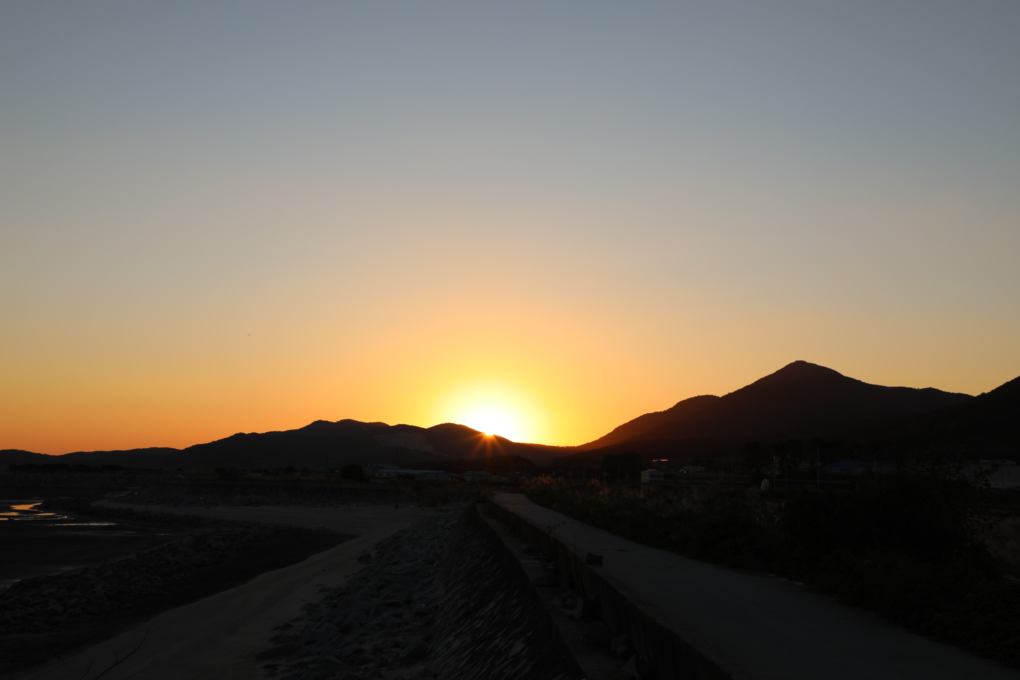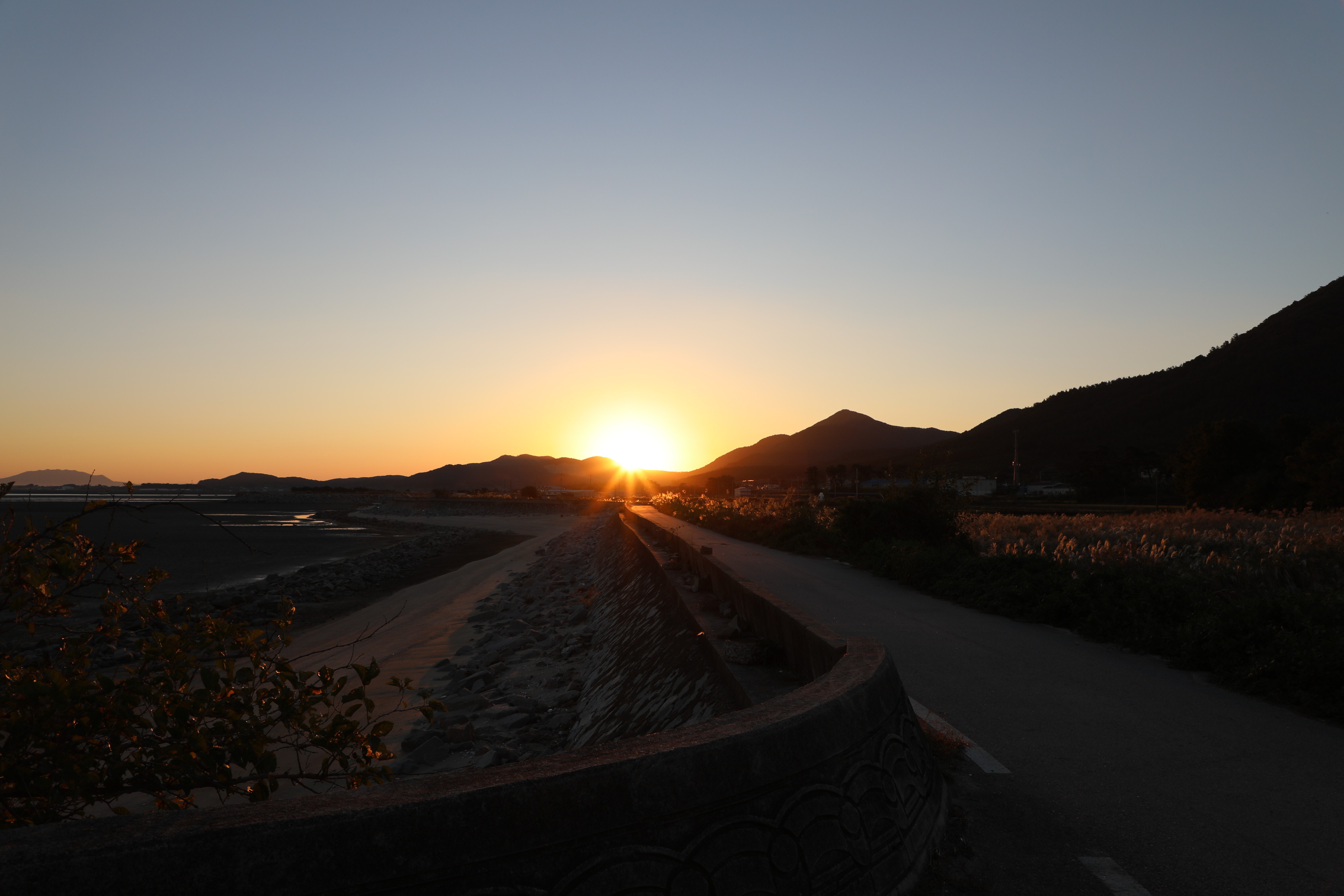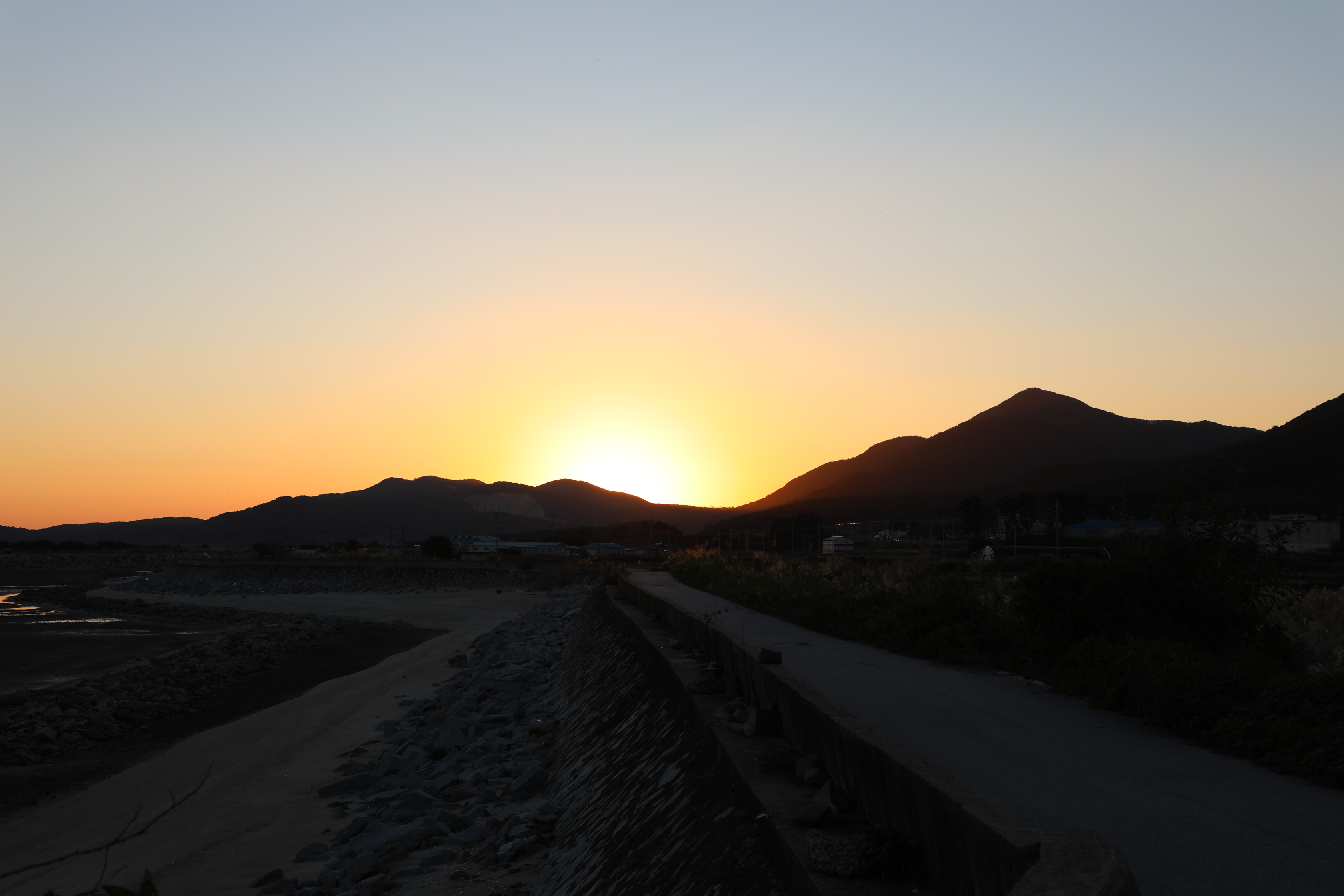 지난 9월 27일에 고창 하전마을의 바닷가에서 일출을 봤다.