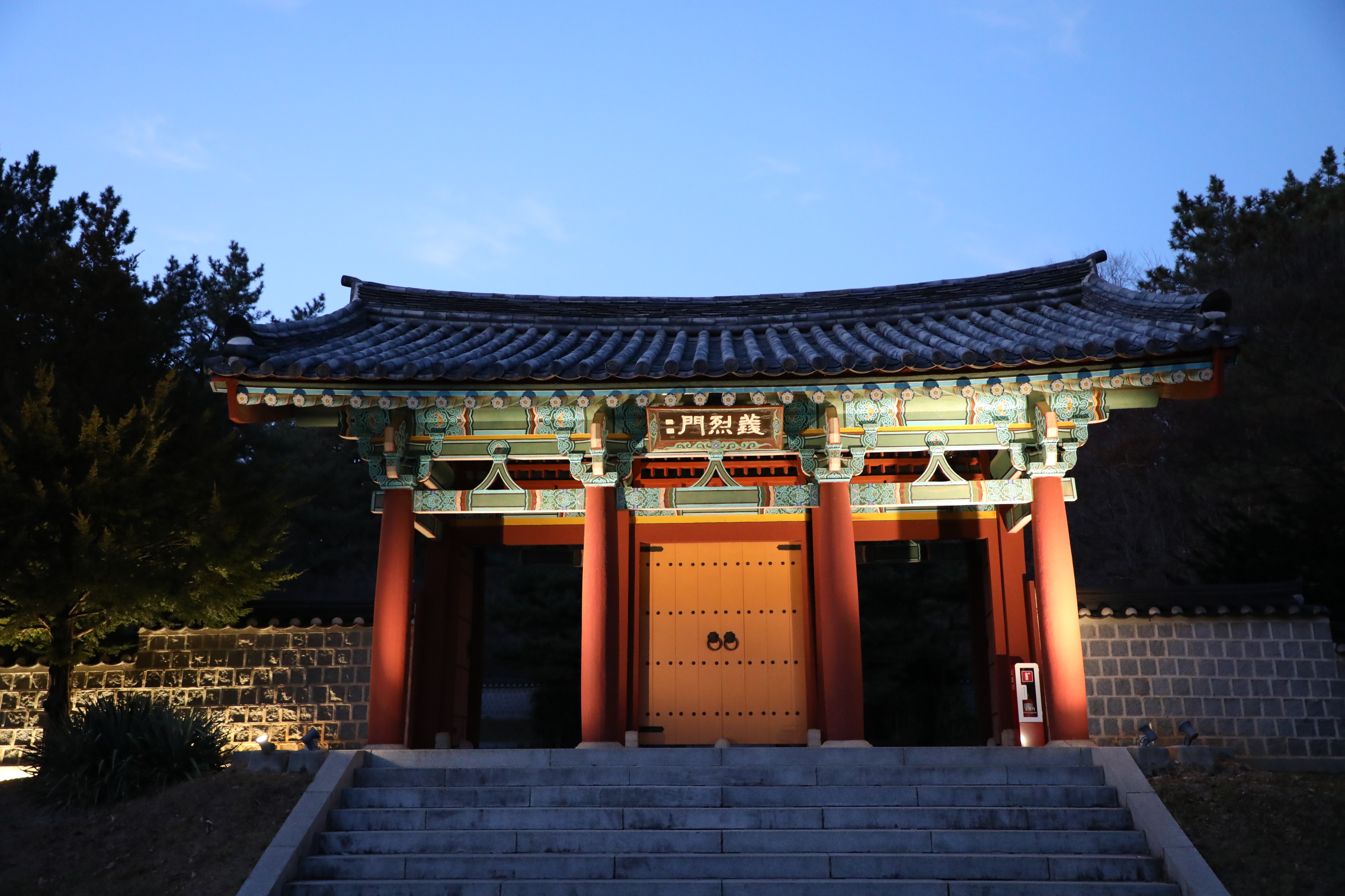 야간 탐방객을 위해 시간 맞춰 조명이 켜지도록 시간을 설정했나 보다.