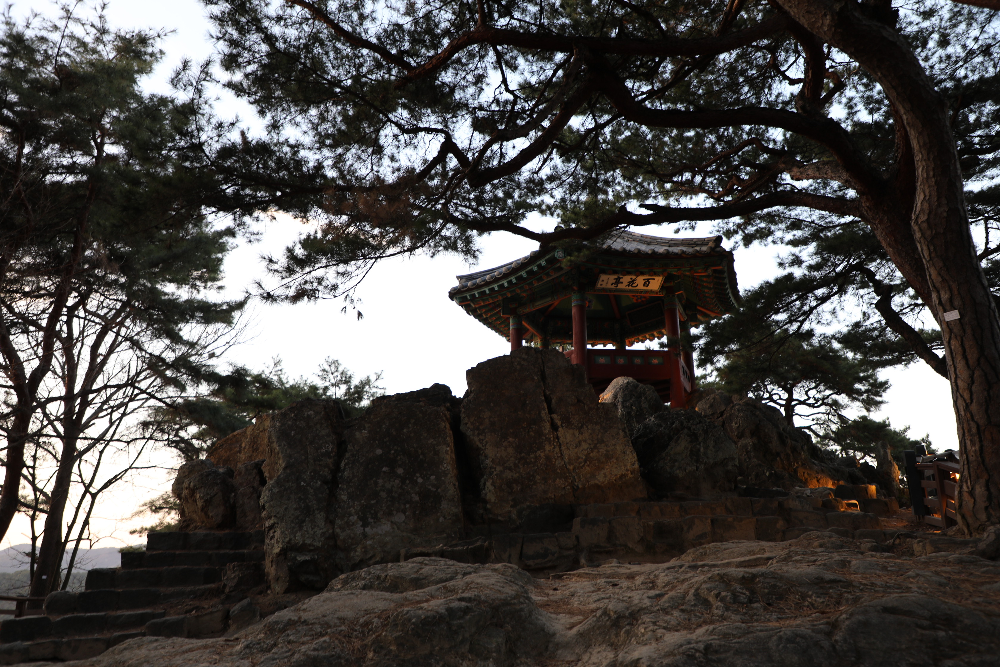 전망대에서 일몰을 보고 백화정으로 올라오니 그새 조명등이 켜졌다.