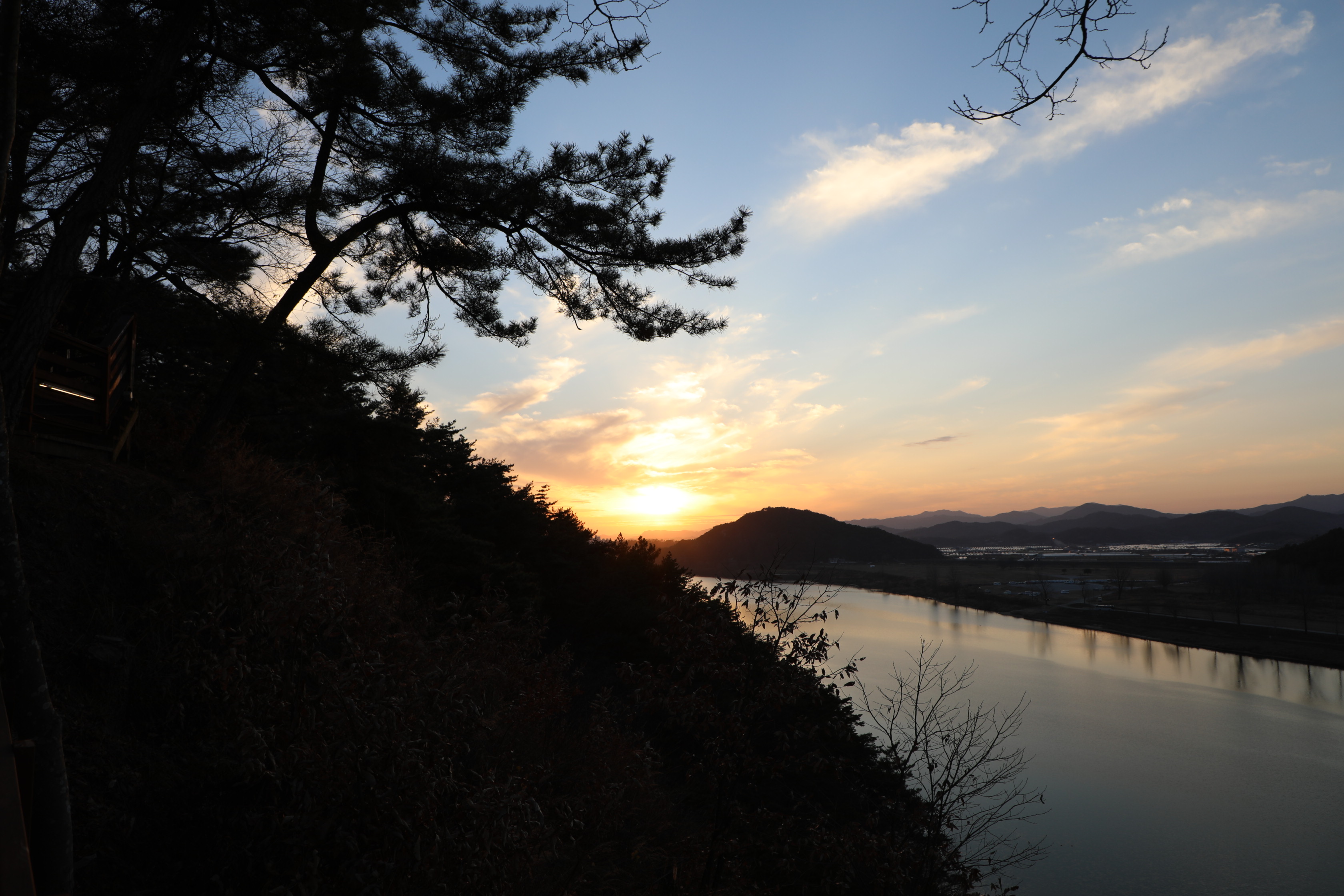 낙화암 전망대에서 보는 금강 건너편 부산 뒤는 지는 일몰 풍경