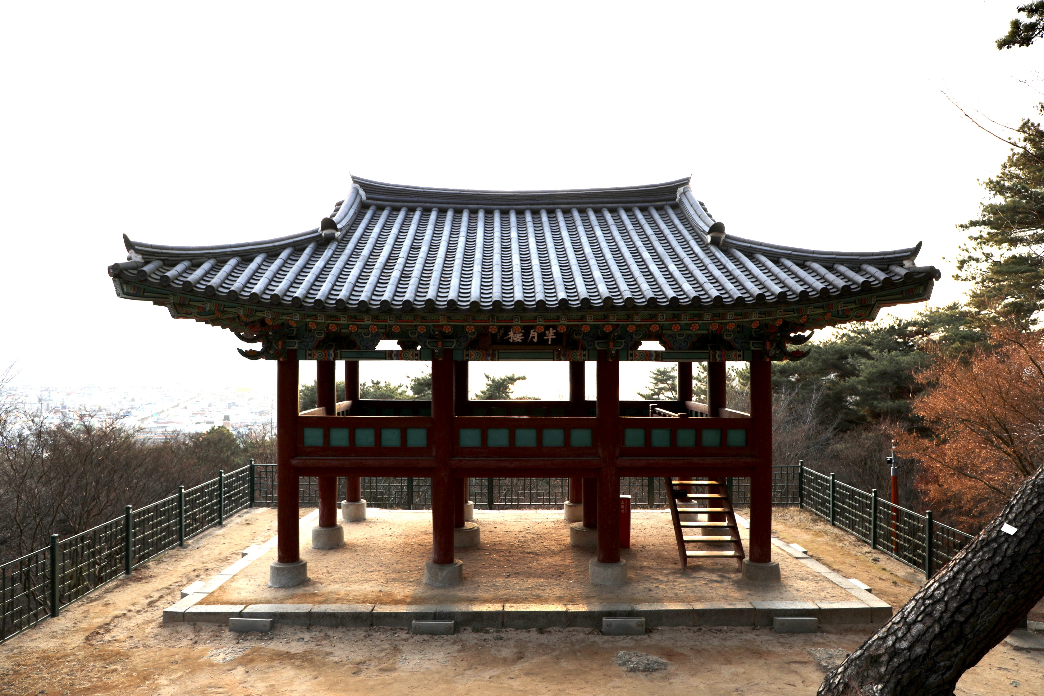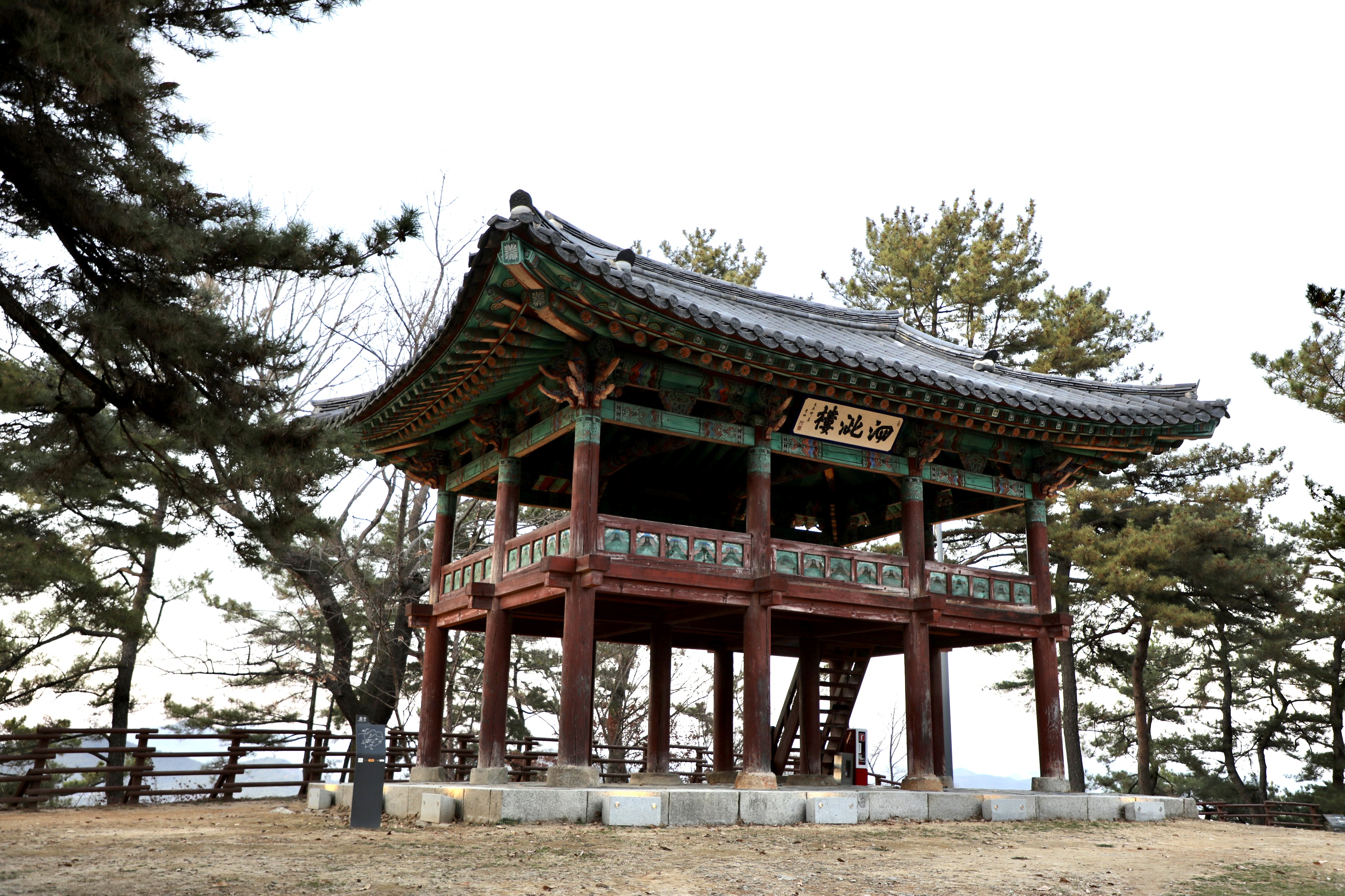 정자의 바닥을 지반에서 높이 뛰우고 남쪽에 나무 계단 하나를 두어 출입할 수 있게 했다.