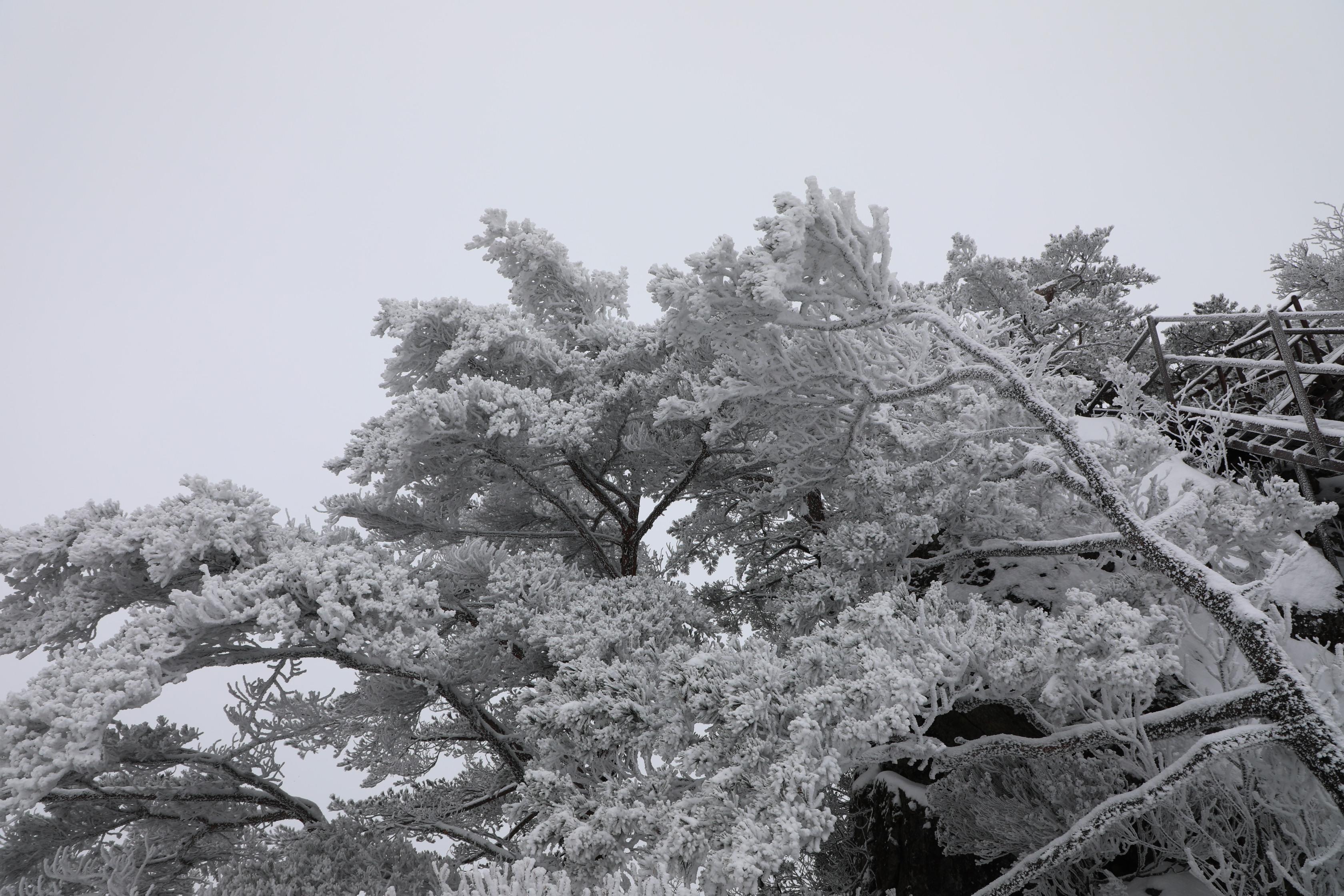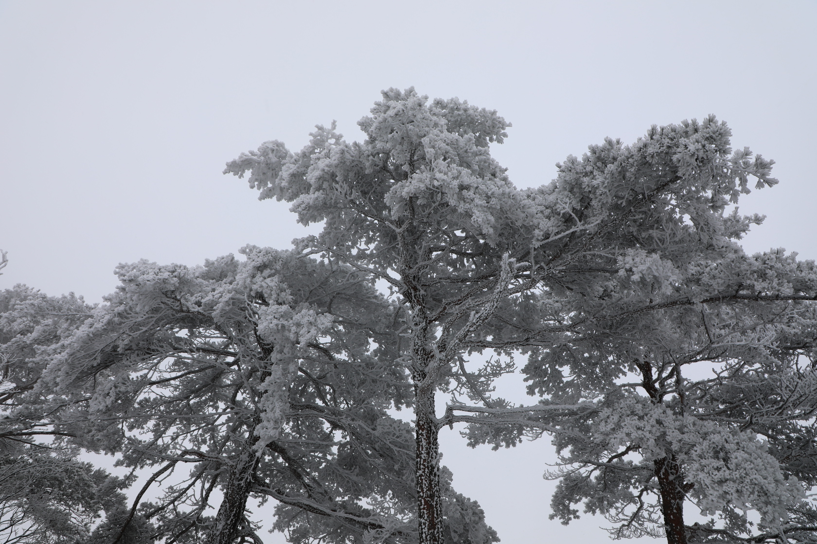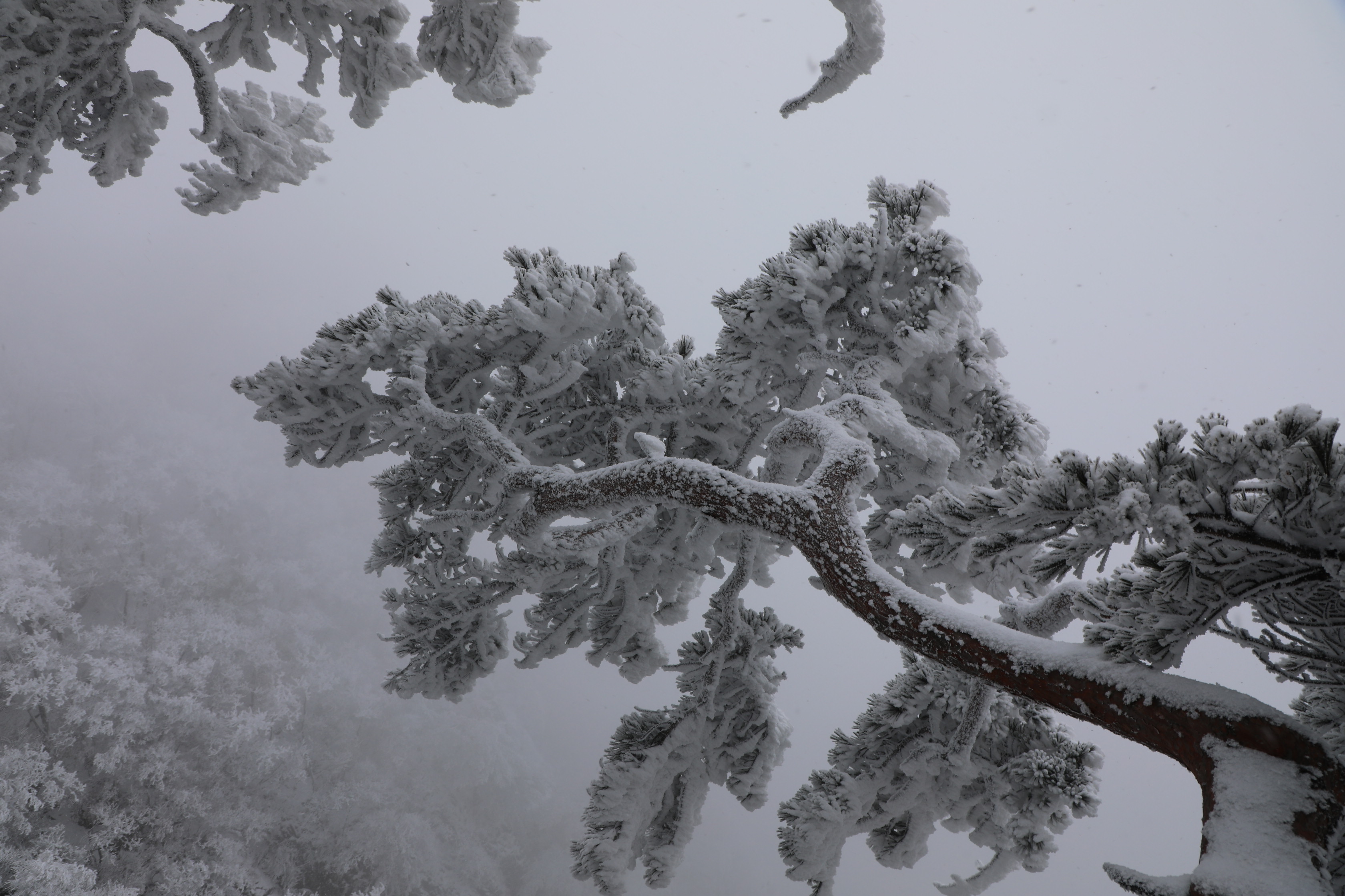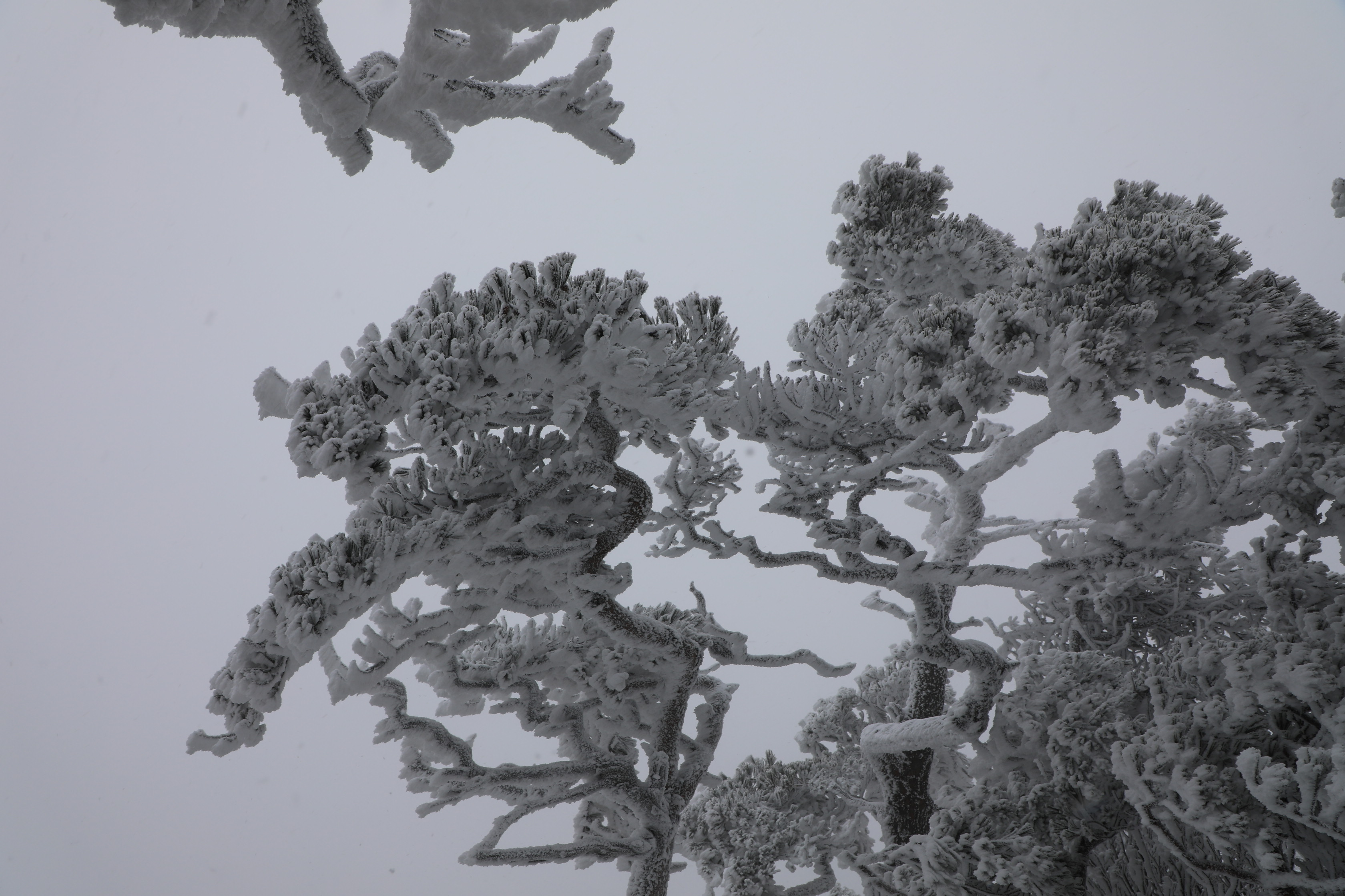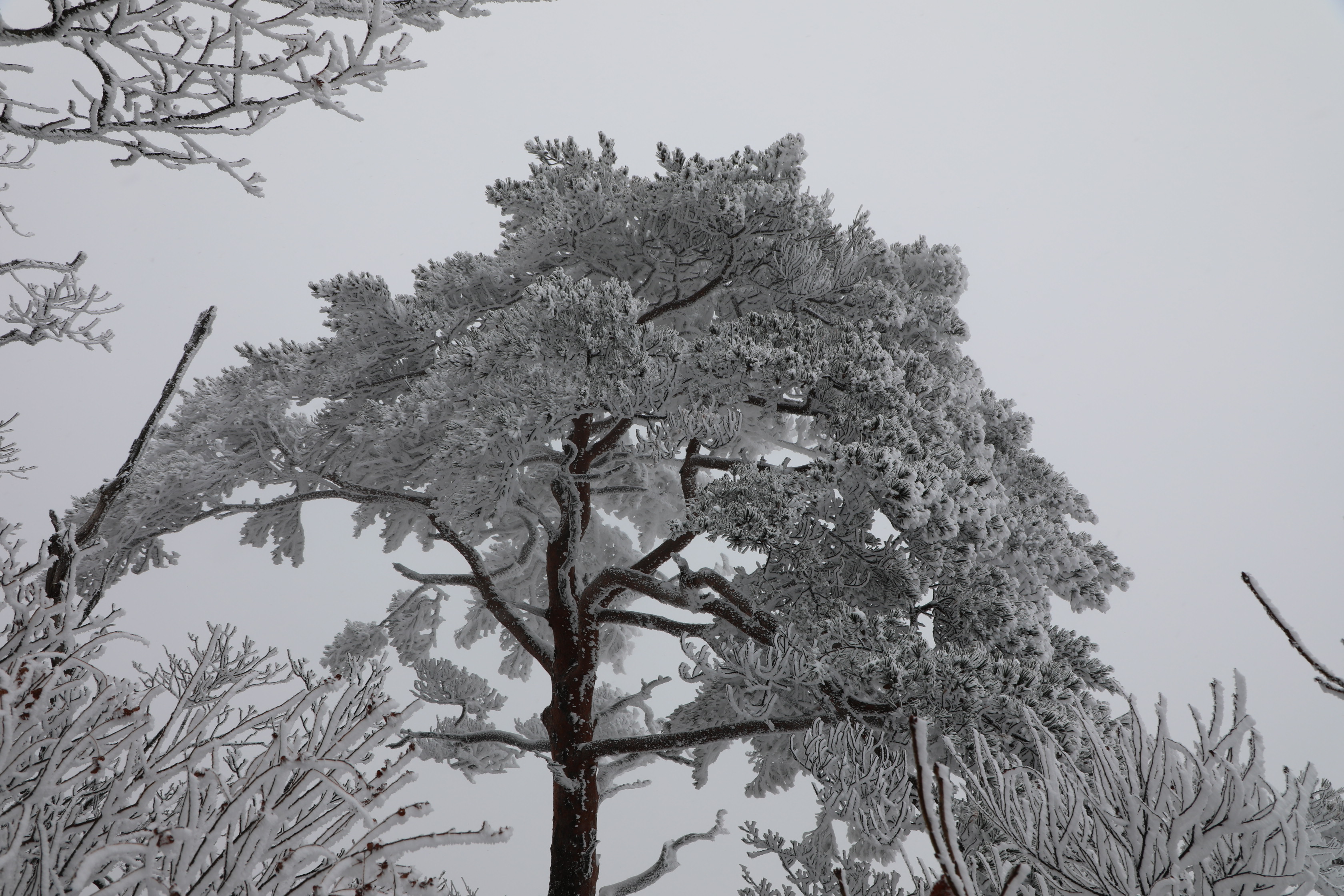 솔잎에 수십 겹의 상고대가 붙으며 무게를 더하자 나무는 하중을 견디지 못하고 쓰러질 듯 누웠다.