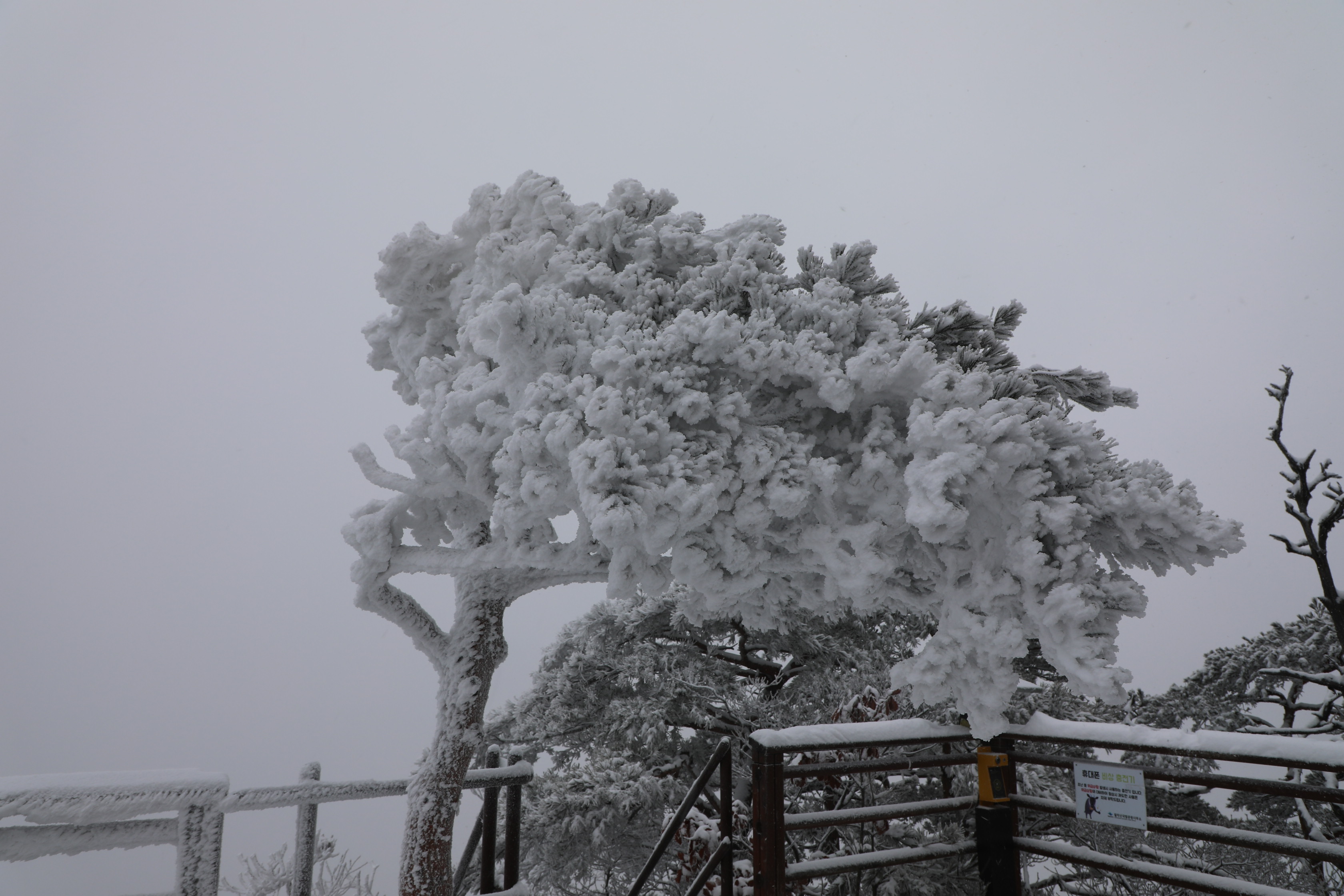눈이라기보다는 안개가 바람에 실려 나무에 둘러붙으며 상고대가 되었다.