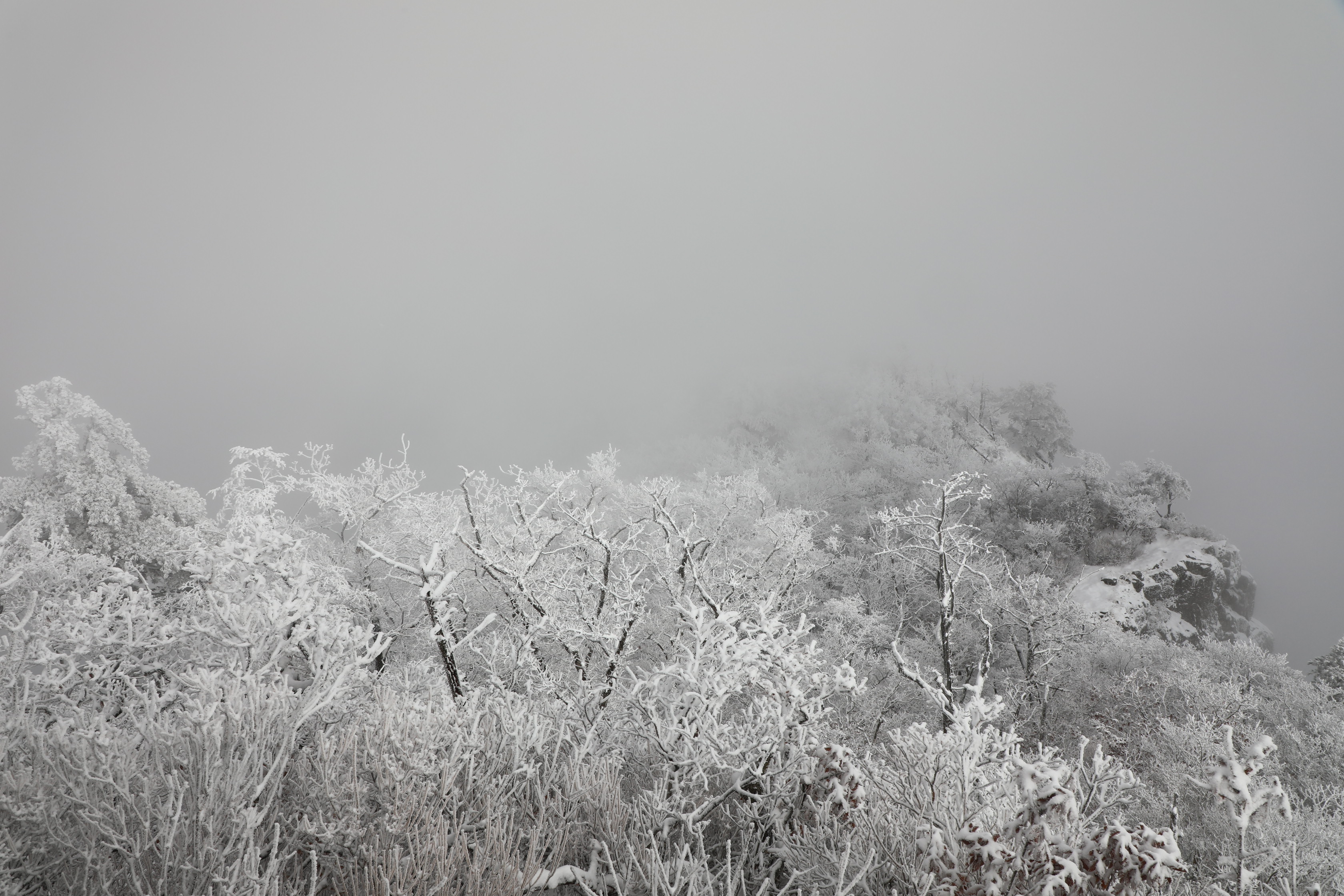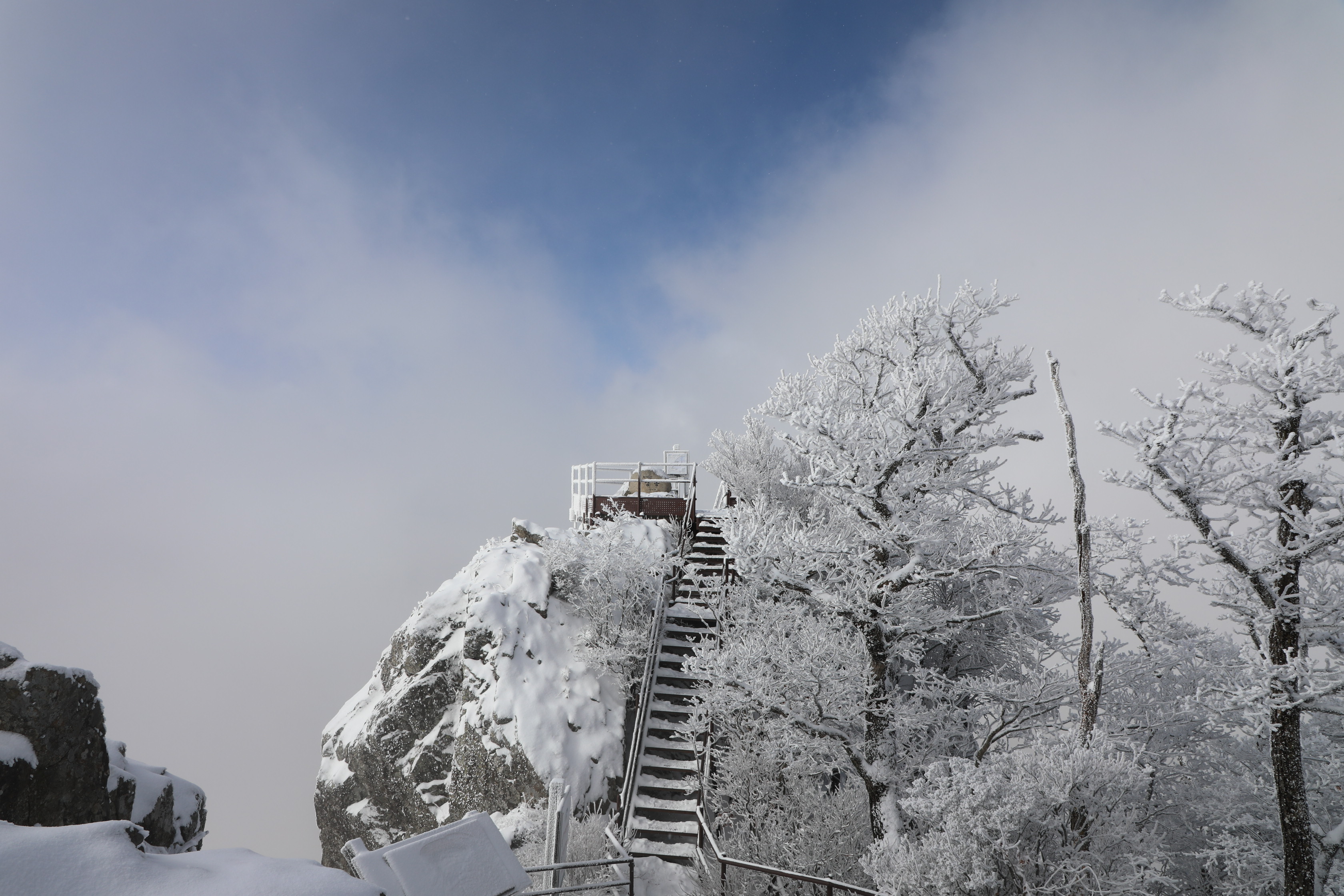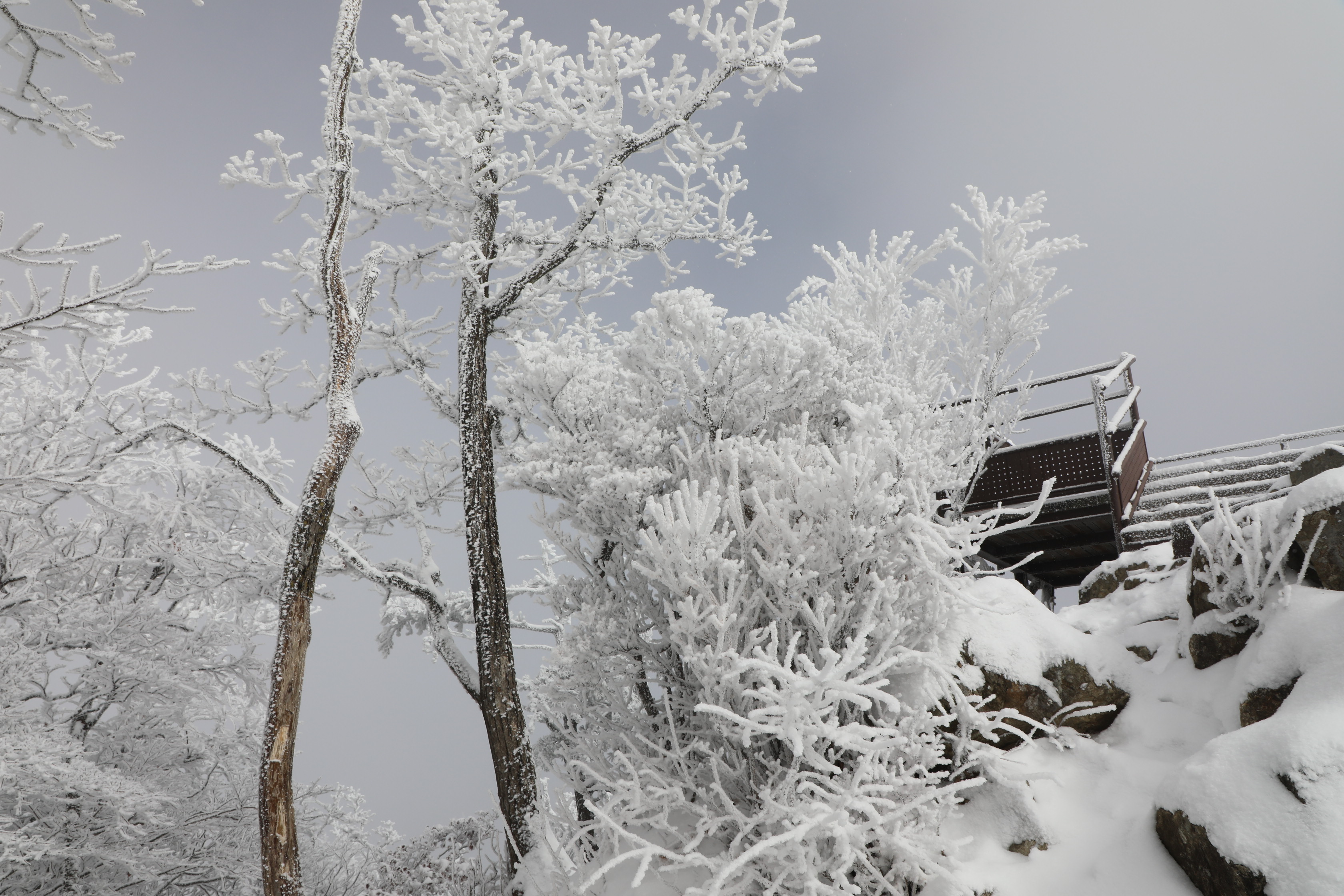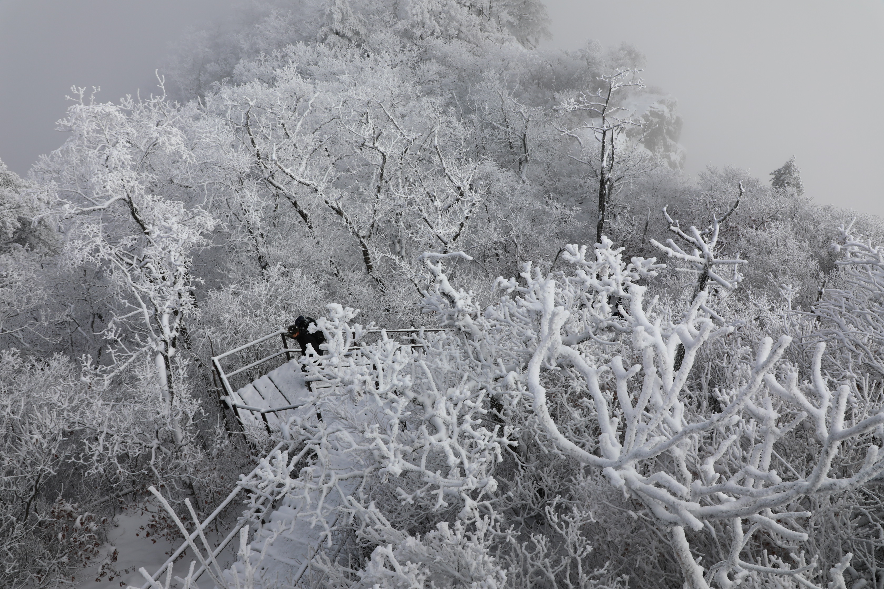 잠깐 트인 틈에 어디를 봐도 온통 상고대뿐이다.