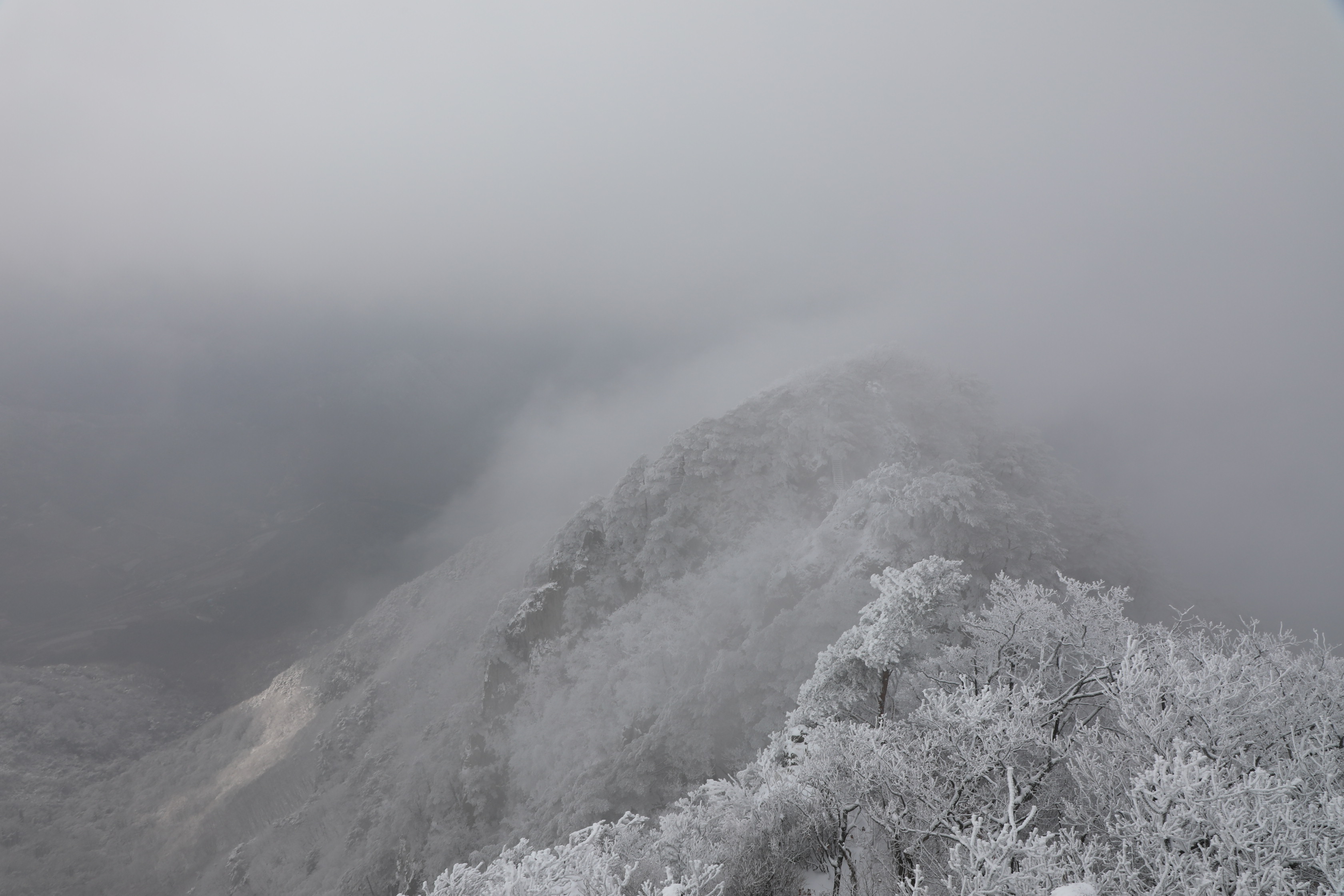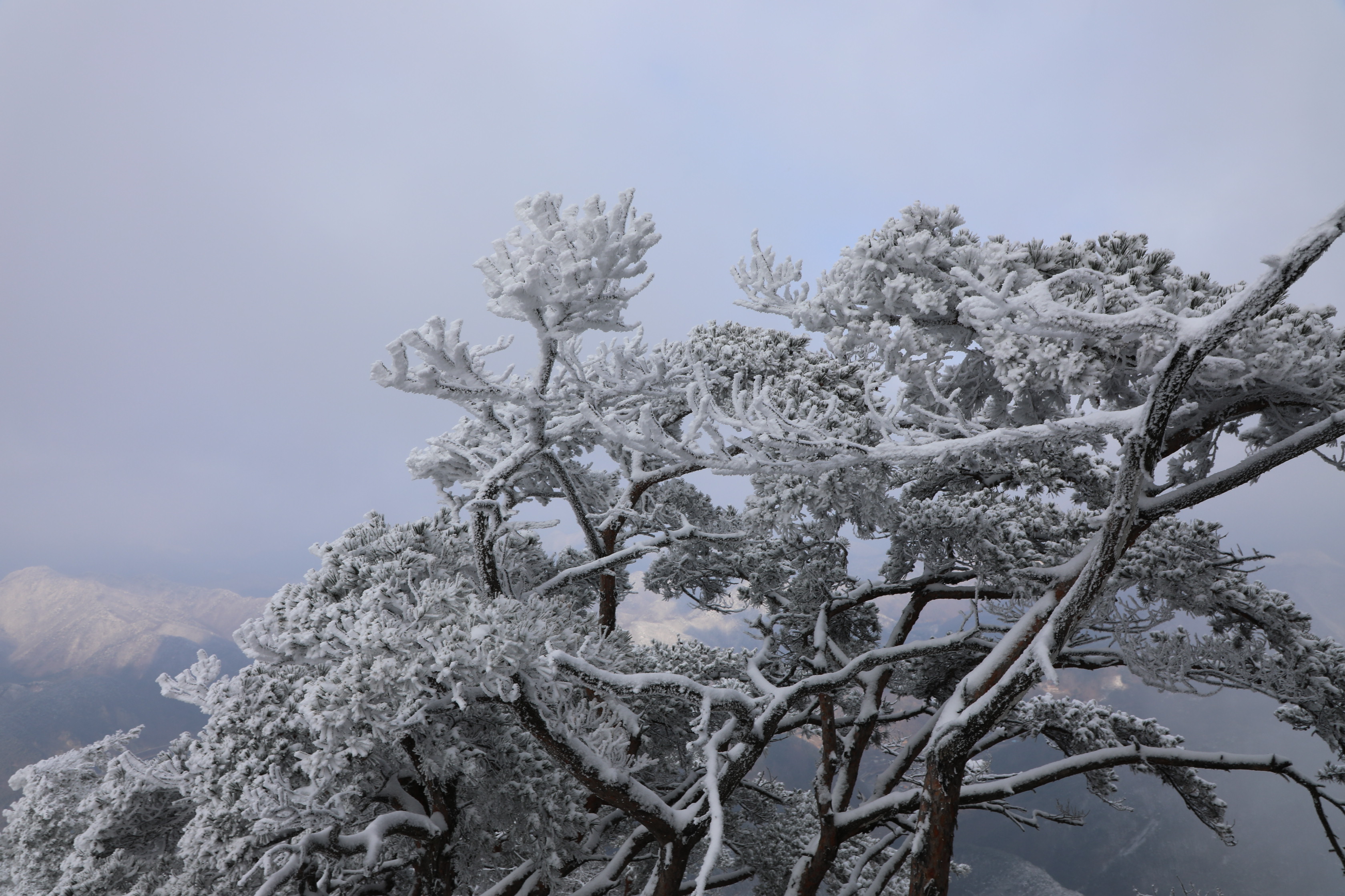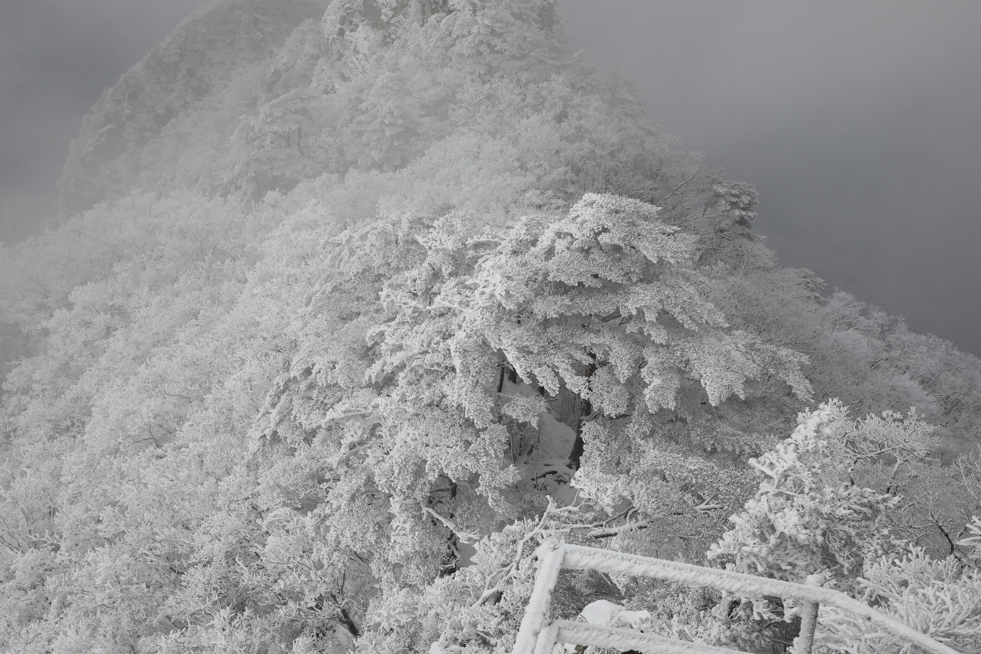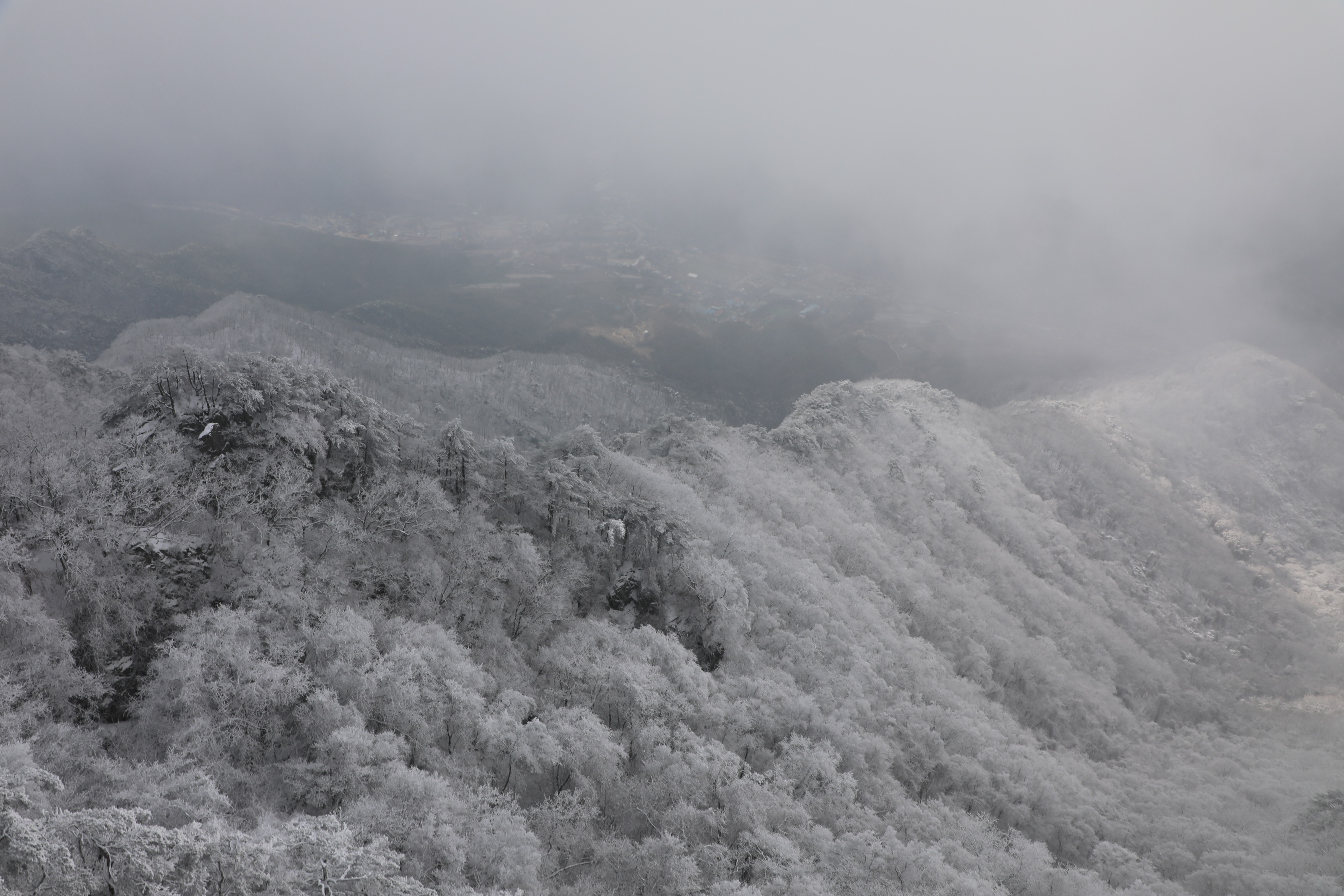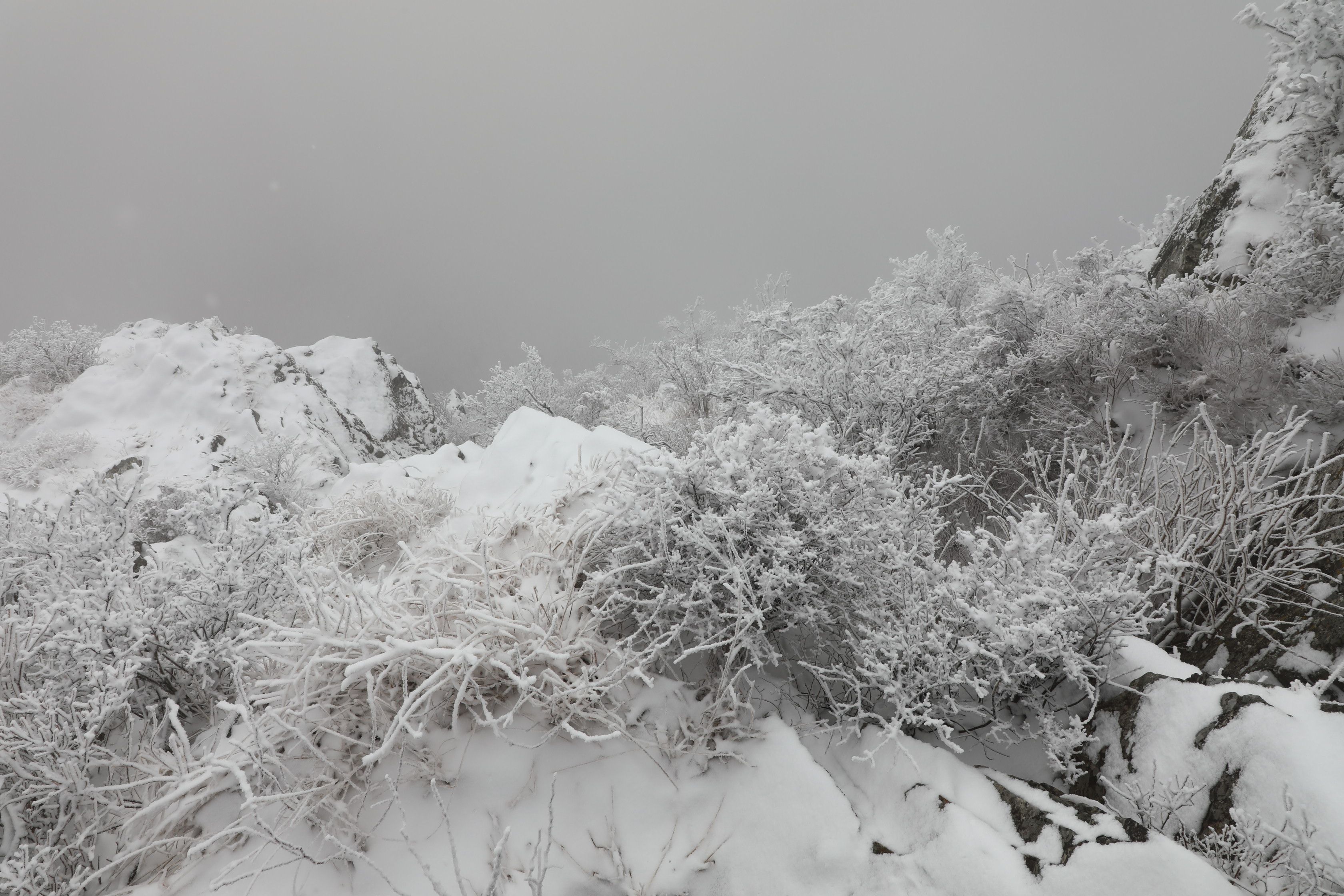 잠깐 트인 틈에 어디를 봐도 온통 상고대뿐이다.