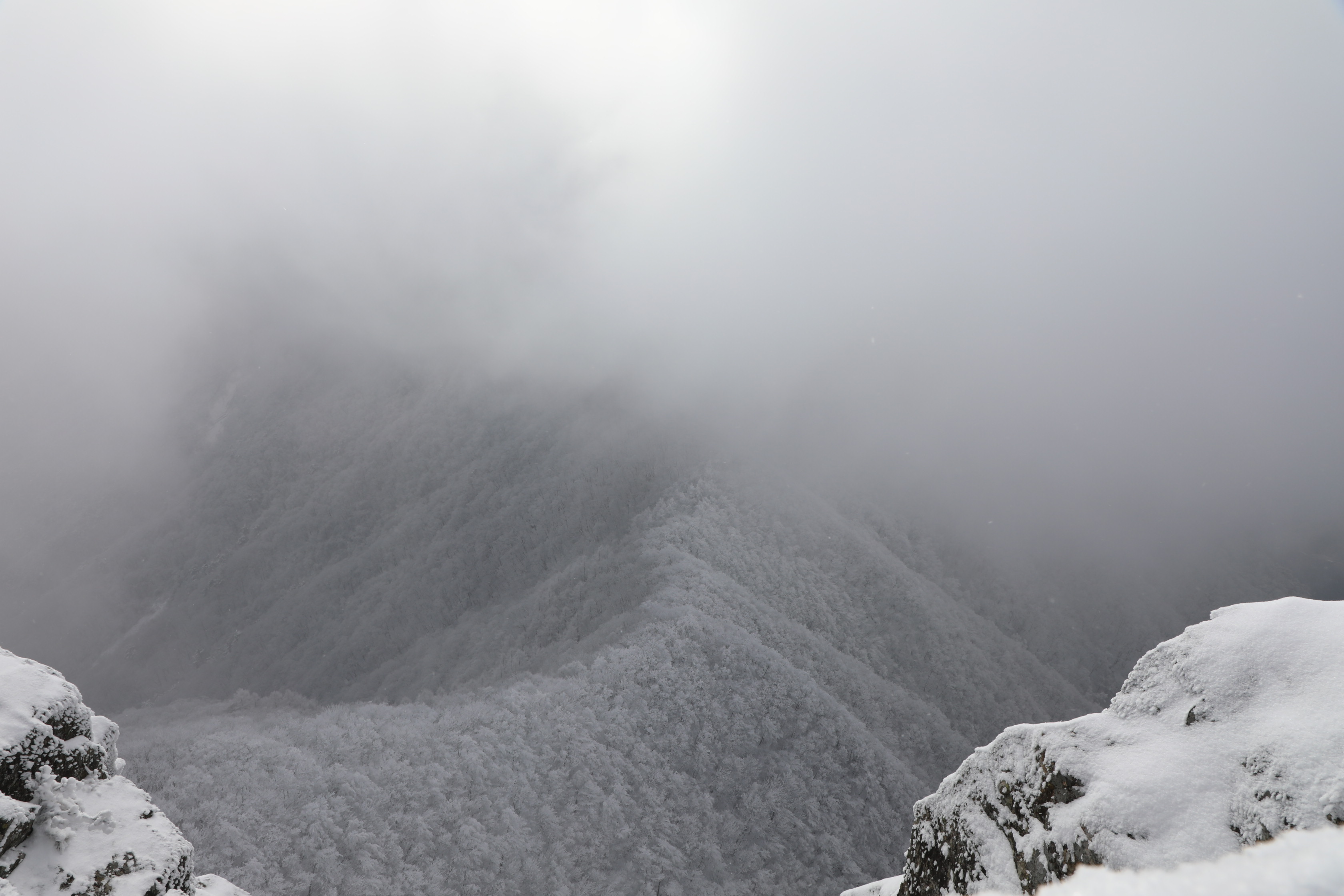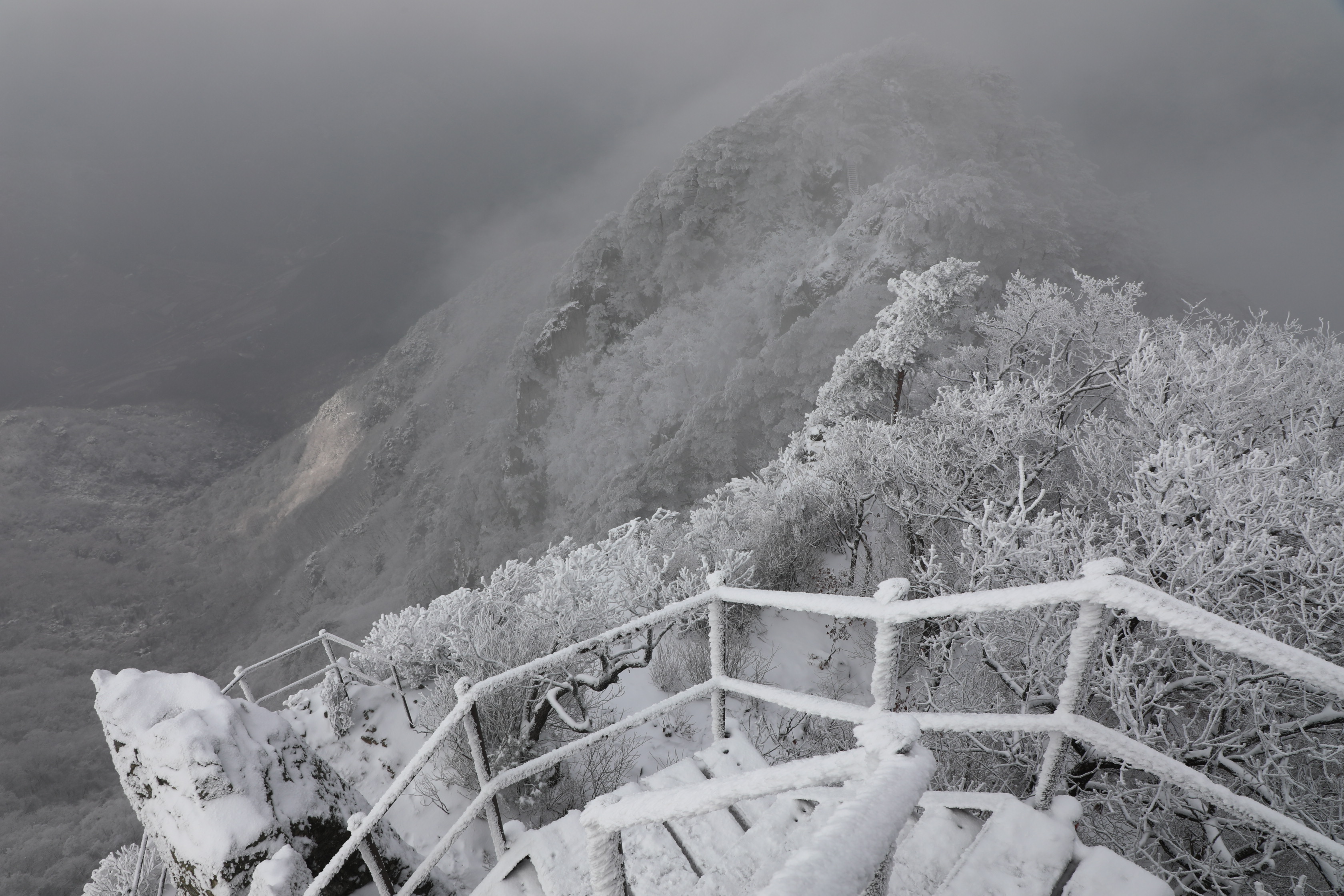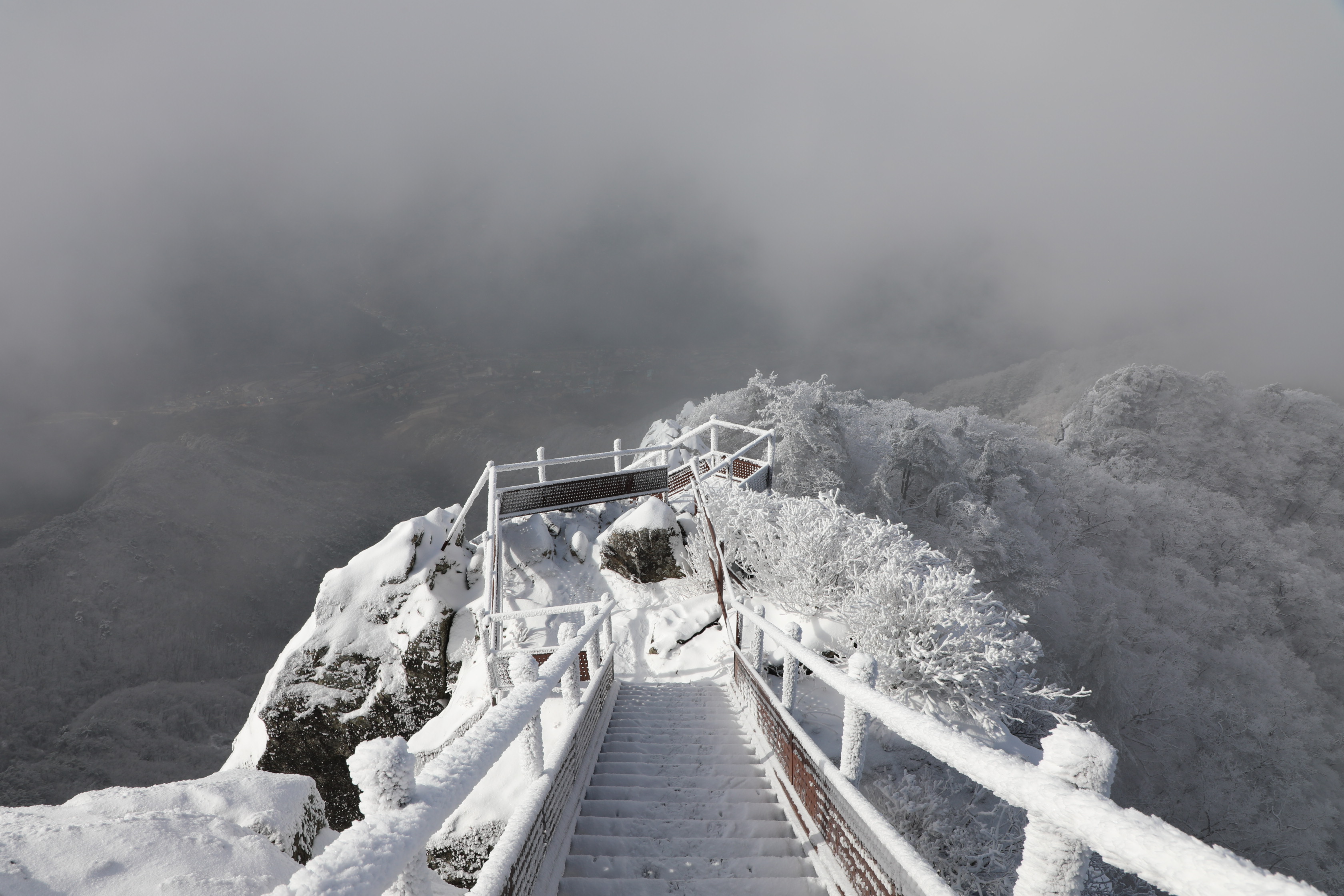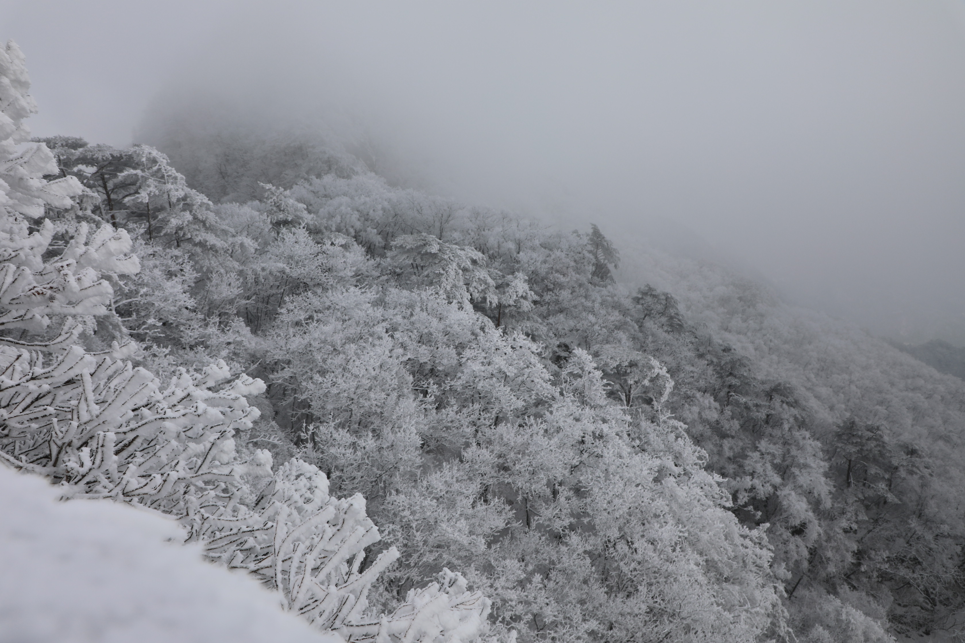 잠깐 트인 틈에 어디를 봐도 온통 상고대뿐이다.