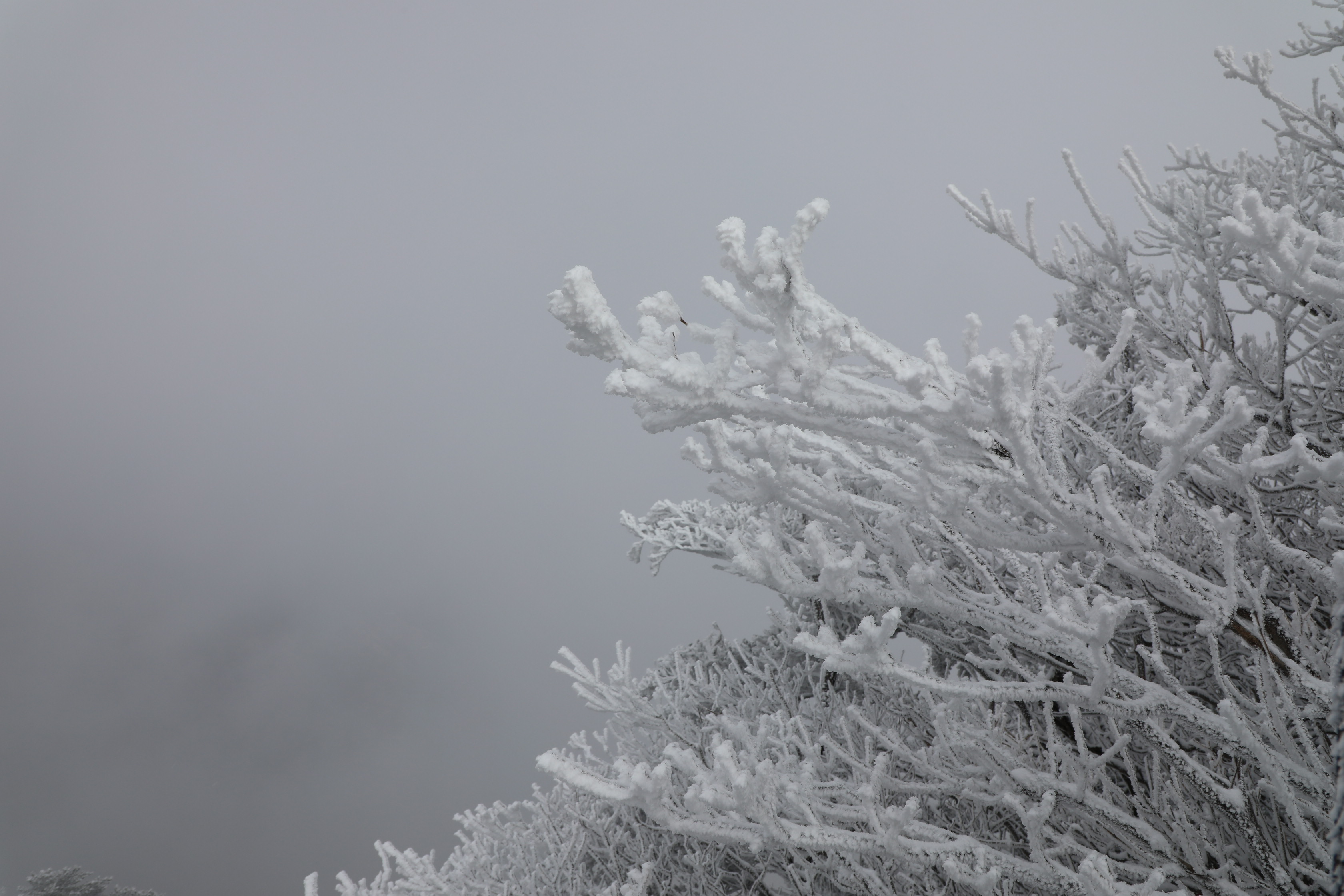 얼음에서 막 뽑아 올린 거 같은 느낌의 상고대...
