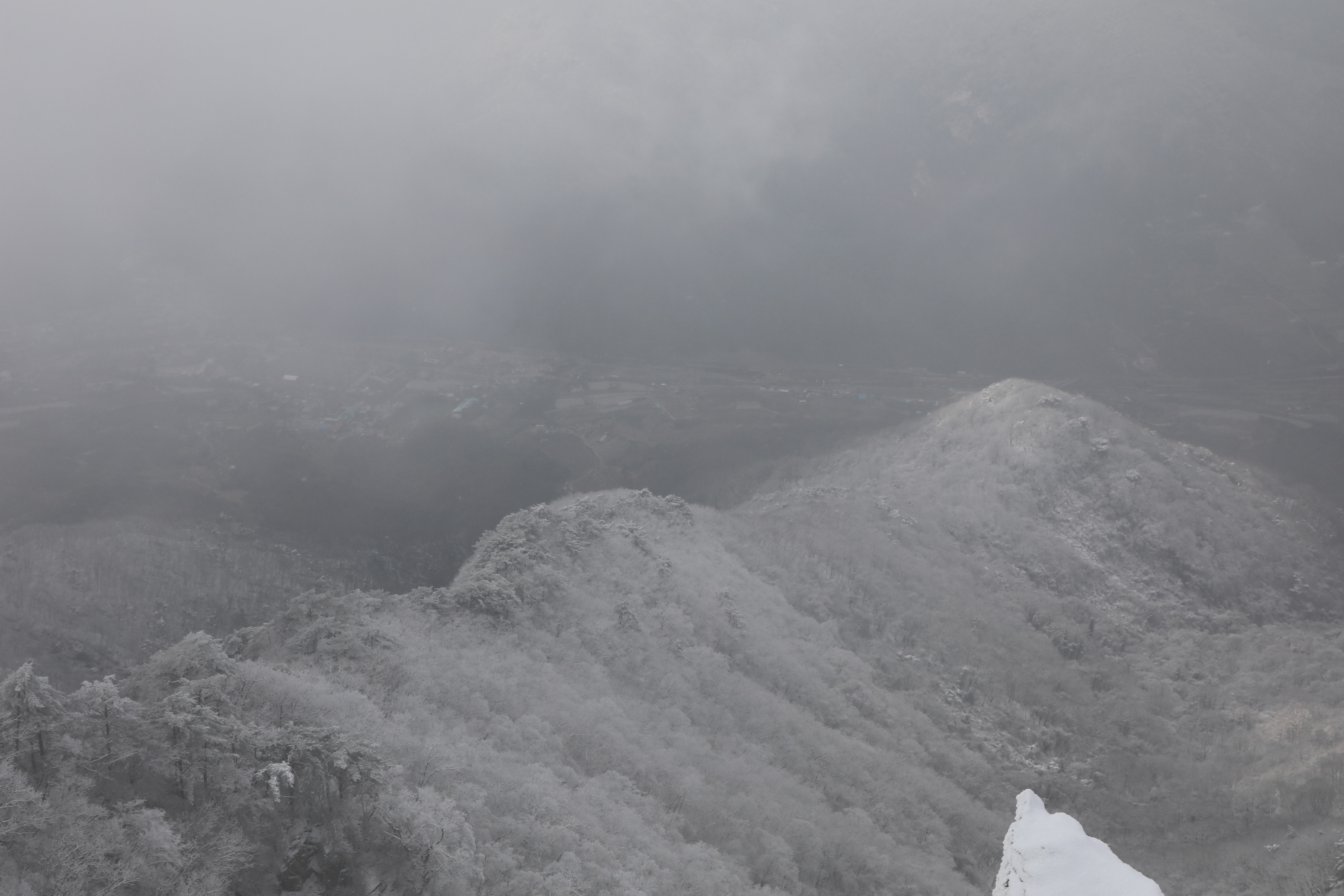 온통 하얀 비단으로 덮은 듯 보이는 꼬마 능선