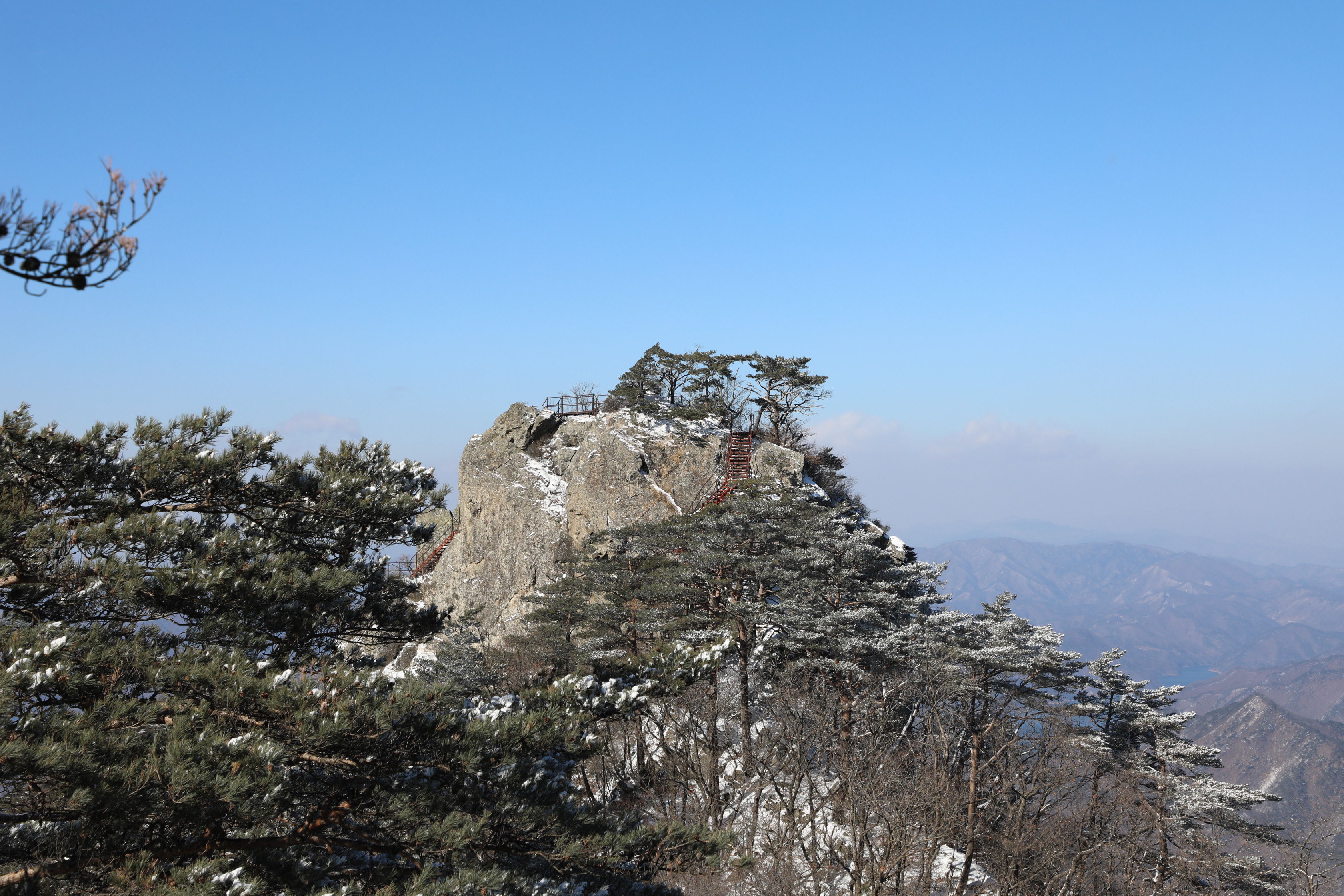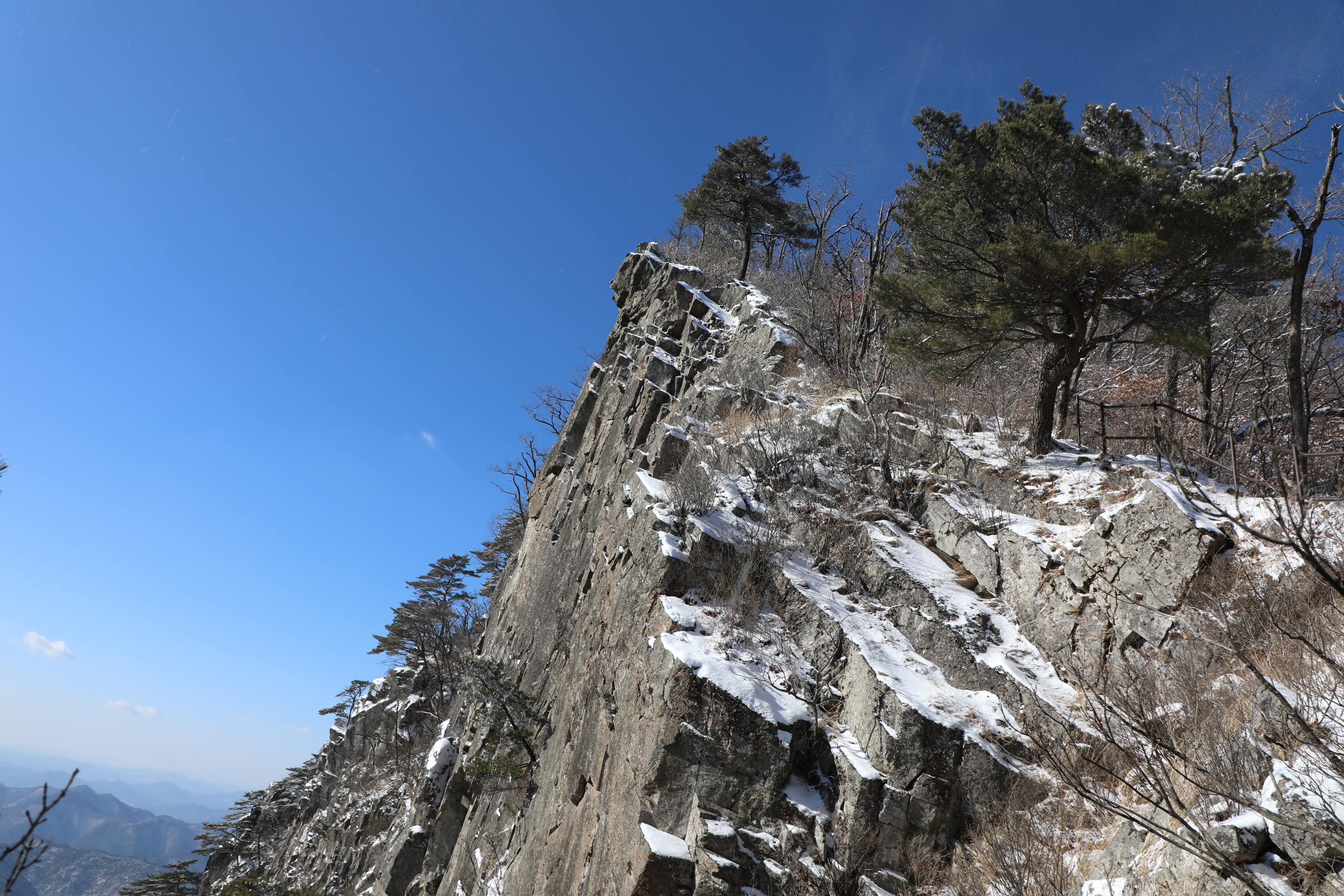 영봉을 내려오며 바위에서 자라는 나무를 보니 지난주 상고대와 천지차이다.