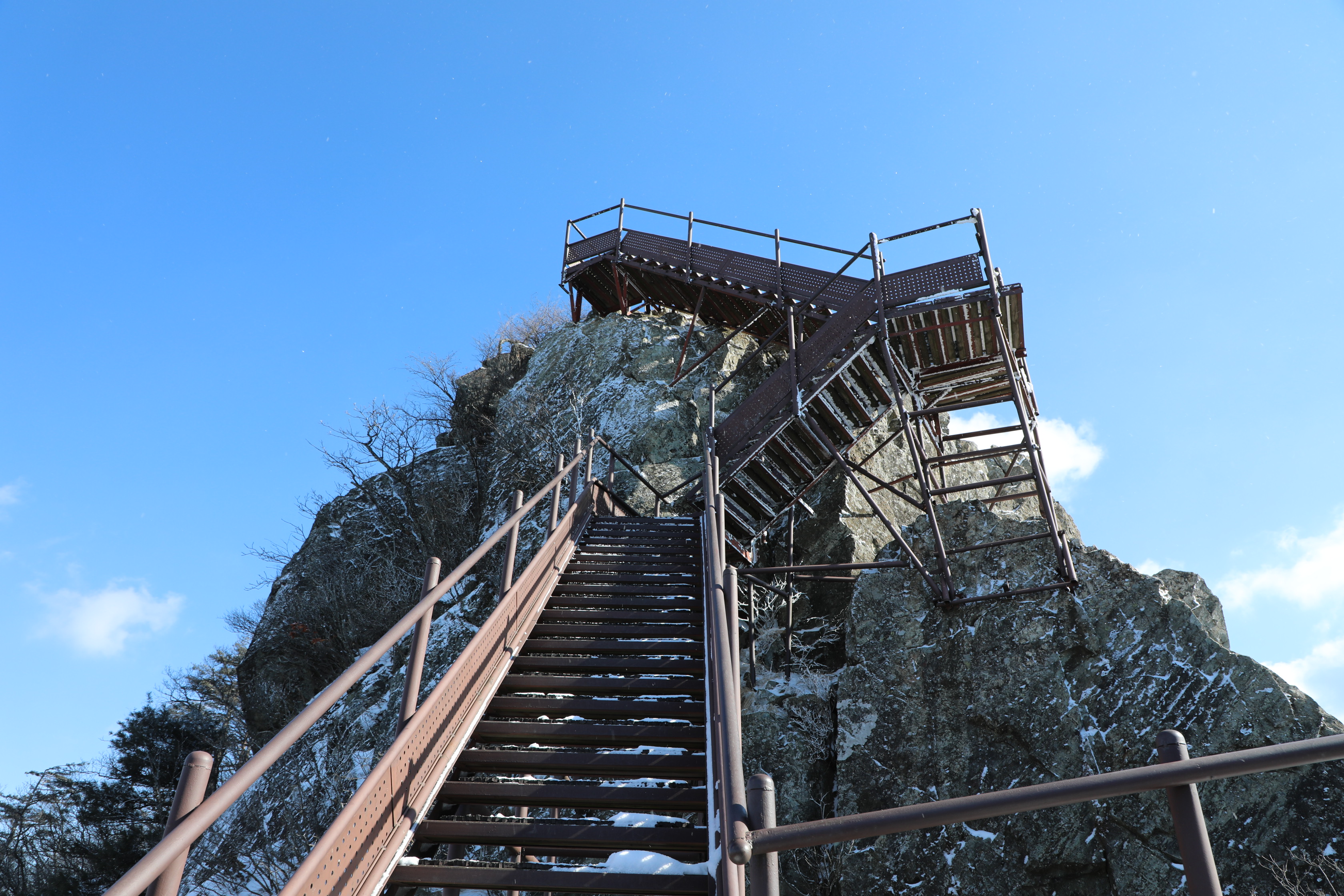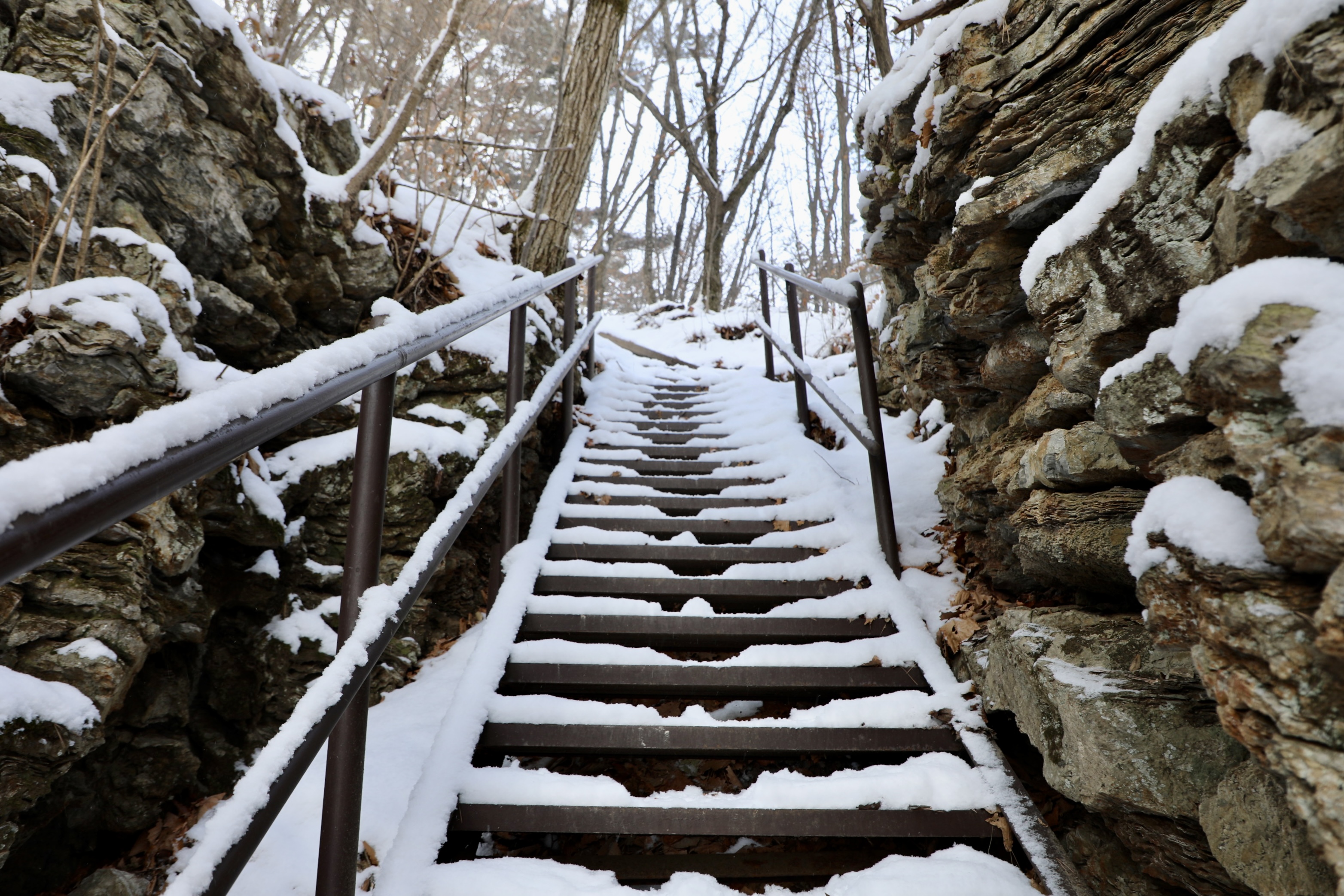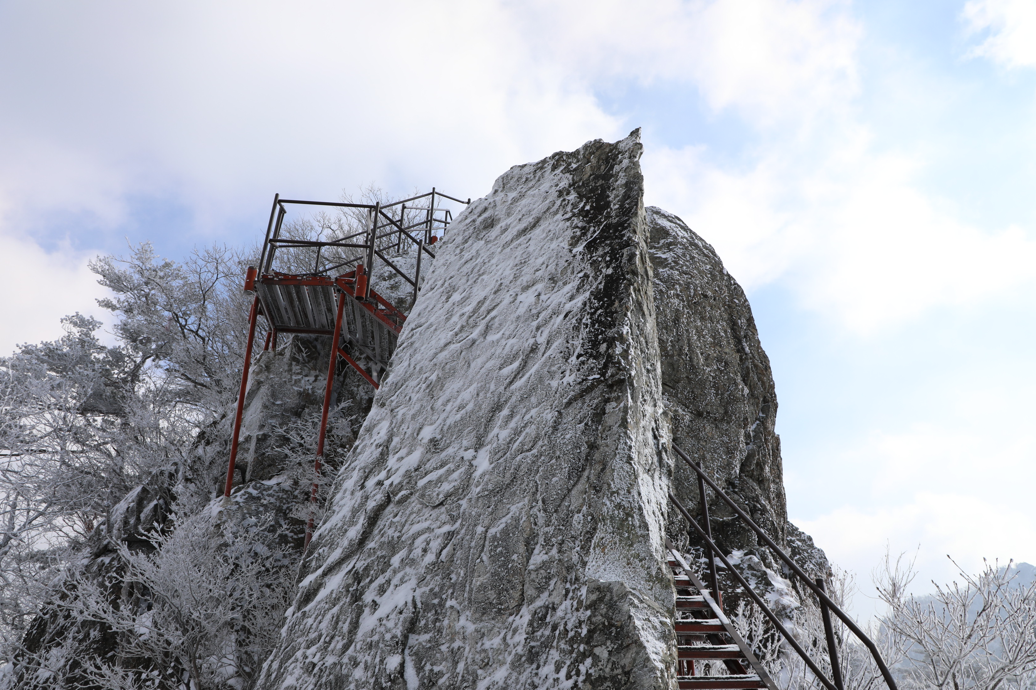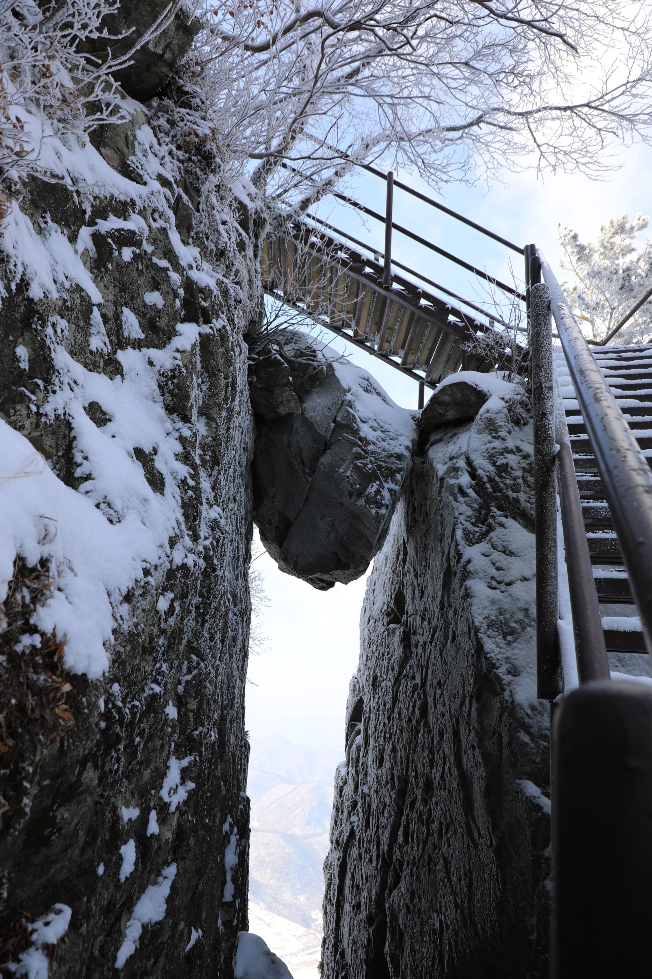 바람이 없었다면 이 계단에도 상고대가 둘러붙어 흰 천을 싸맨 듯 흰색 일색일 텐데....