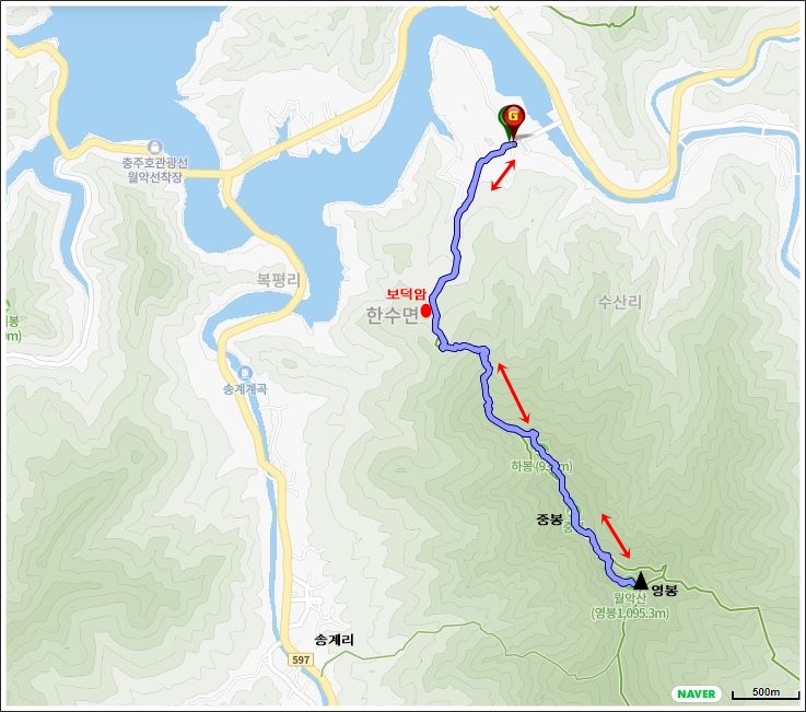 월악산은 기암절벽이 치솟아 산세가 험준하고 예로부터 신령스러운 산으로 여겨져 주봉은 영봉(1,097m)으로 불린다.