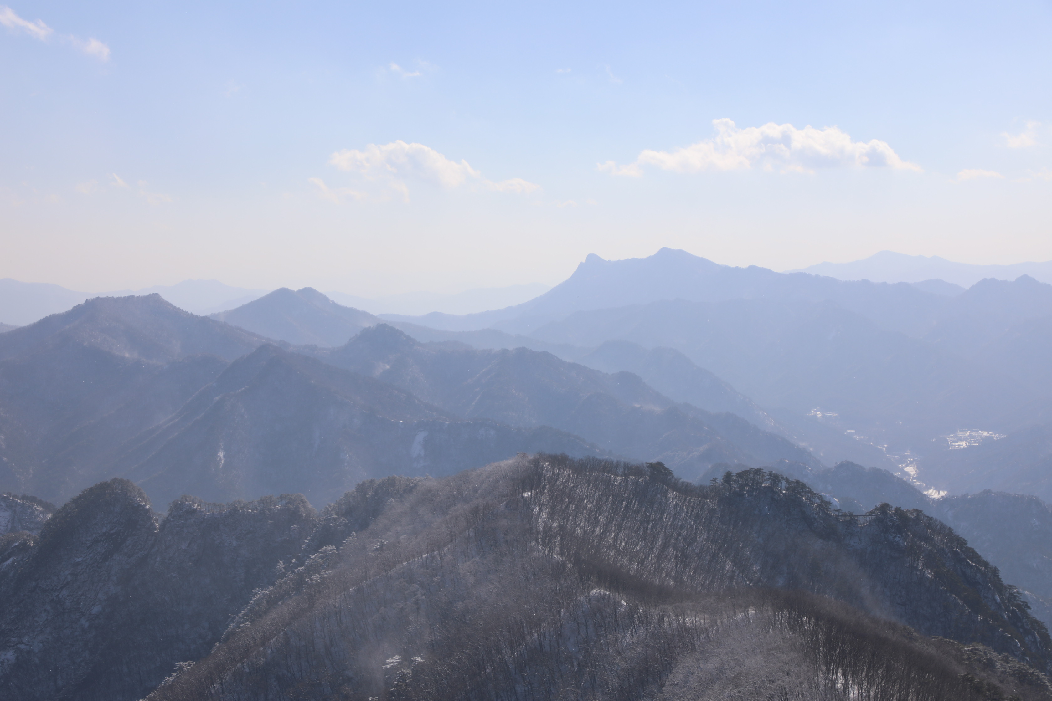 정상에 상고대가 그득하면 상고대에 정신이 팔렸을 텐데, 상고대가 없으니 주변 풍경을 돌아본다.