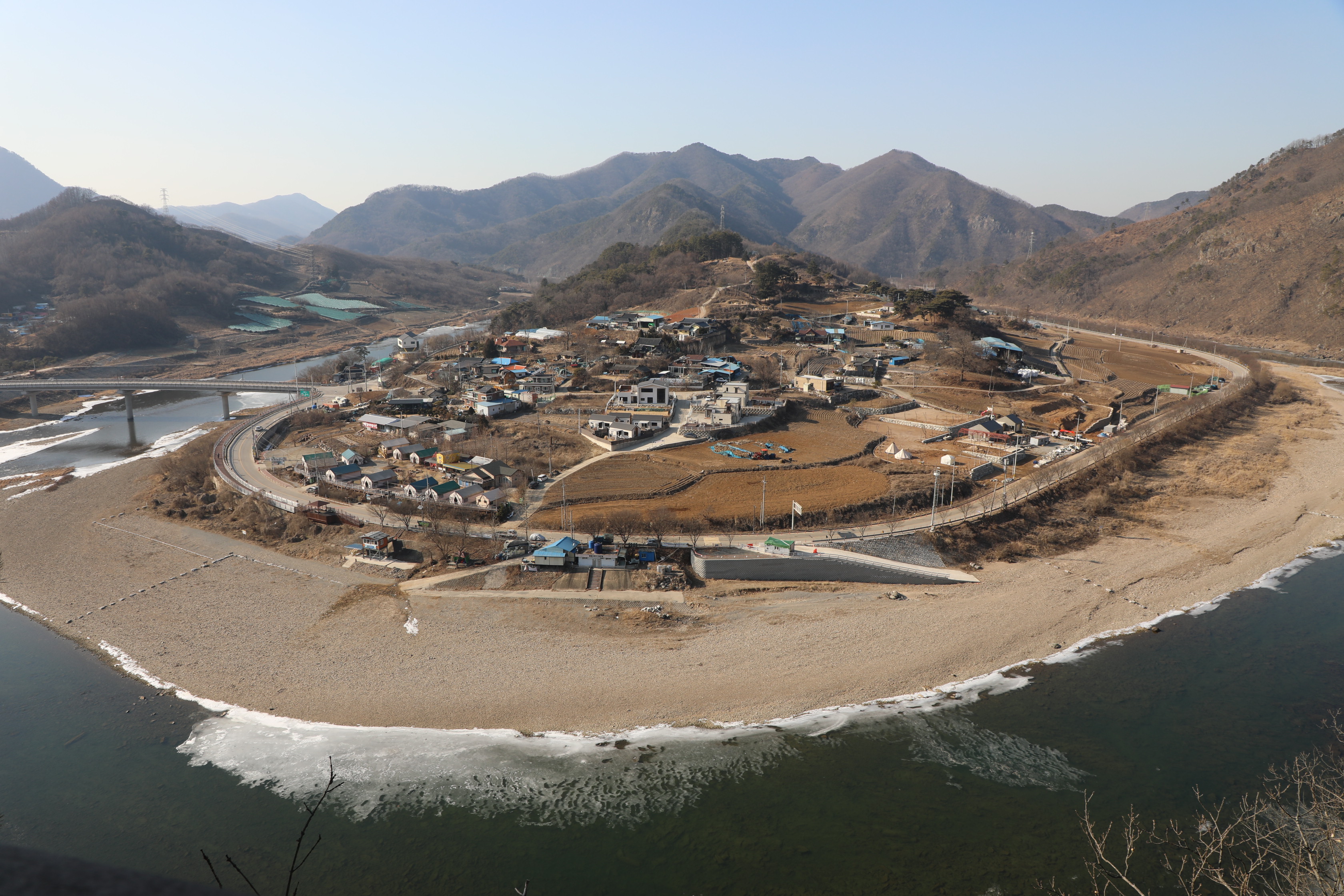 달천과 팔봉마을 전체를 사진에 담기는 쉽지 않다.
