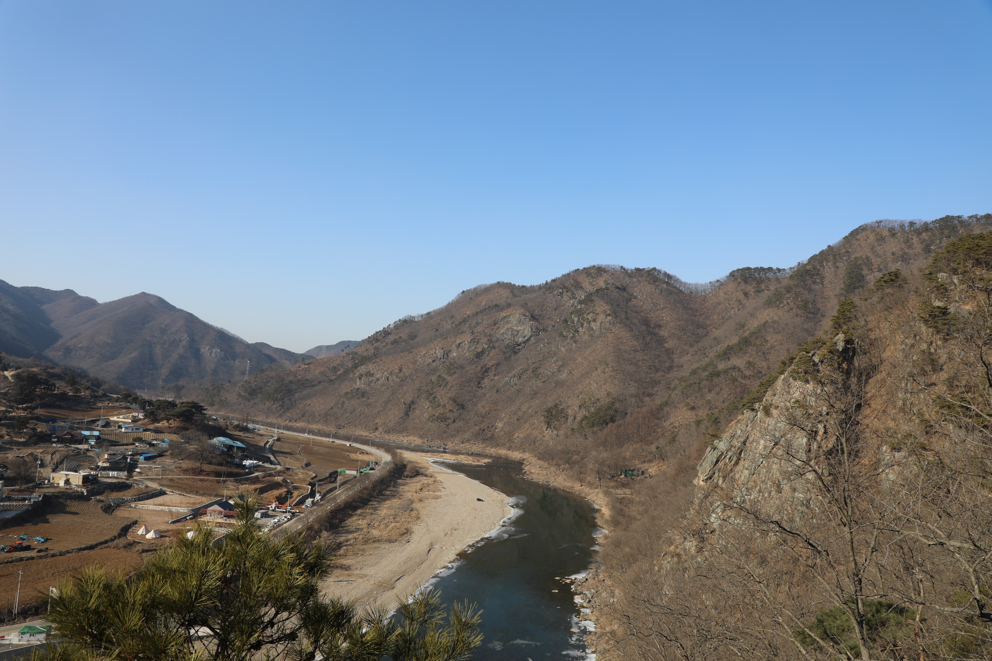 충주 시내에서 들어오면 먼저 달천이 큰 원을 그리며 나가는 수주팔봉 야영지로 내려가 보자.