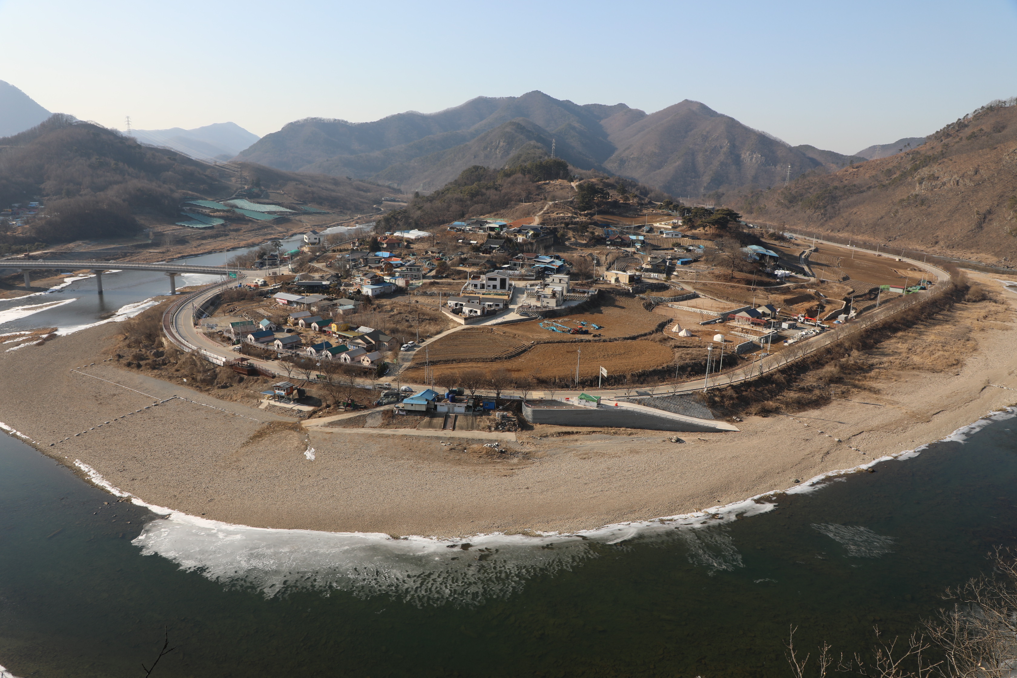 물길을 따라 한가로이 드라이브를 즐기다 보면 너른 물줄기가 ‘ᄃ’ 자로 산자락을 휘감고 돈다.