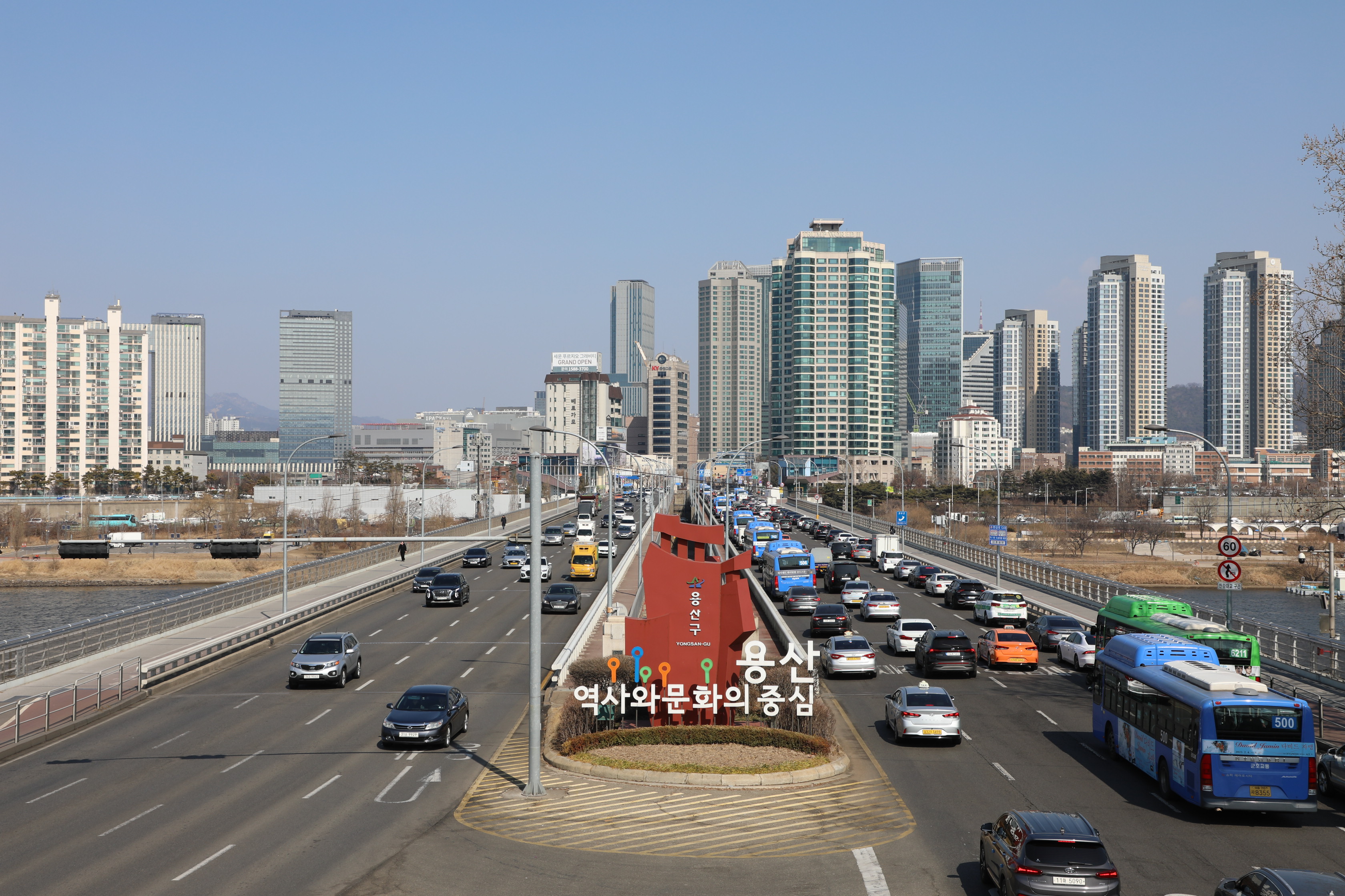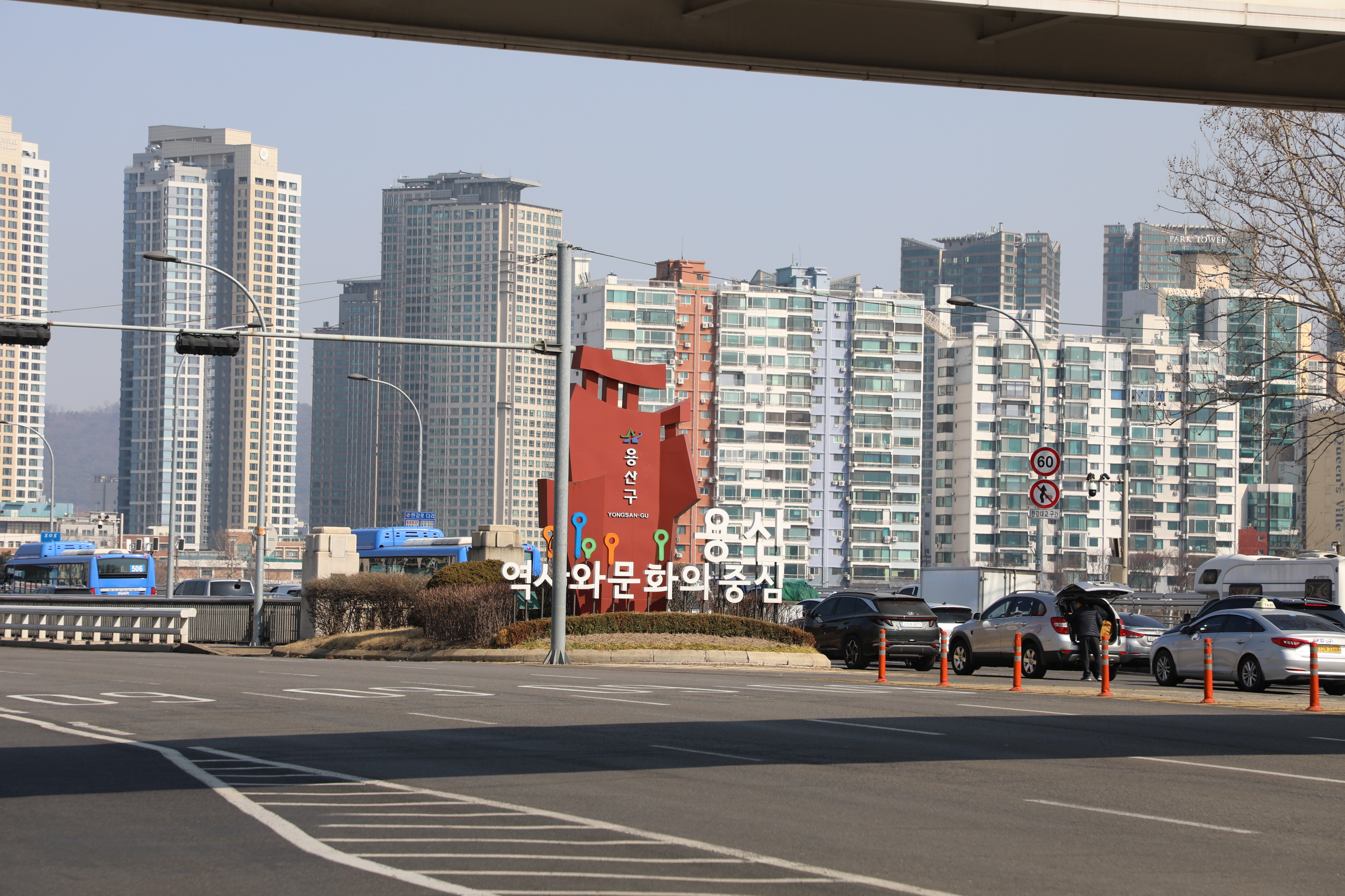 노들섬을 사이에 두고 용산구와 동작구가 각각의 구청 입구라는 걸 멋진 조형물로 알린다.