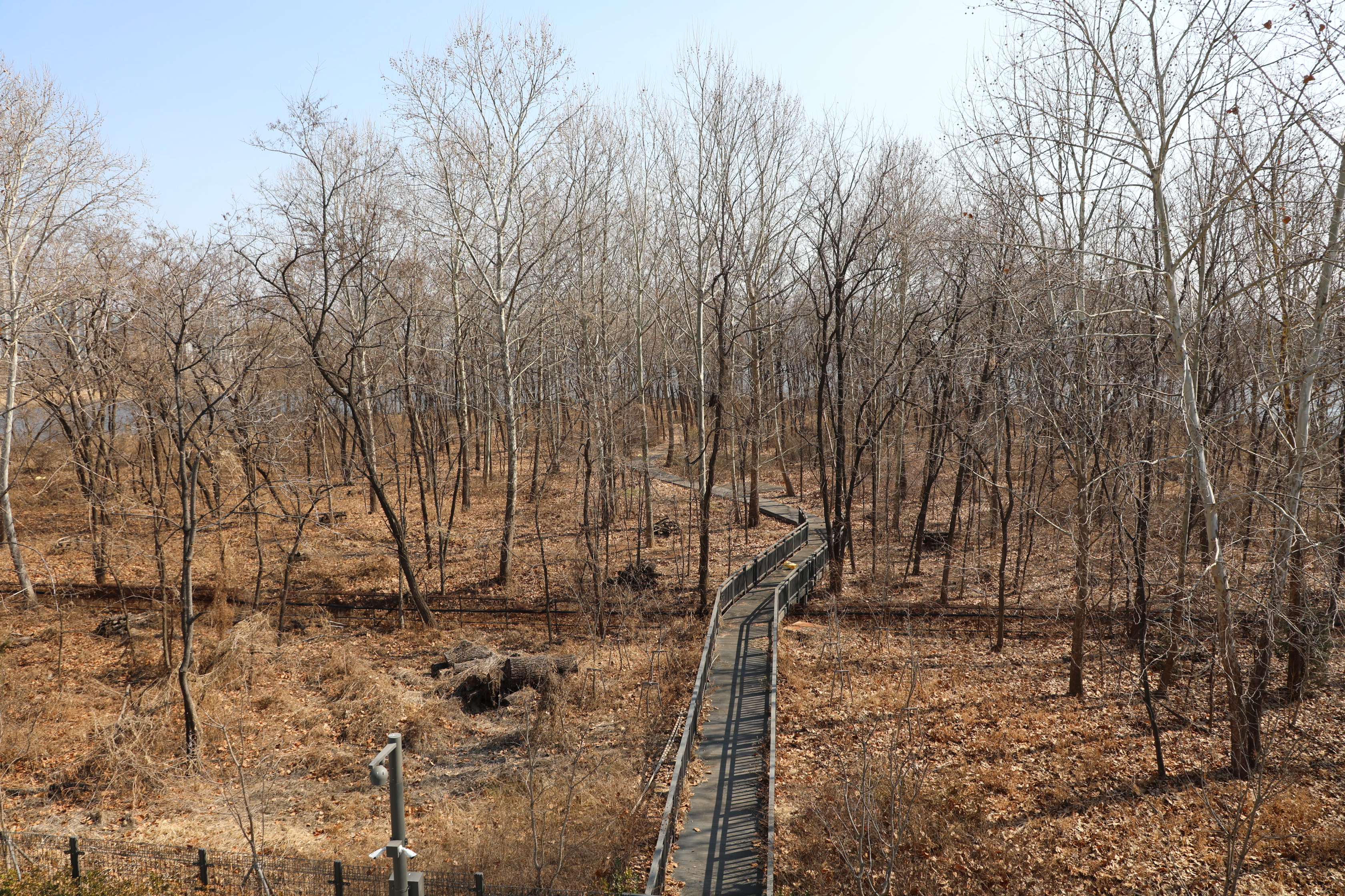 가지가 늘어진 능수버들에 새싹이 돋으면 근사한 그림이 될 텐데, 아직 아쉬운 계절이다.