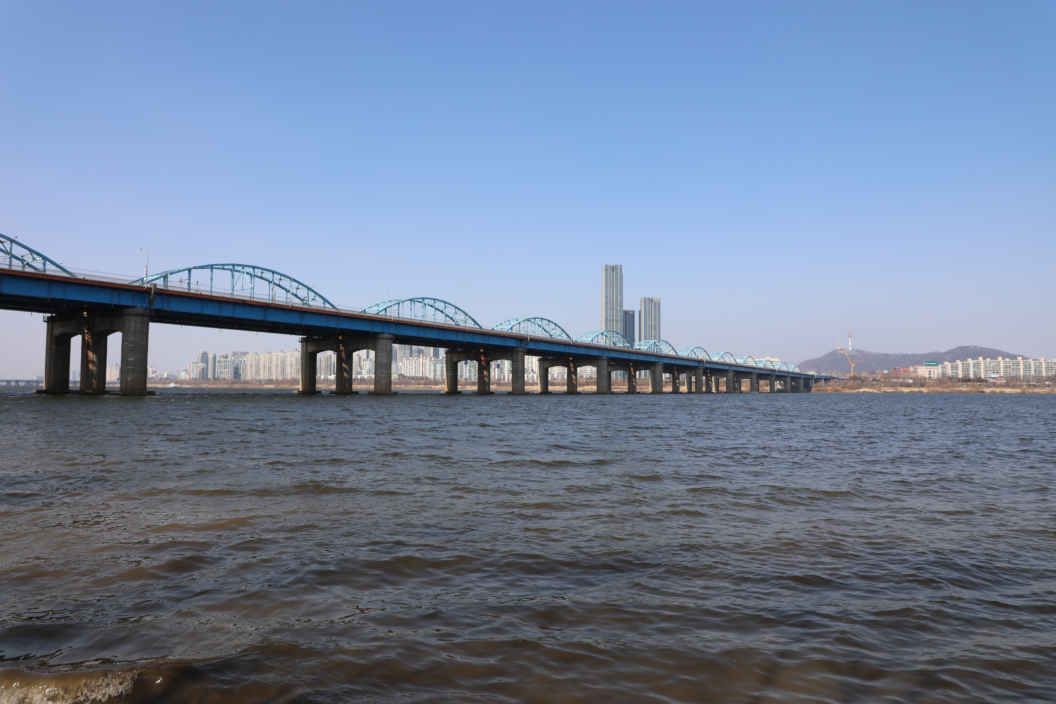 동작대교 남단에는 전망대가 설치되어 한강수면 위로 펼쳐진 하늘과 강변 빌딩숲을 감상할 수 있다.
