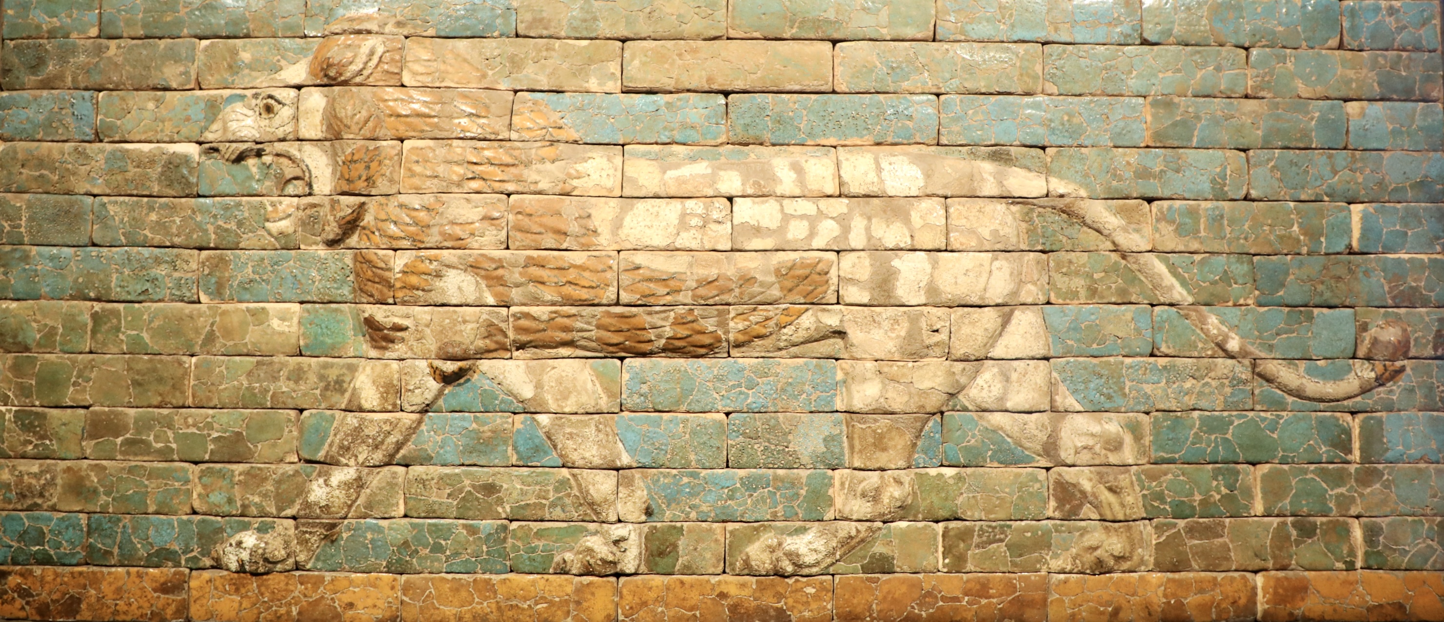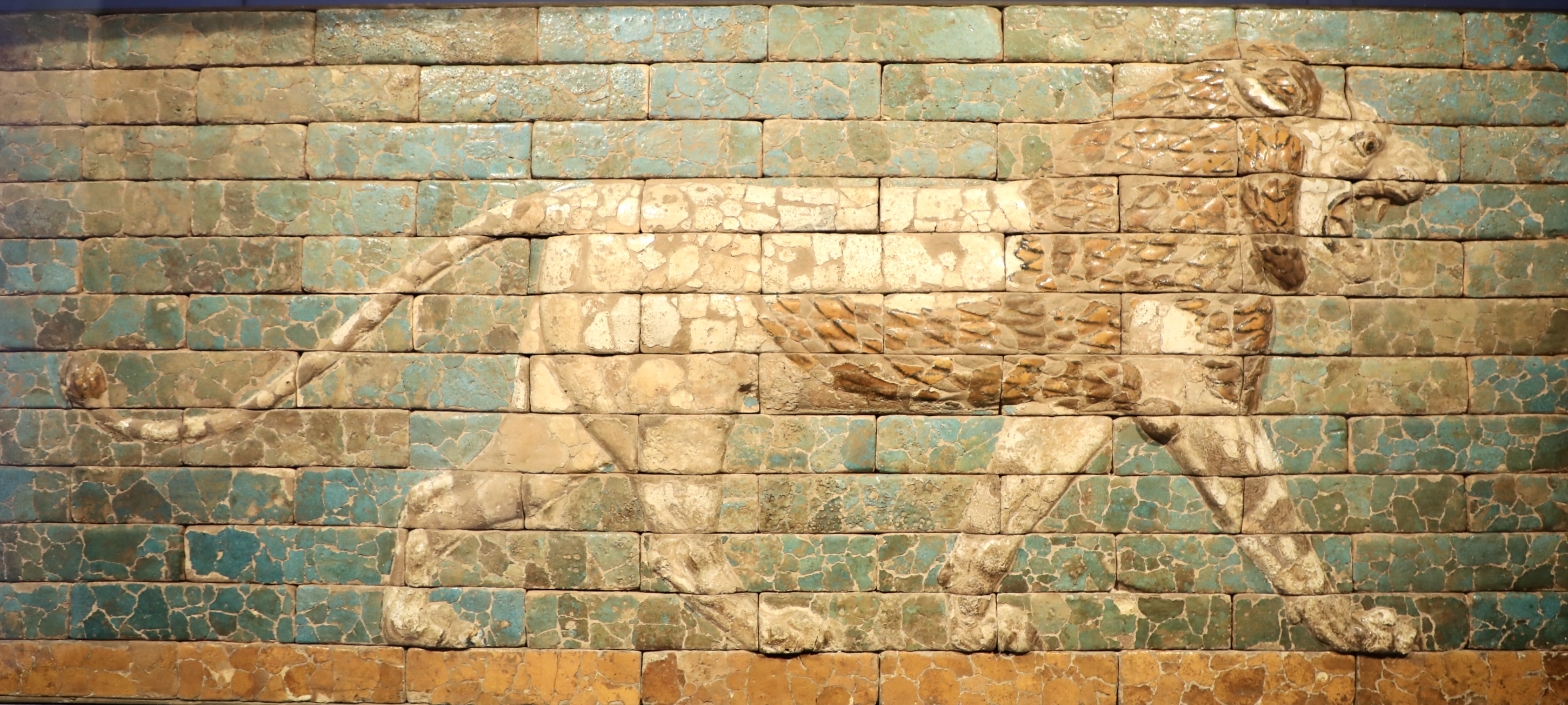 이쉬타르 여신을 상징하는 사자가 표현된 벽돌 벽의 일부이다.
