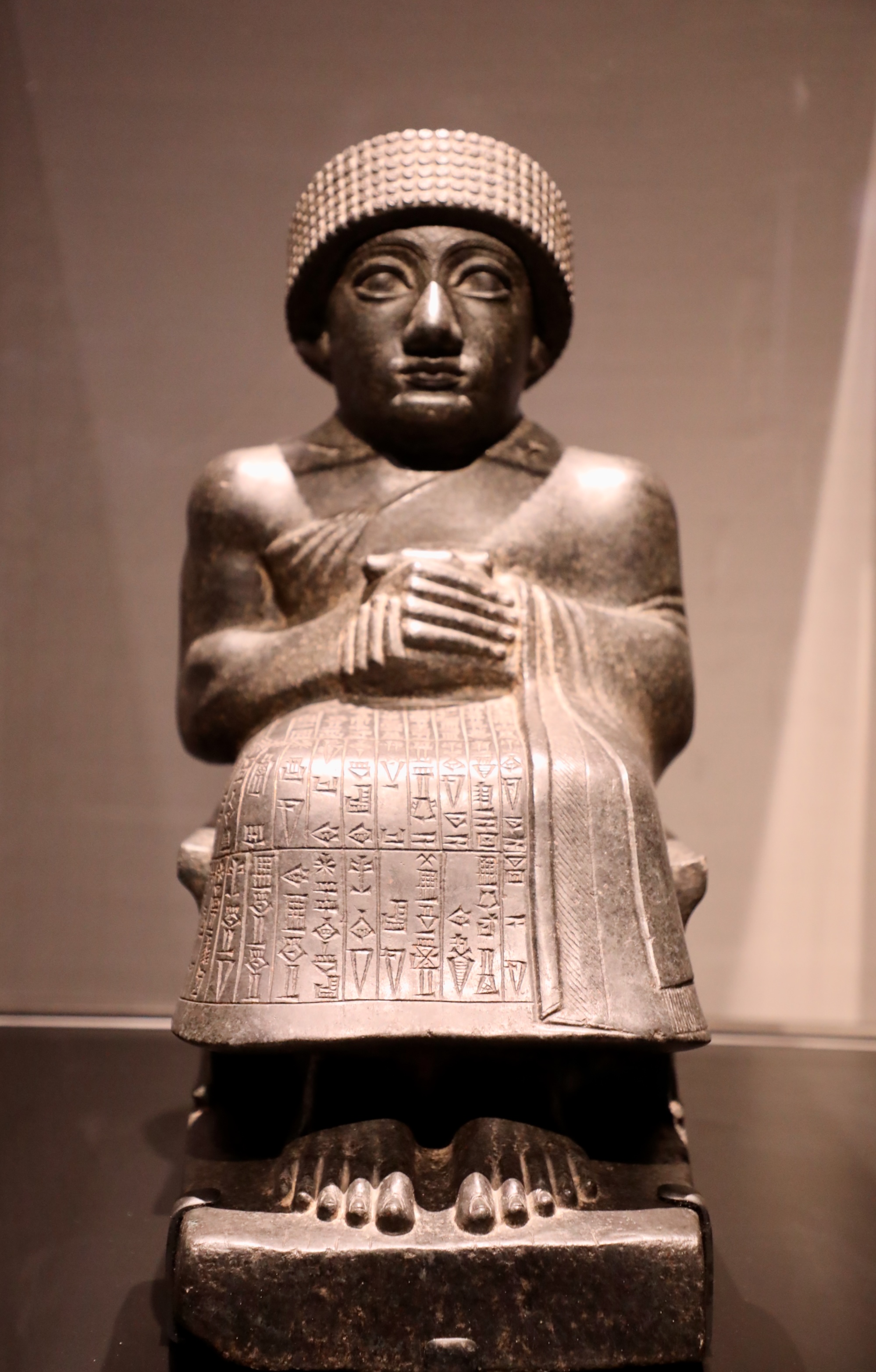 기원전 약 2100-2000년, 신-슈메르 시대, 동석 또는 사문석, 메트로폴리탄박물관 소장 (안내문)