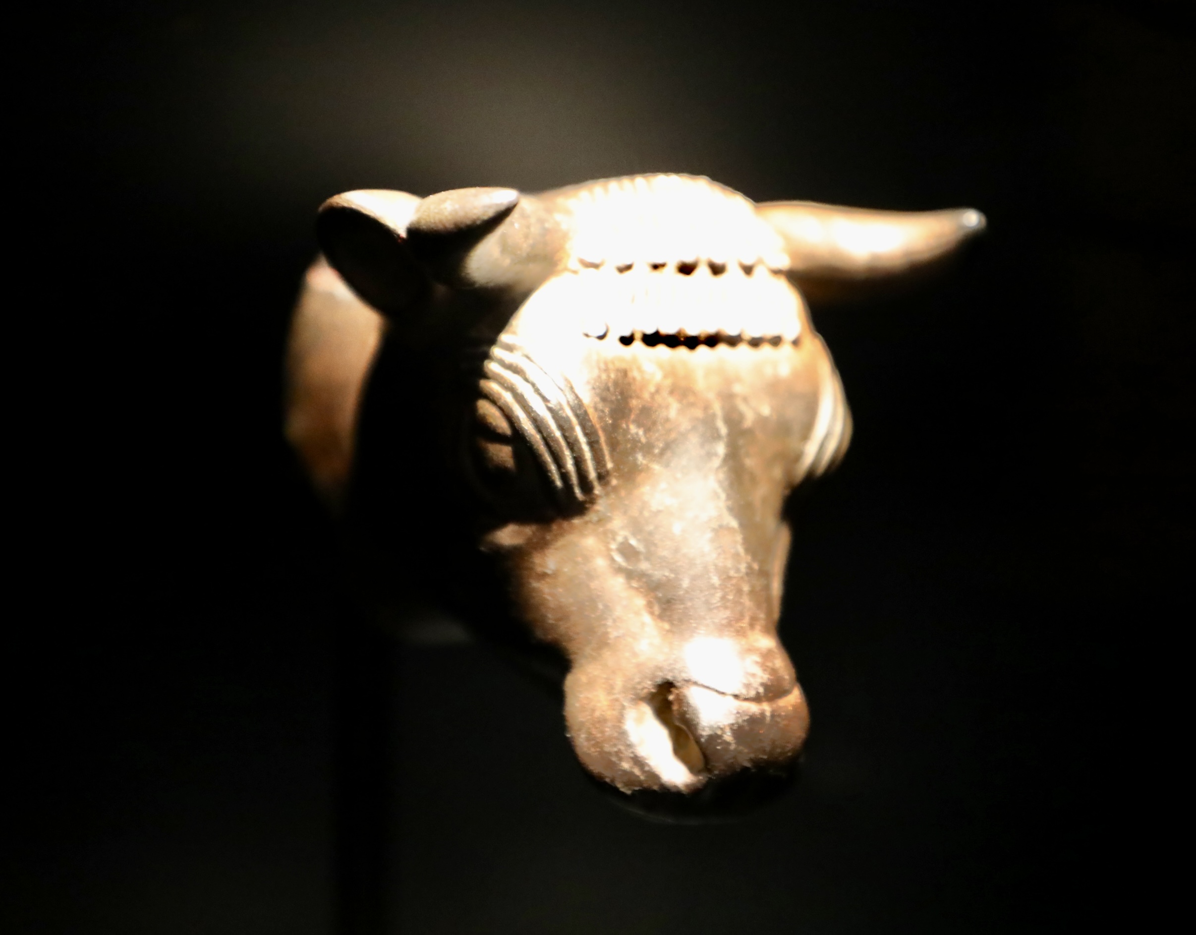 콧등 위로 두 줄로 끈을 엮은 걸 보면 신전에 제물로 바치기 위해 사육한 것이 아닐까.