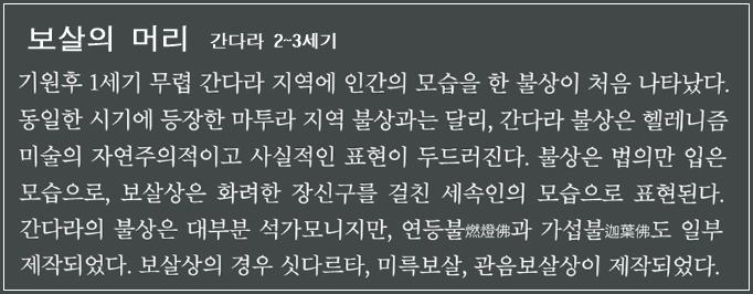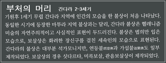 탁실라 지역에서는 3세기에 제작된 것으로 보이는 예가 발견되기도 한다. (안내문)