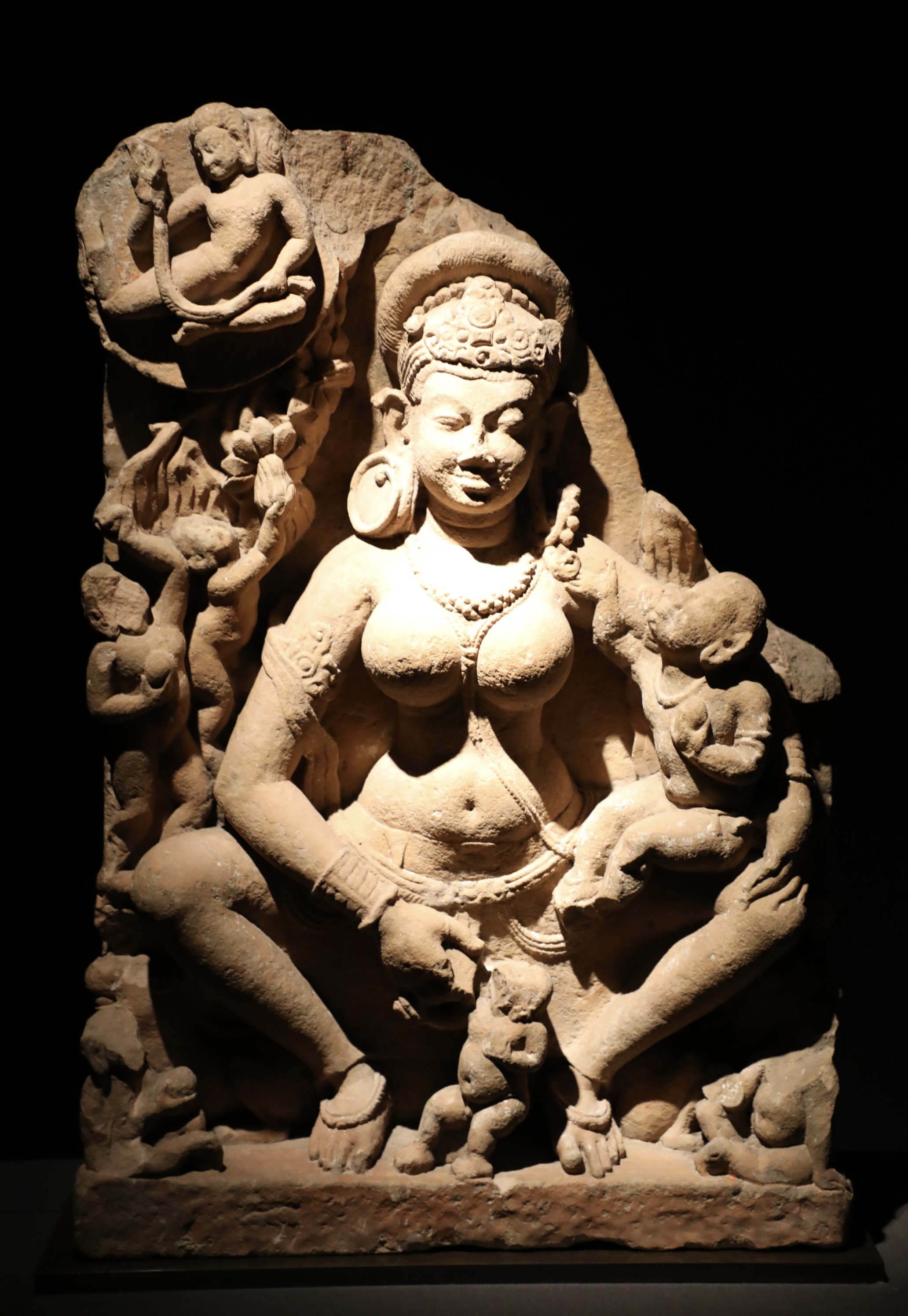 사암으로 만들어진 이 부조의 중앙에는 풍만한 가슴을 지닌 여인이 여러 명의 아이들에게 둘러싸여 있다.