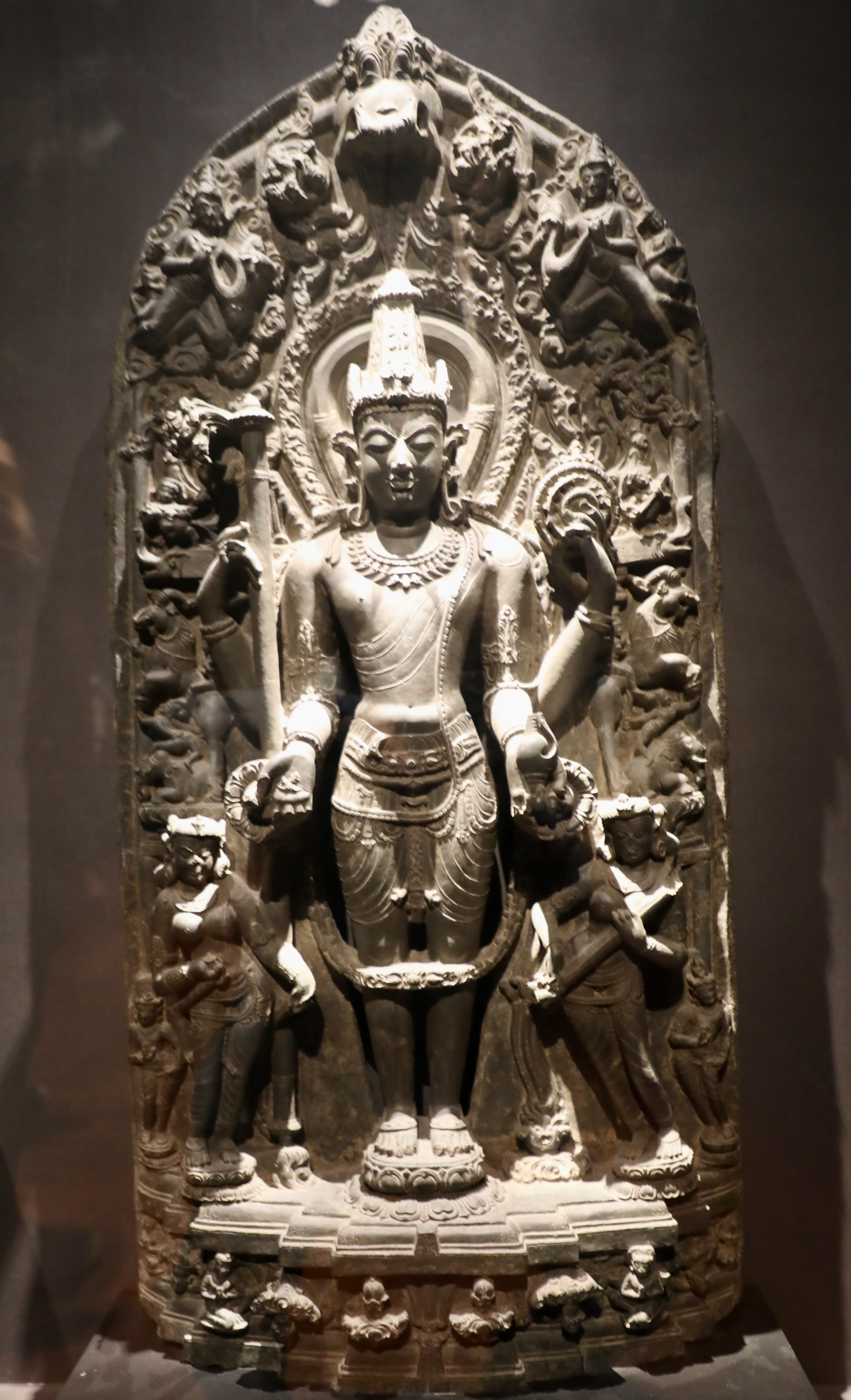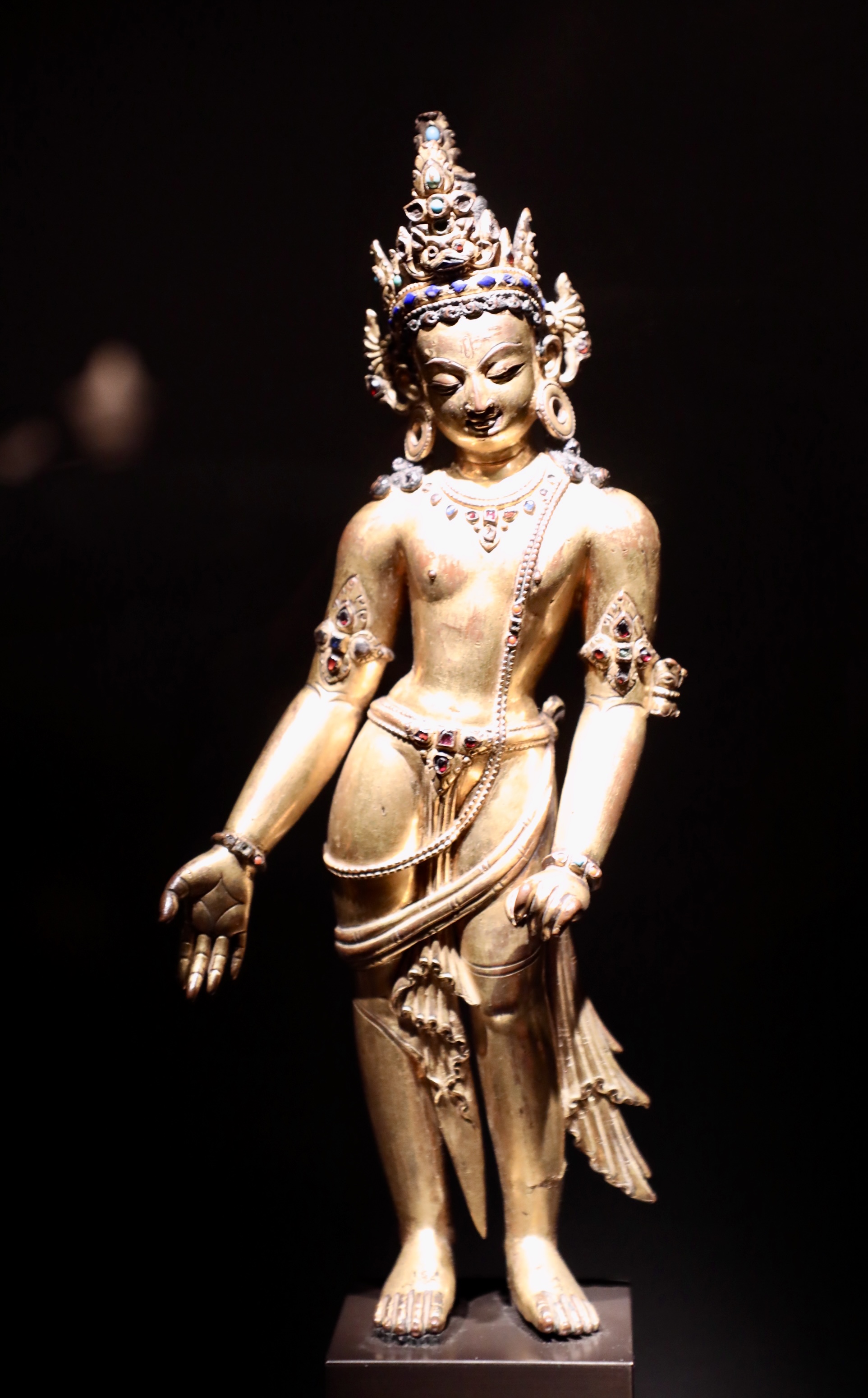 색색의 보석을 박은 것은 이 시기 네팔 불교 조각의 특징이다. (안내문)