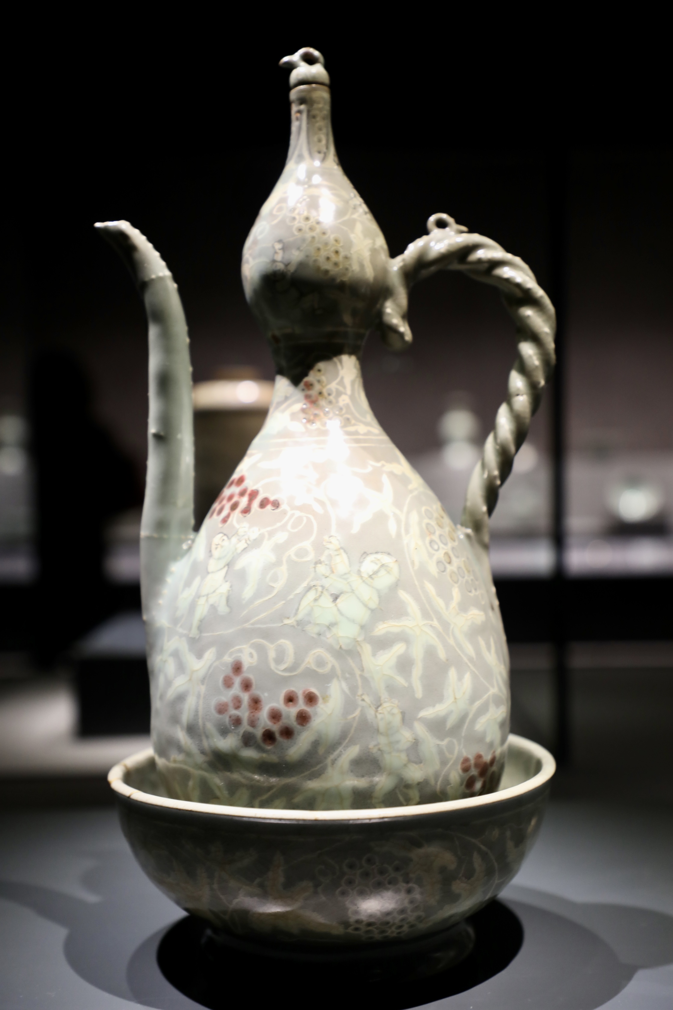 청자 상감·동화(銅畵) 포도·동자무늬(童子文) 주자와 받침