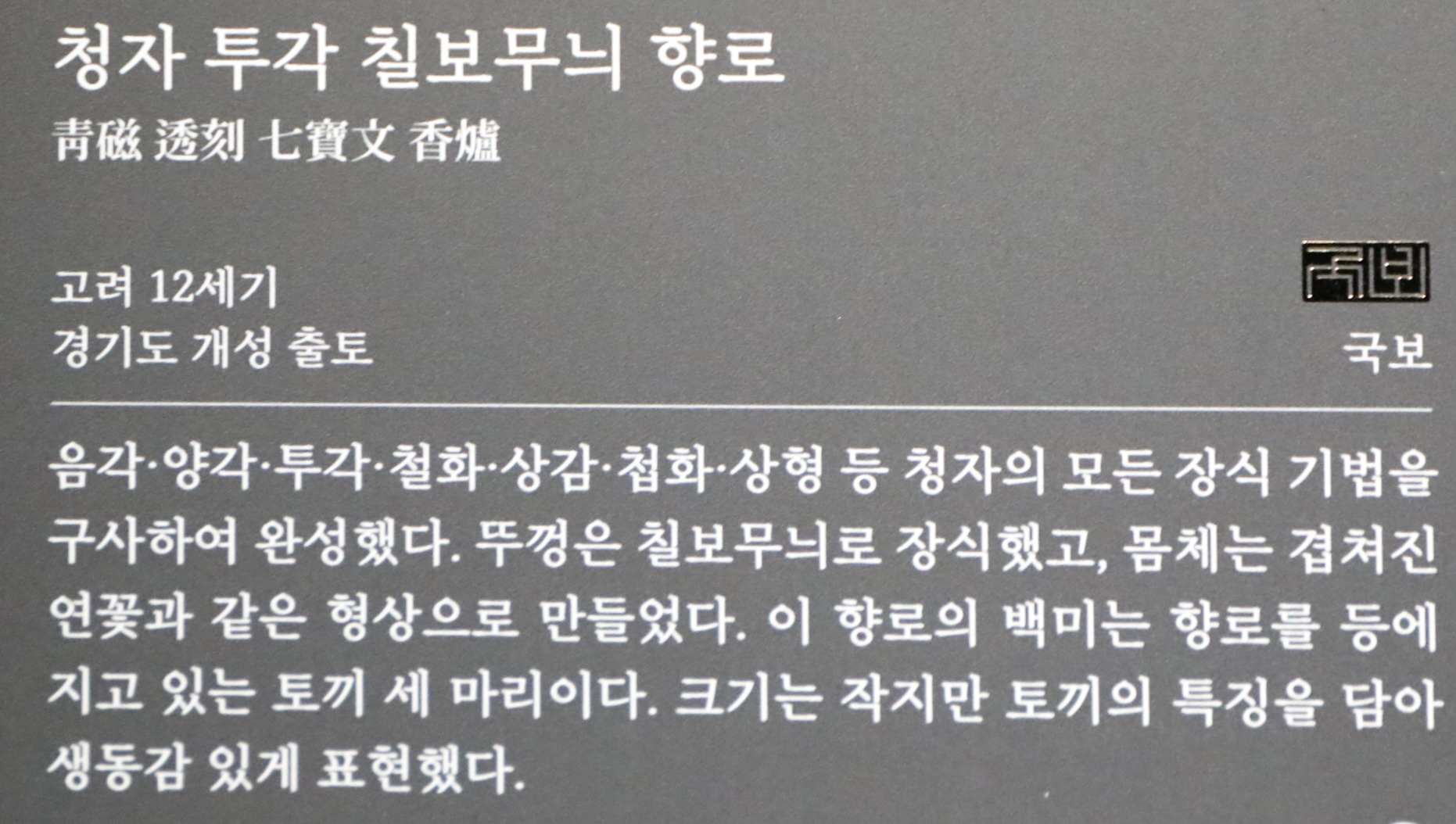 12세기 고려와 중국 송나라의 문화교류를 엿볼 수 있다. (안내문)