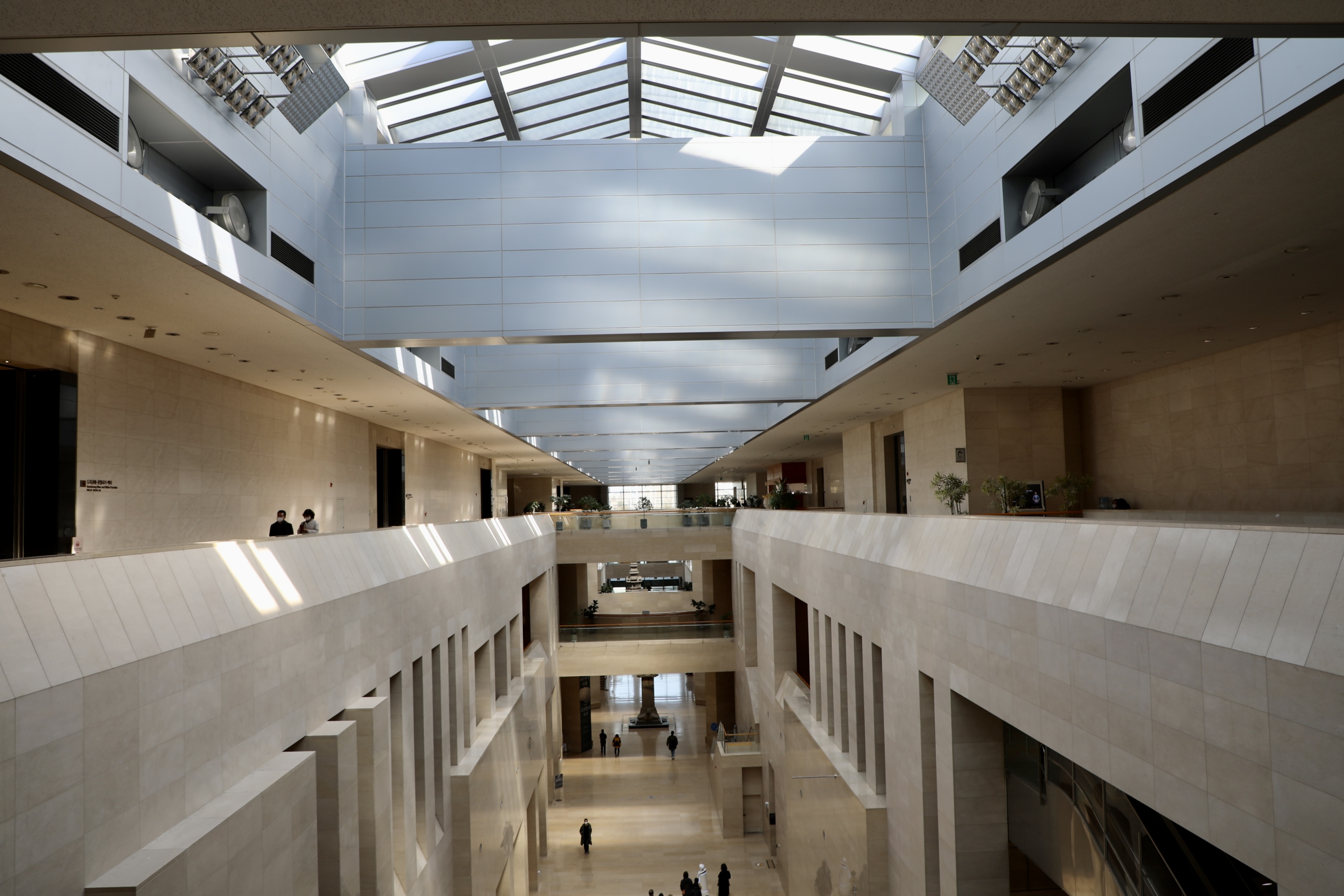 국립중앙박물관 내부로 왼쪽은 우리나라, 오른쪽은 외국의 문화재가 전시되고 있다.