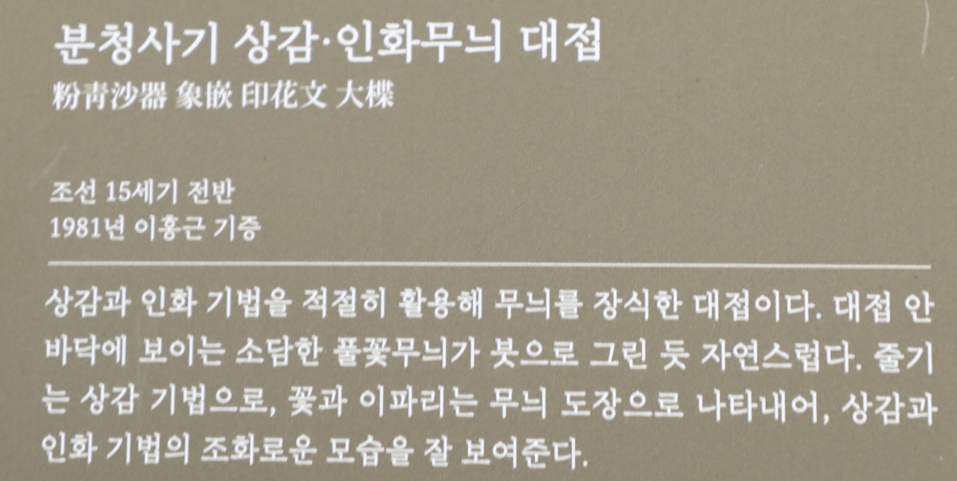 여유로운 공간 배치와 붓으로 그린 듯 섬세한 상감무늬가 뛰어나다.