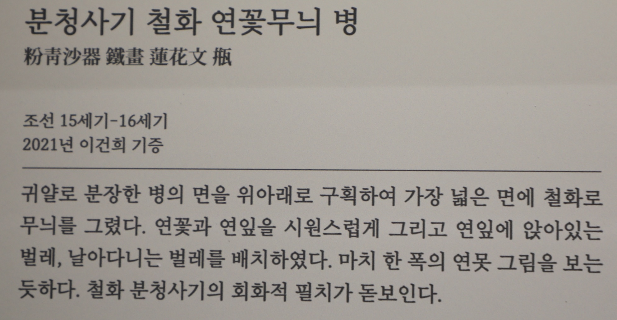 은은한 달항아리를 더욱 돋보이게 한다.