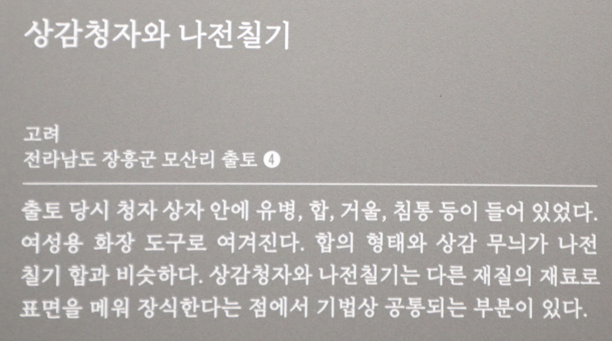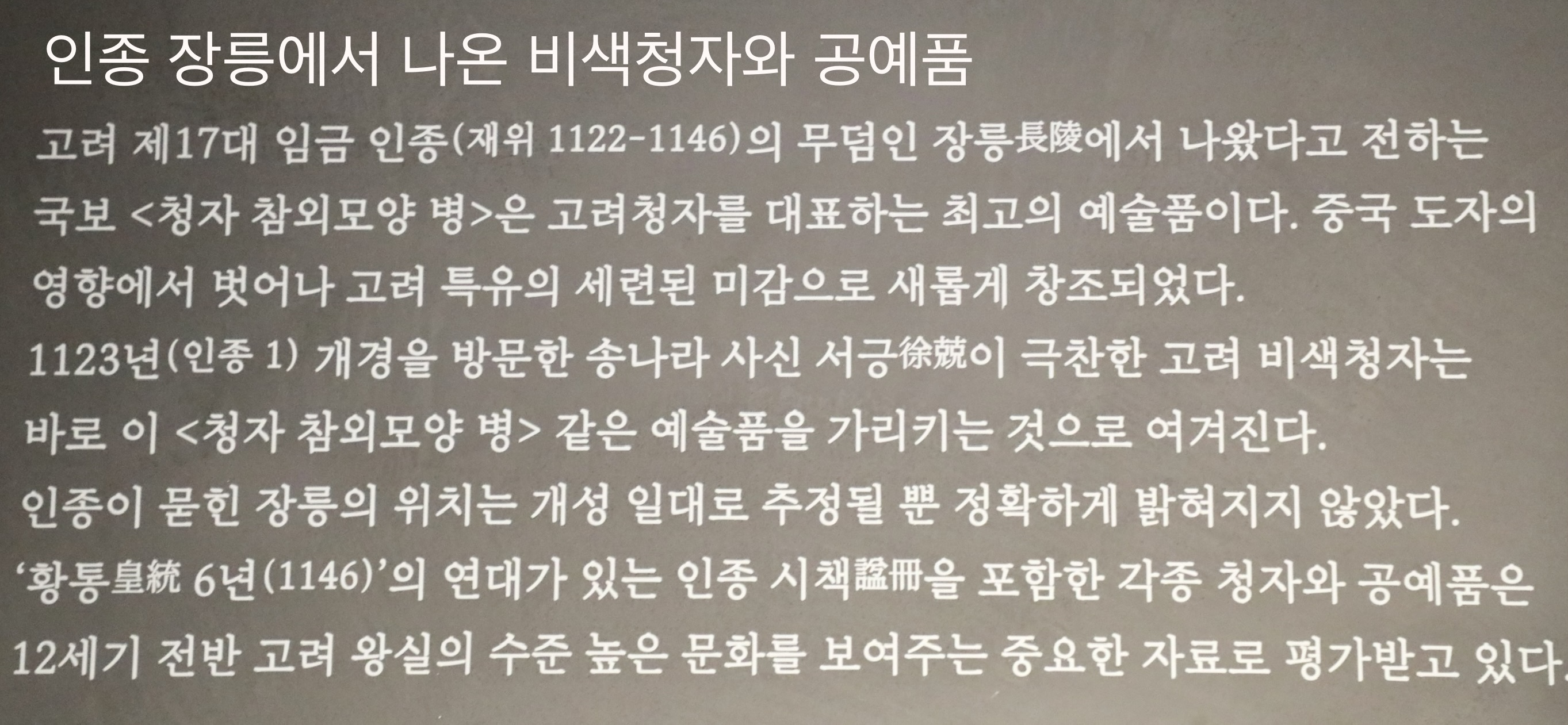 12세기 고려와 중국 송나라의 문화교류를 엿볼 수 있다. (안내문)