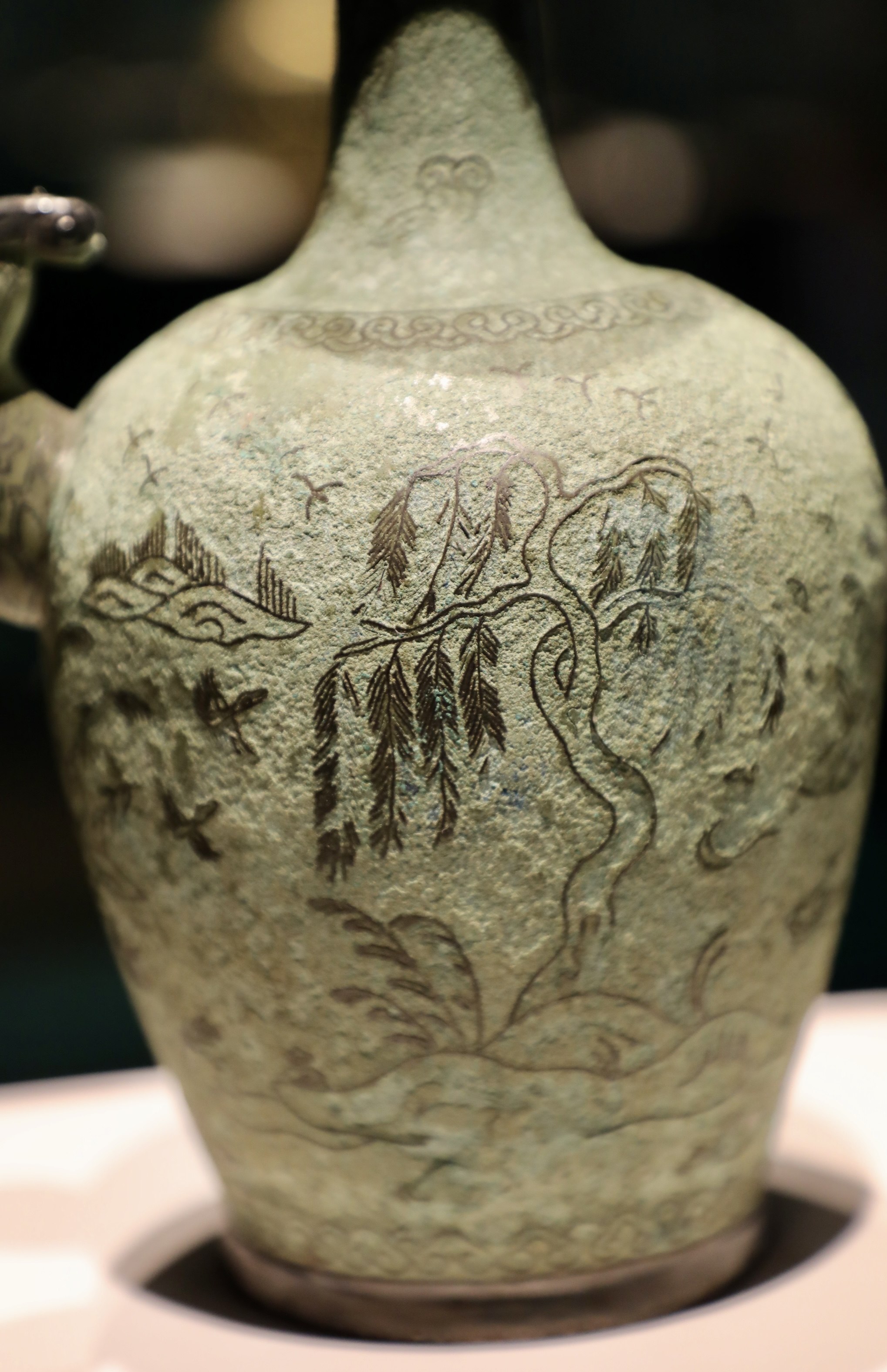 이 물가풍경무늬 정병은 고려시대의 뛰어난 금속공예 기술을 잘 보여준다.