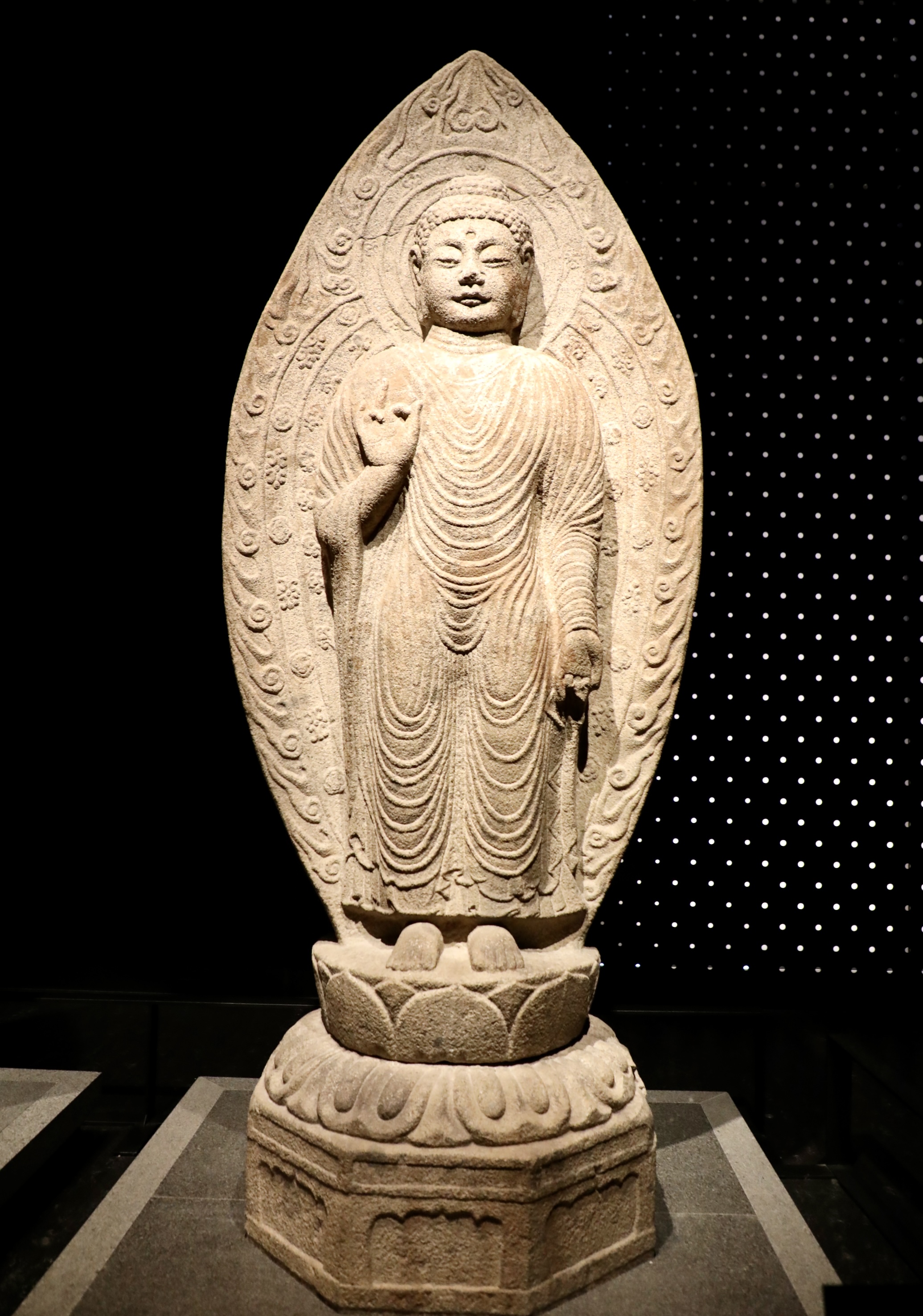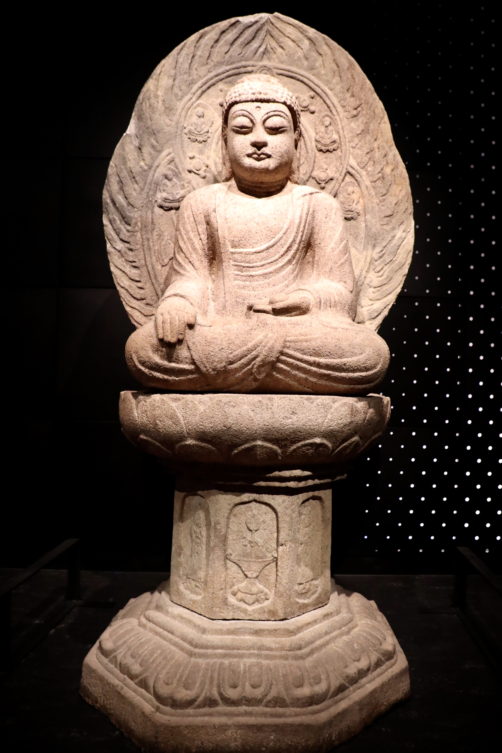 반면 얇은 옷주름으로 강조된 불좌상의 풍만한 신체는 통일신라 불상 양식의 특징을 보여주므로