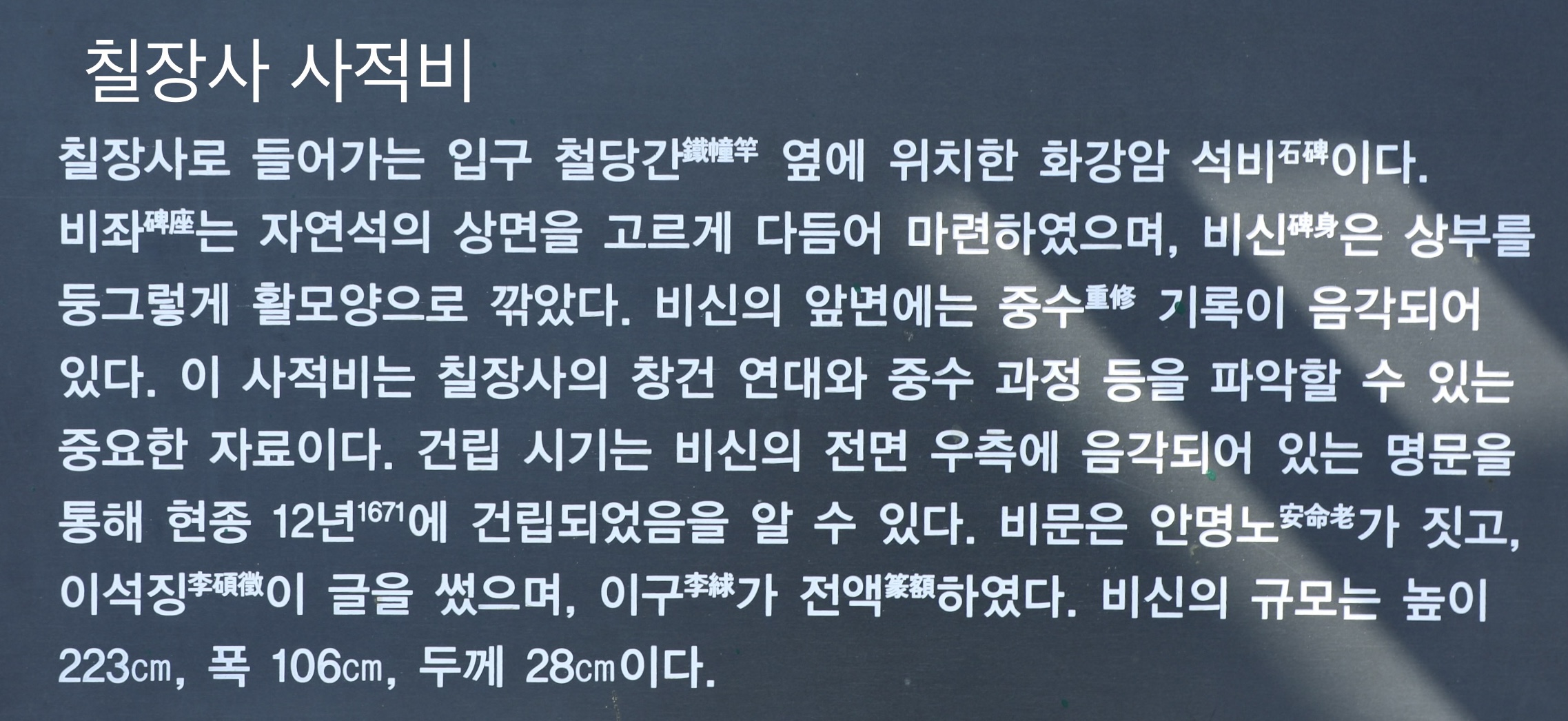 철당간 앞에 칠장사 사적비기 있어 칠장사의 창건과 중수에 대한 구체적인 기록을 알 수 있다.