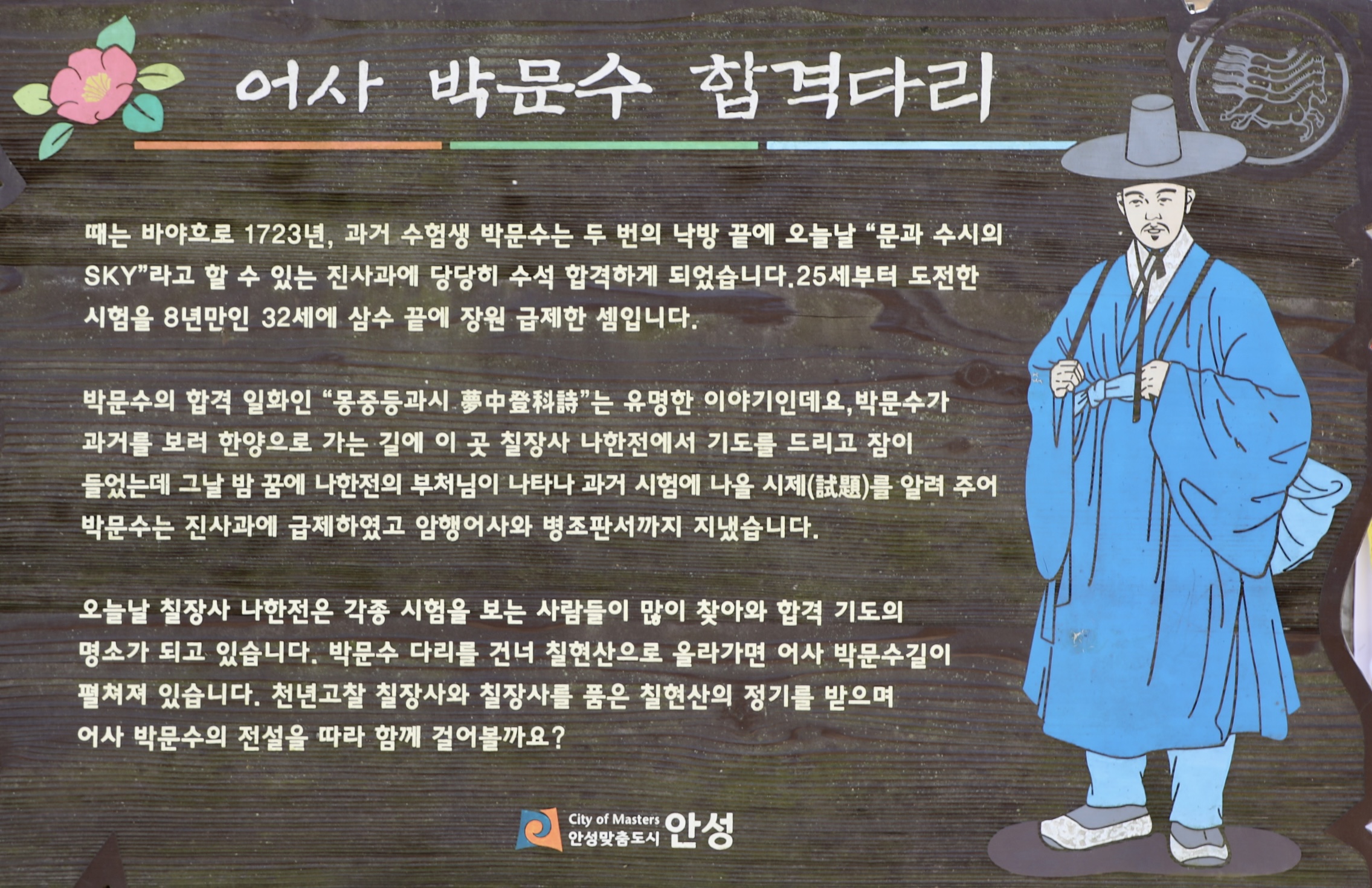 암행어사로 유명한 박문수(1691~1756)가 과거 보러 가는 길에 이곳 나한전에서 기도하고 잠이 들었다는 설화도